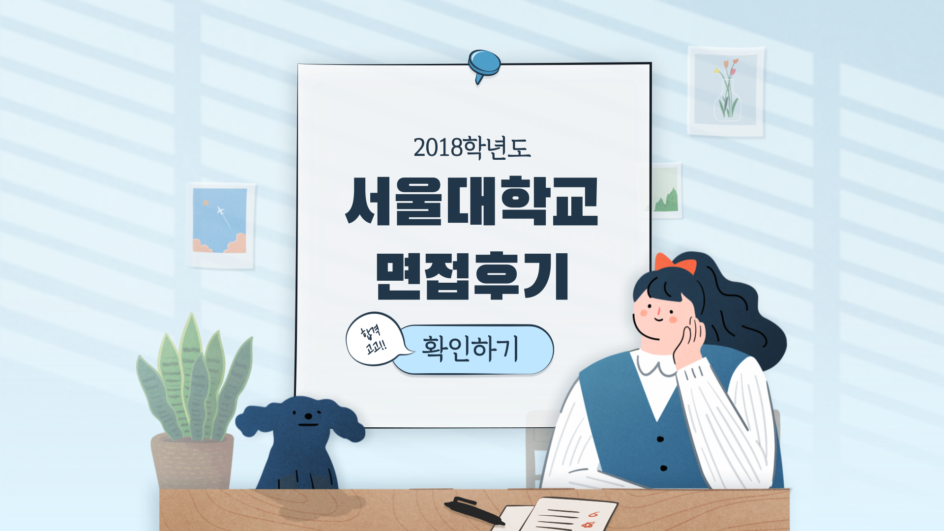 2018학년도 서울대학교 면접 후기 횐님들 안녕하세영! 오늘은 2018학년도 서울대학교 면접 후기를 알아볼 거예영. 이번 면접 후기에서는 2018학년도에 서울대학교 인문대학, 사회과학대학, 자연과학대학, 간호대학, 공과대학, 농업생명과학대학, 미술대학, 생활과학대학에 합격한 학생들이 서류기반 면접과 제시문기반 면접에 대해 자세히 이야기를 해 주었어영. 면접 절차와 난이도, 준비 방법에 대해 세세하게 밝히고 있어서 후기를 다 읽고 나니 직접 면접을 보고 온 듯한 느낌이 들어영. 서울대에 지원하신 횐님들은 면접이 어떻게 진행되는지 미리 알아두면 도움이 많이 되시겠지영? 확인해 봅시다.👩🎓