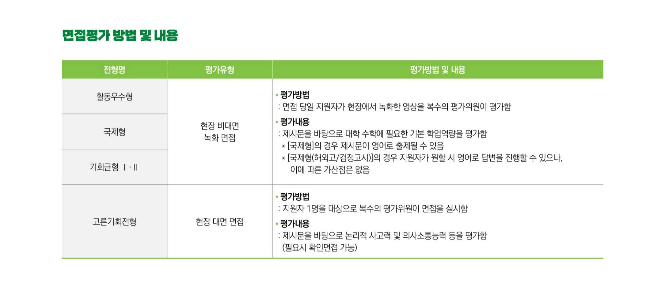 2022학년도 연세대학교 면접평가 순서 면접평가 방법 및 내용