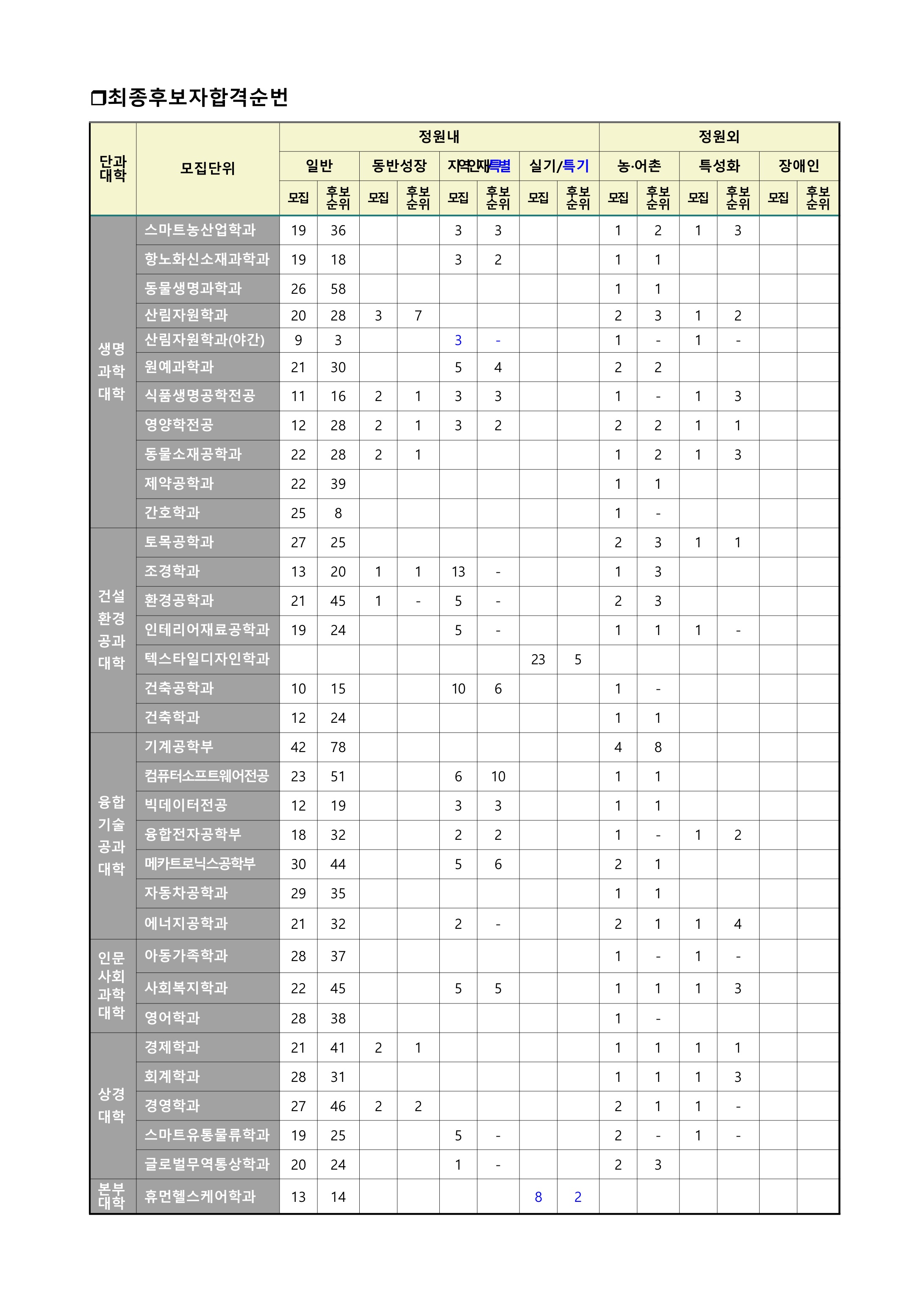모집단위 일반전형 모집인원 경쟁률 충원인원 대학별환산 최종등록자