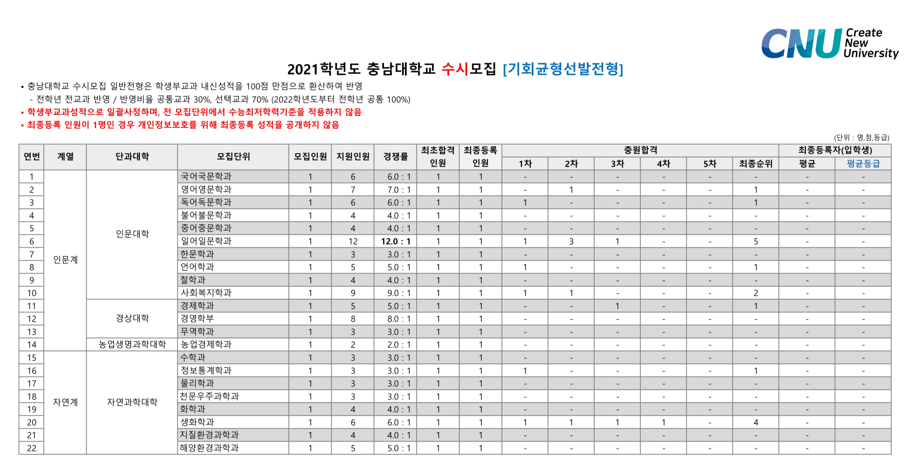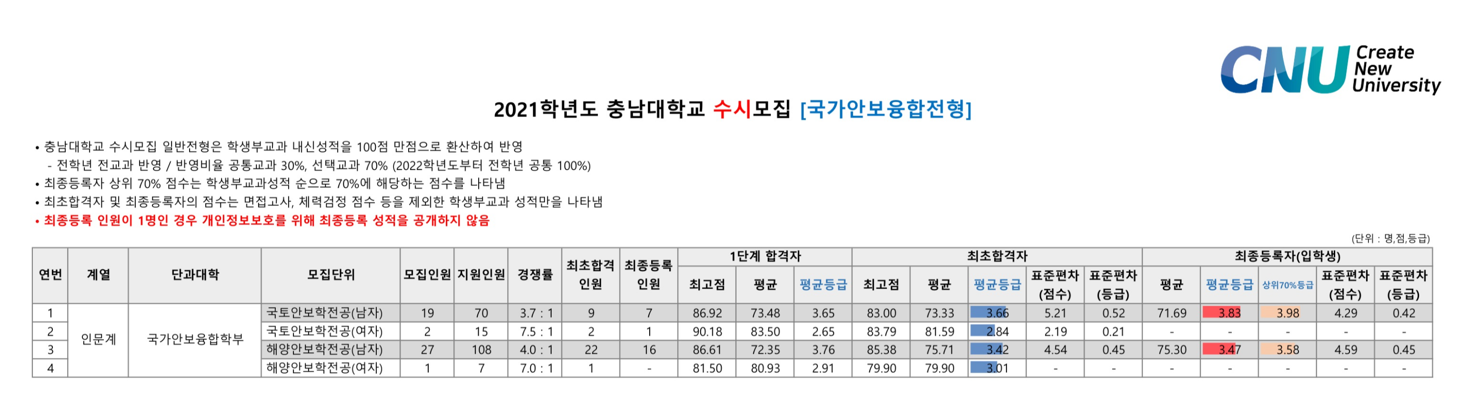 2021학년도 충남대학교 학생부교과 국가안보융합전형 수시등급 2021학년도 충남대학교 학생부교과전형 수시등급