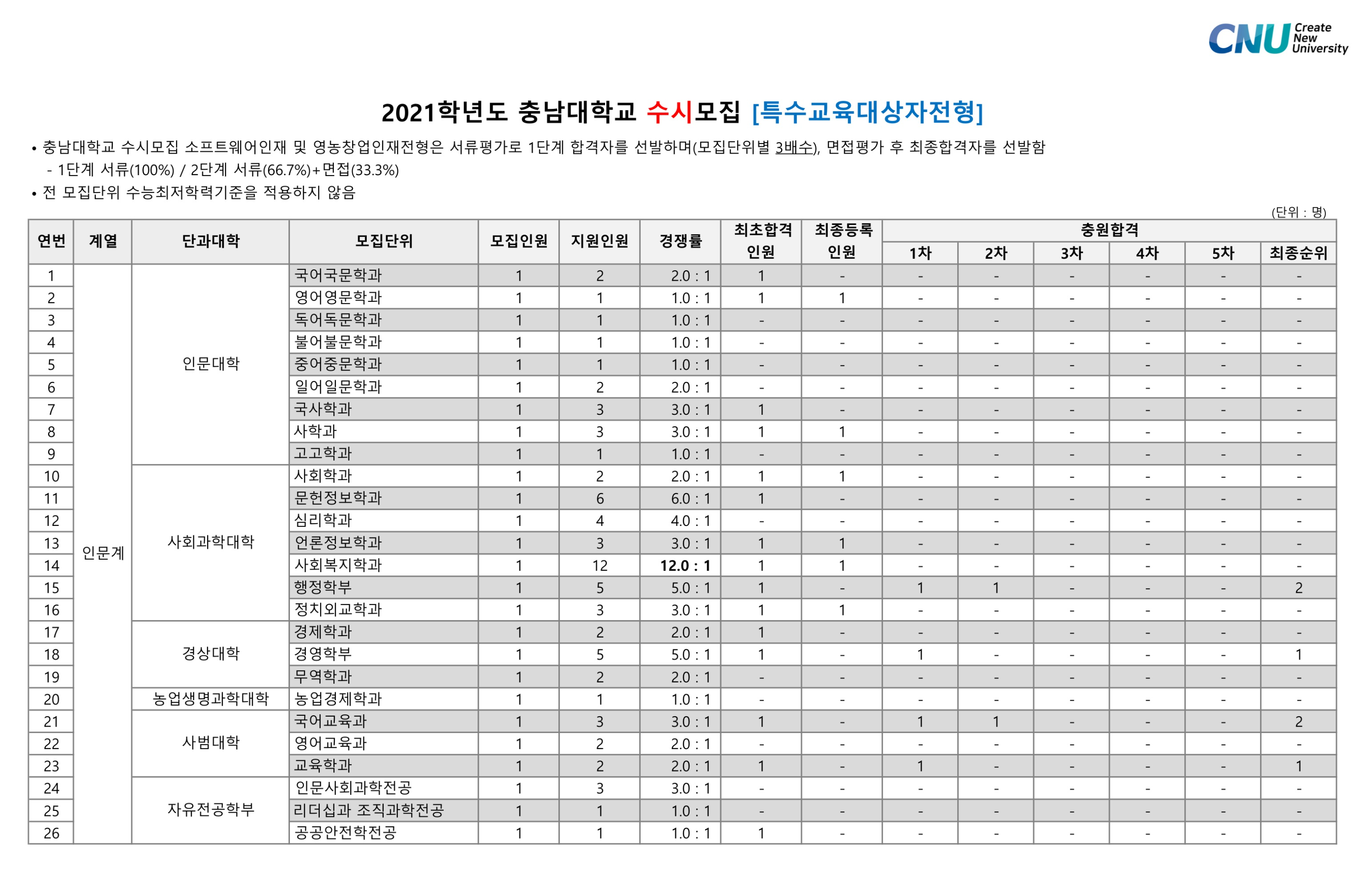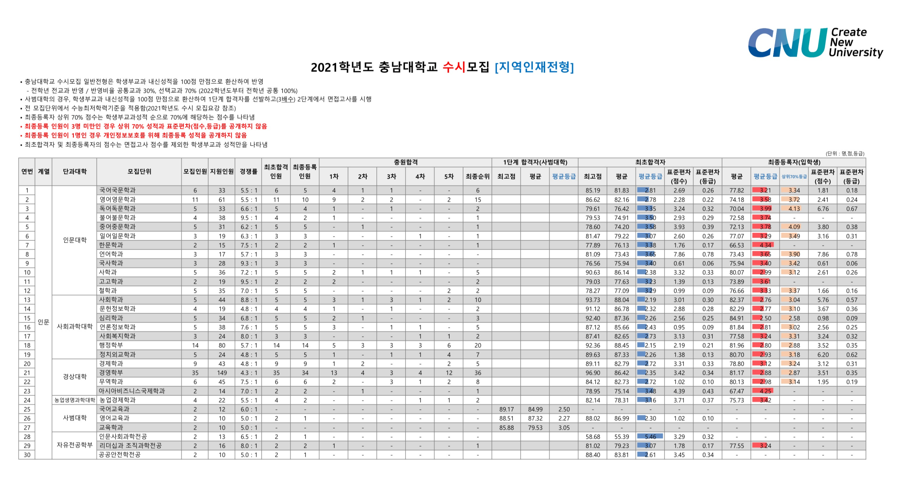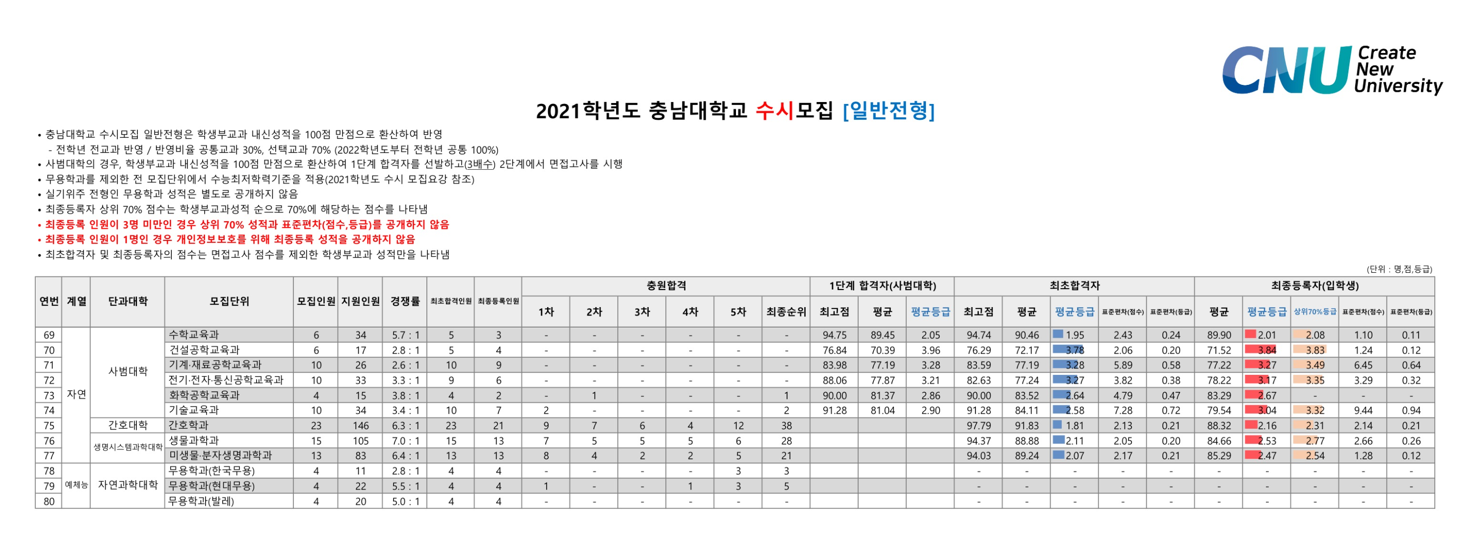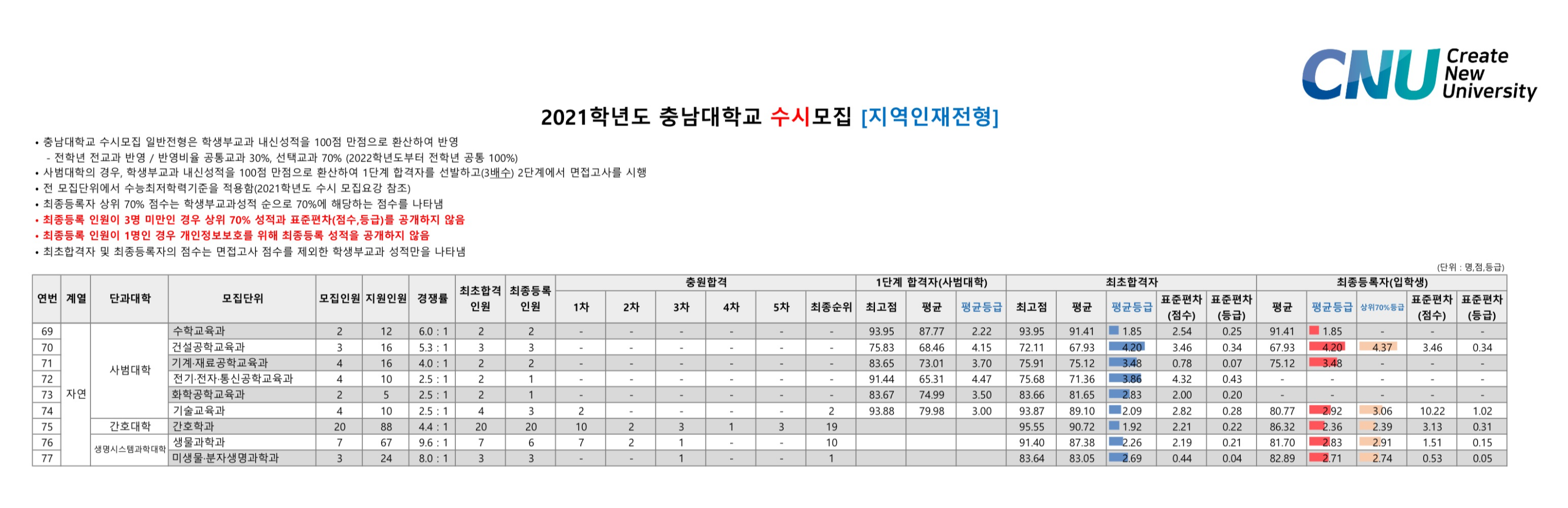2021학년도 충남대학교 학생부종합 특수교육대상자전형 수시등급 2021학년도 충남대학교 학생부종합전형 수시등급