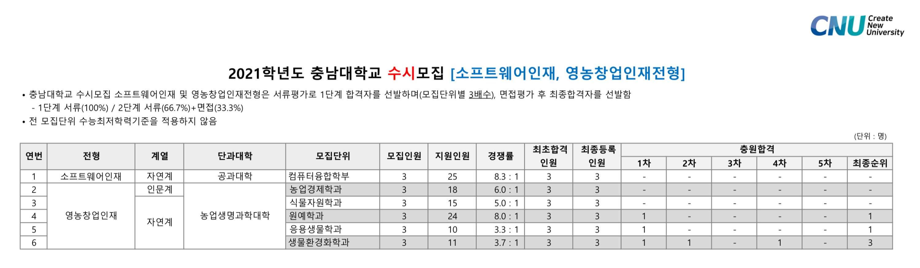 2021학년도 충남대학교 학생부종합 소프트웨어인재, 영농창업인재전형 수시등급 2021학년도 충남대학교 학생부종합 농어촌학생전형 수시등급