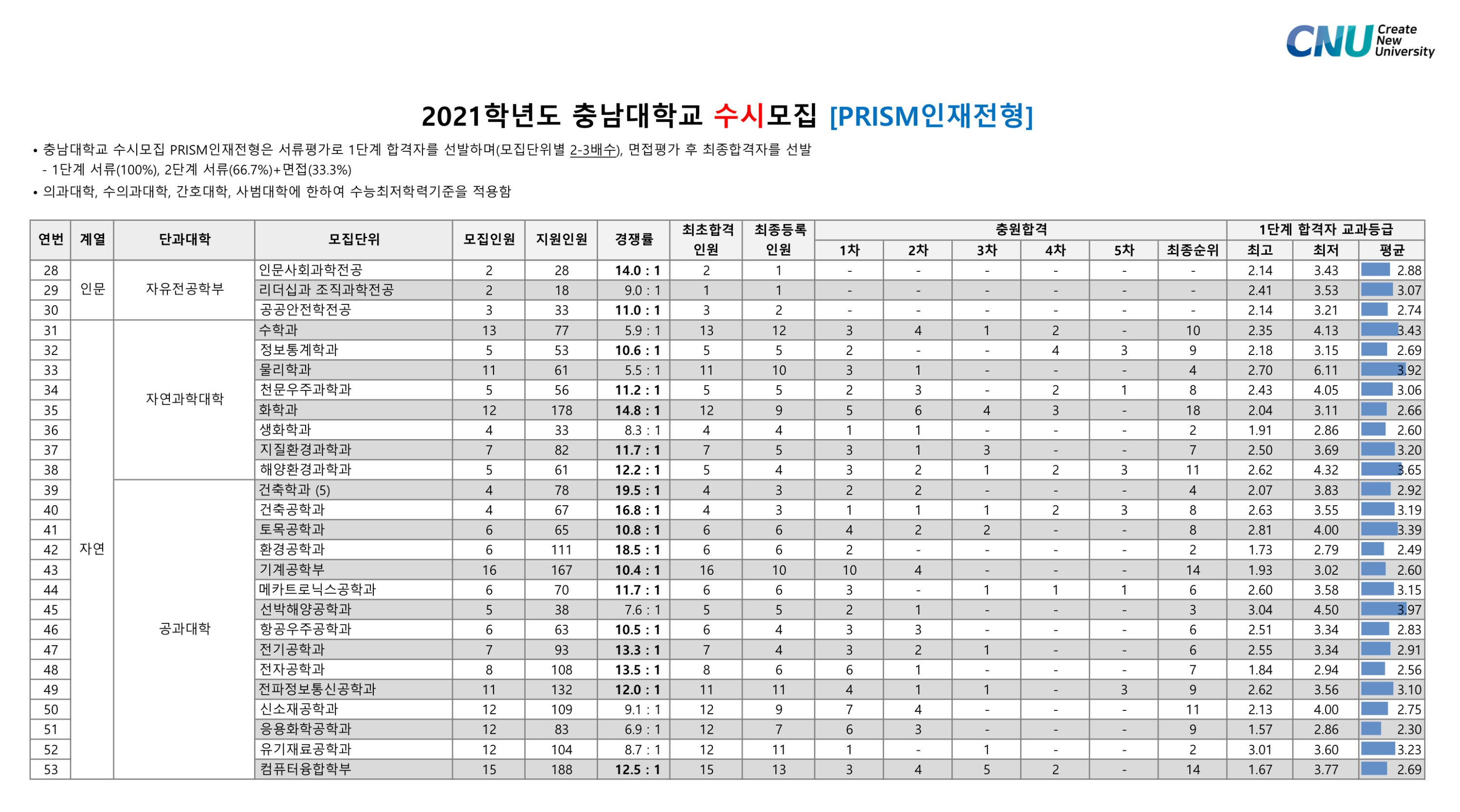 2021학년도 충남대학교 학생부종합 PRISM인재전형 수시등급 2021학년도 충남대학교 학생부종합 소프트웨어인재, 영농창업인재전형 수시등급