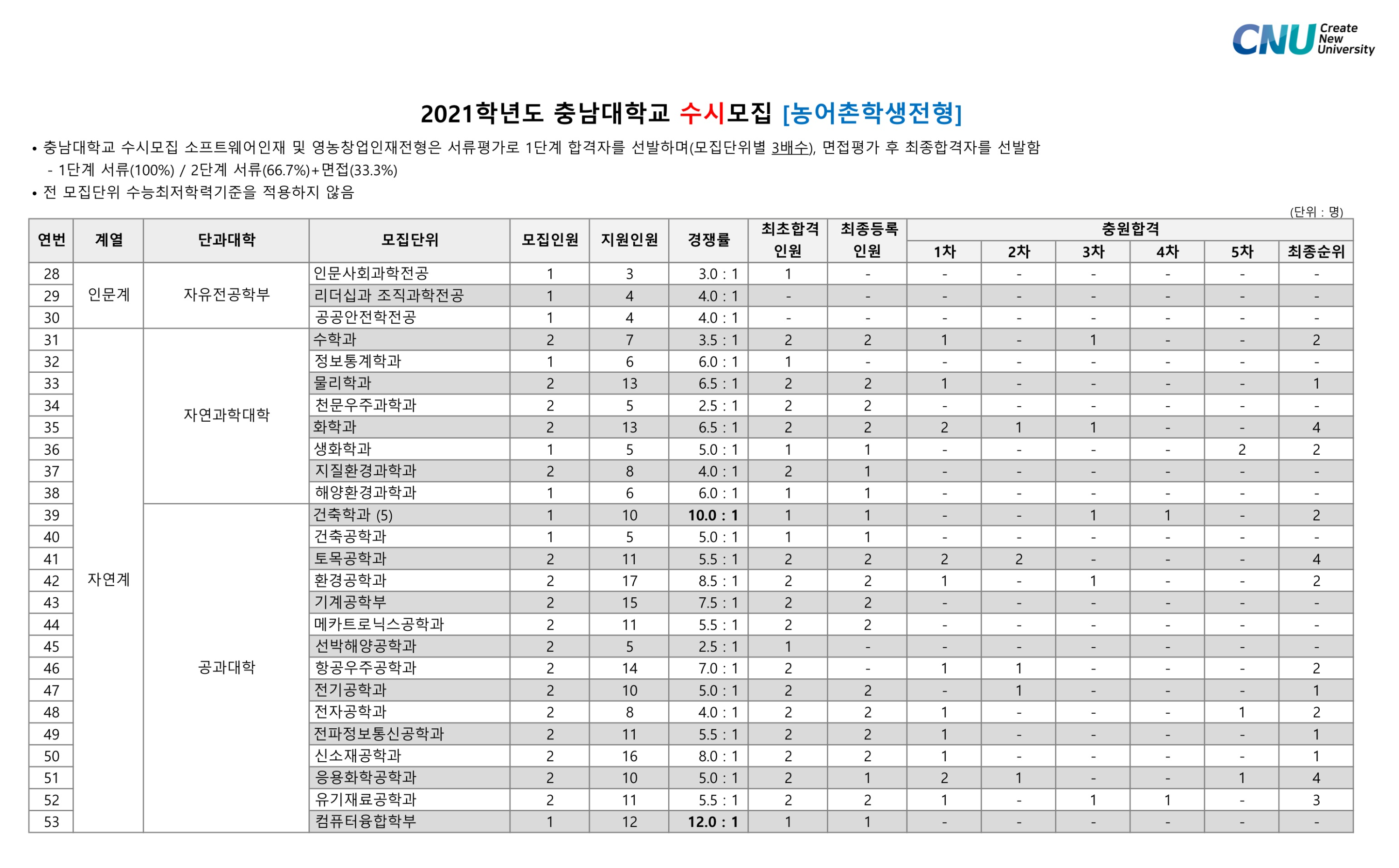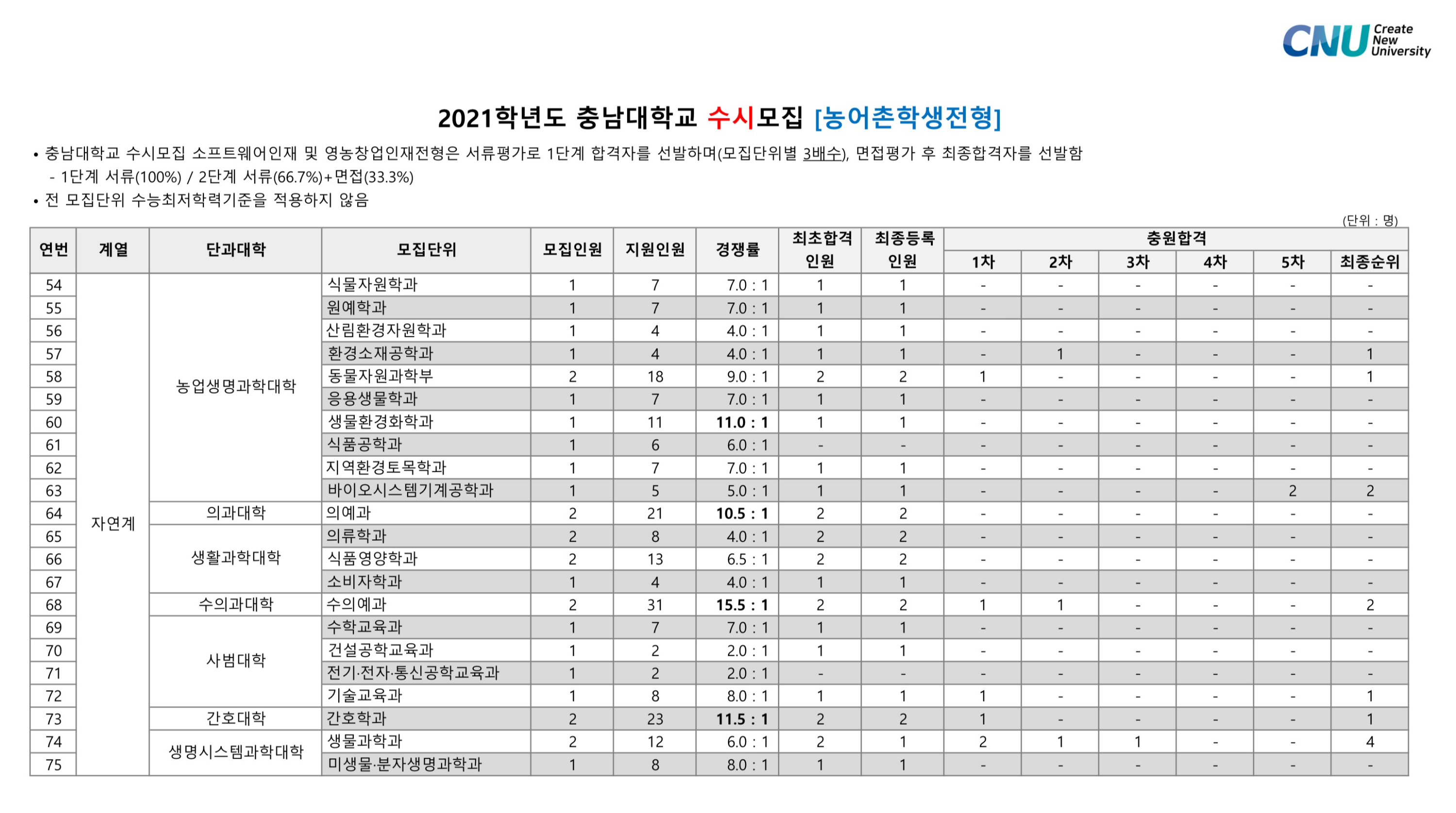 2021학년도 충남대학교 학생부종합 농어촌학생전형 수시등급 2021학년도 충남대학교 학생부종합 저소득층학생전형 수시등급