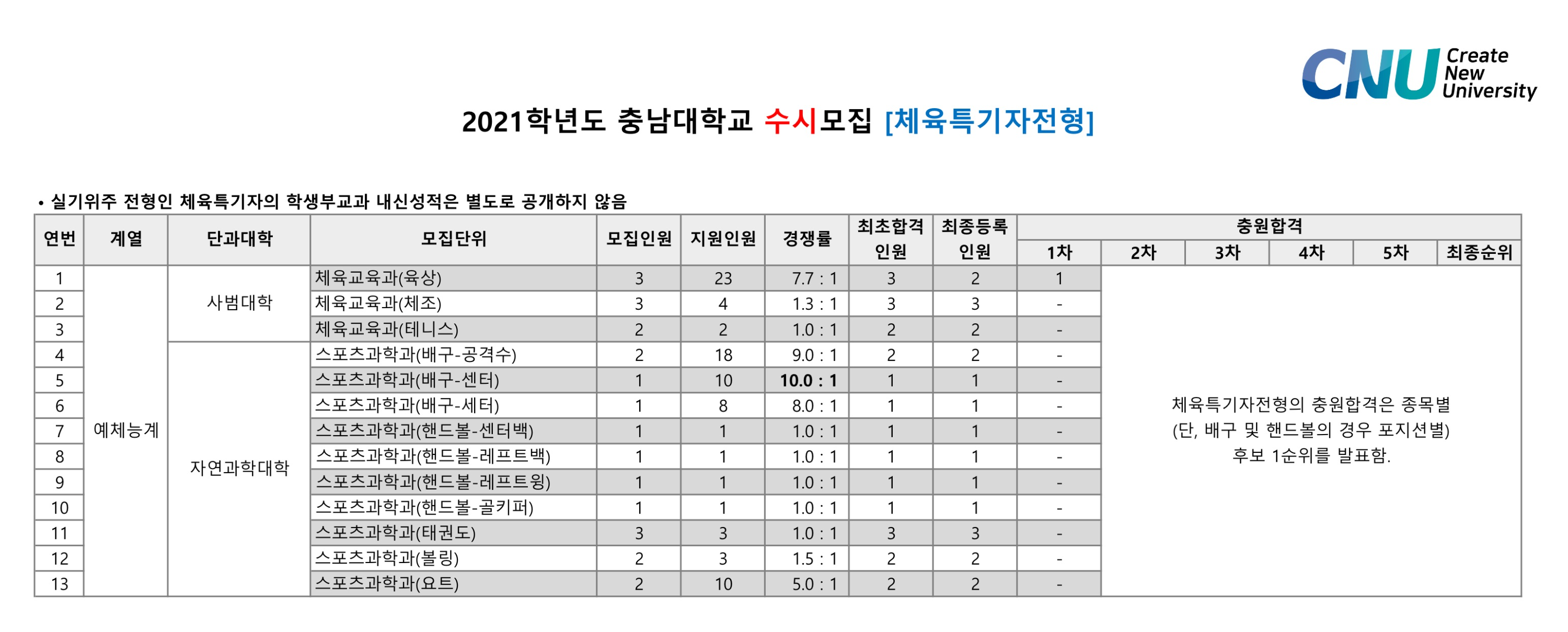 2021학년도 충남대학교 학생부교과 체육특기자전형 수시등급 2021학년도 충남대학교 학생부교과 국가안보융합전형 수시등급