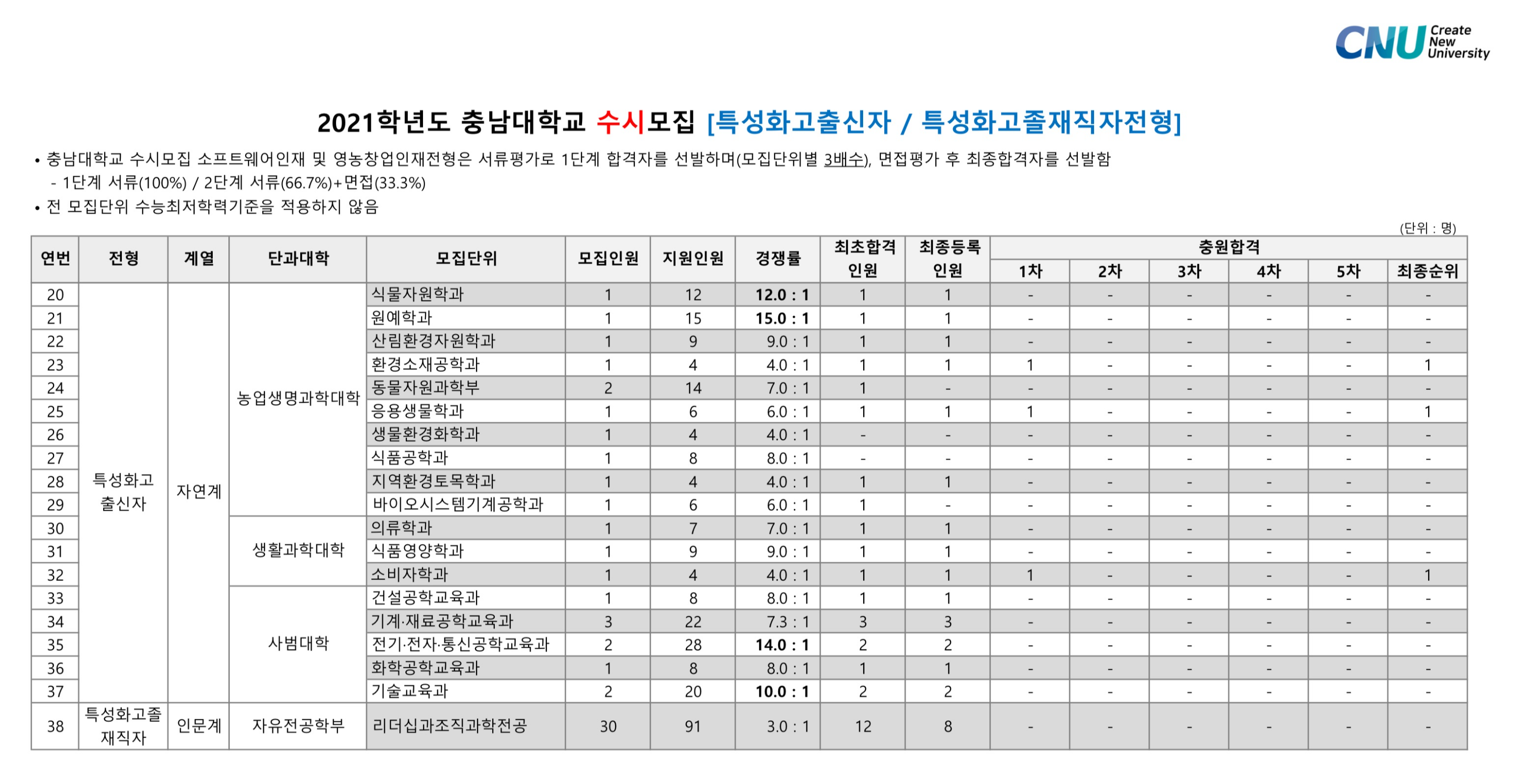 2021학년도 충남대학교 학생부종합 특성화고출신자/특성화고재직자전형 수시등급 2021학년도 충남대학교 학생부종합 특수교육대상자전형 수시등급