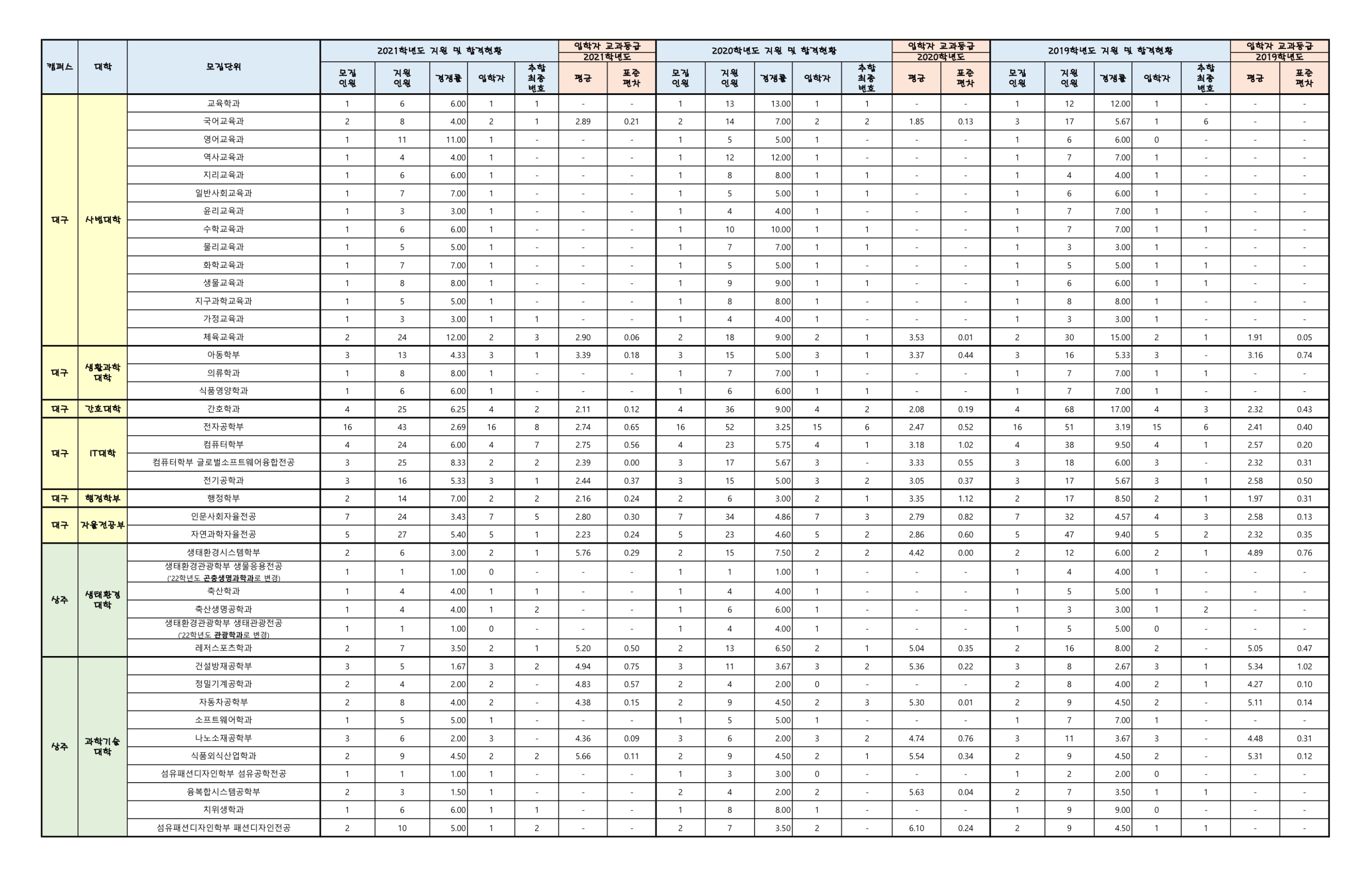 모집단위 지역인재전형 모집인원 경쟁률 충원인원 대학별환산 최종등록자