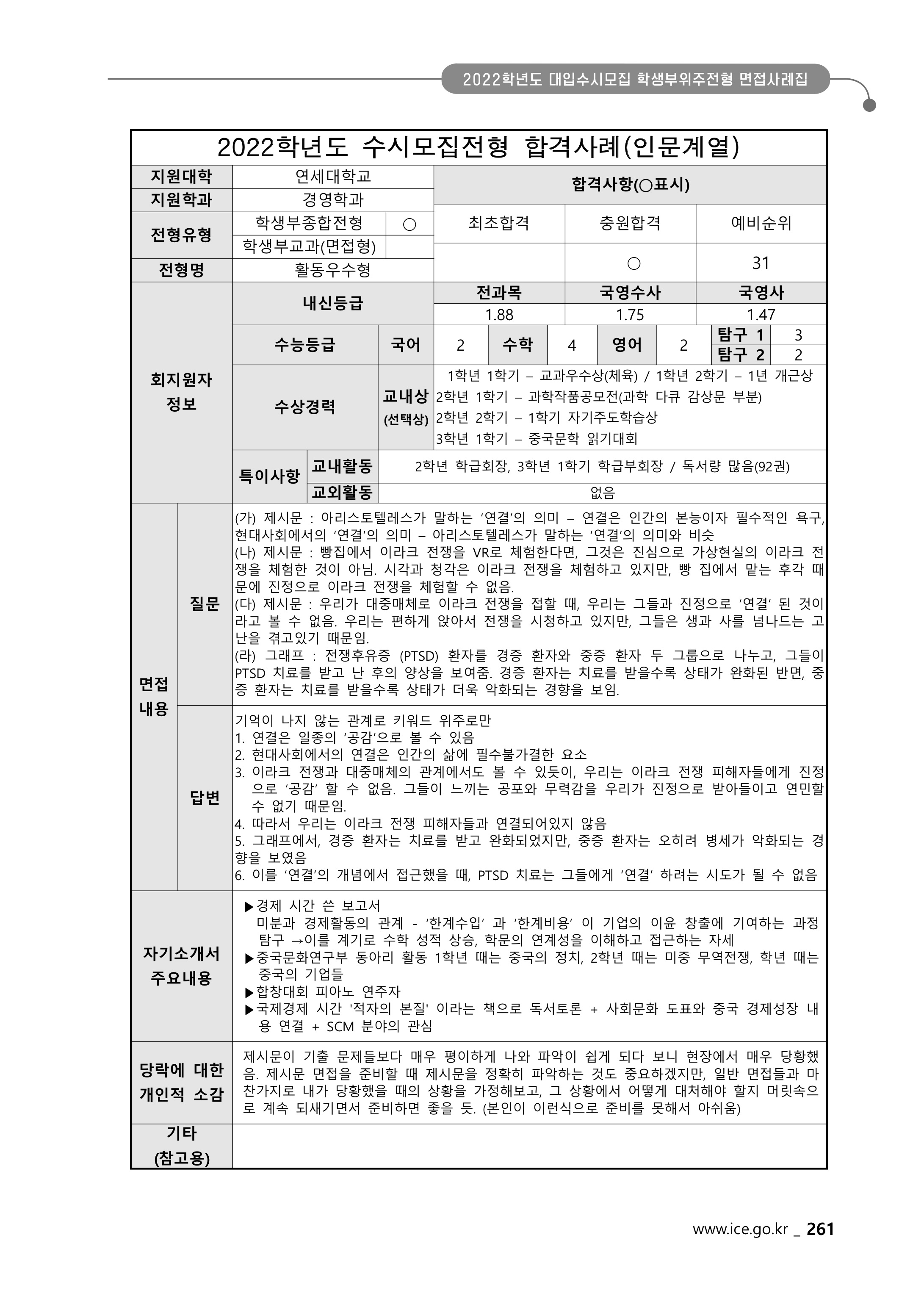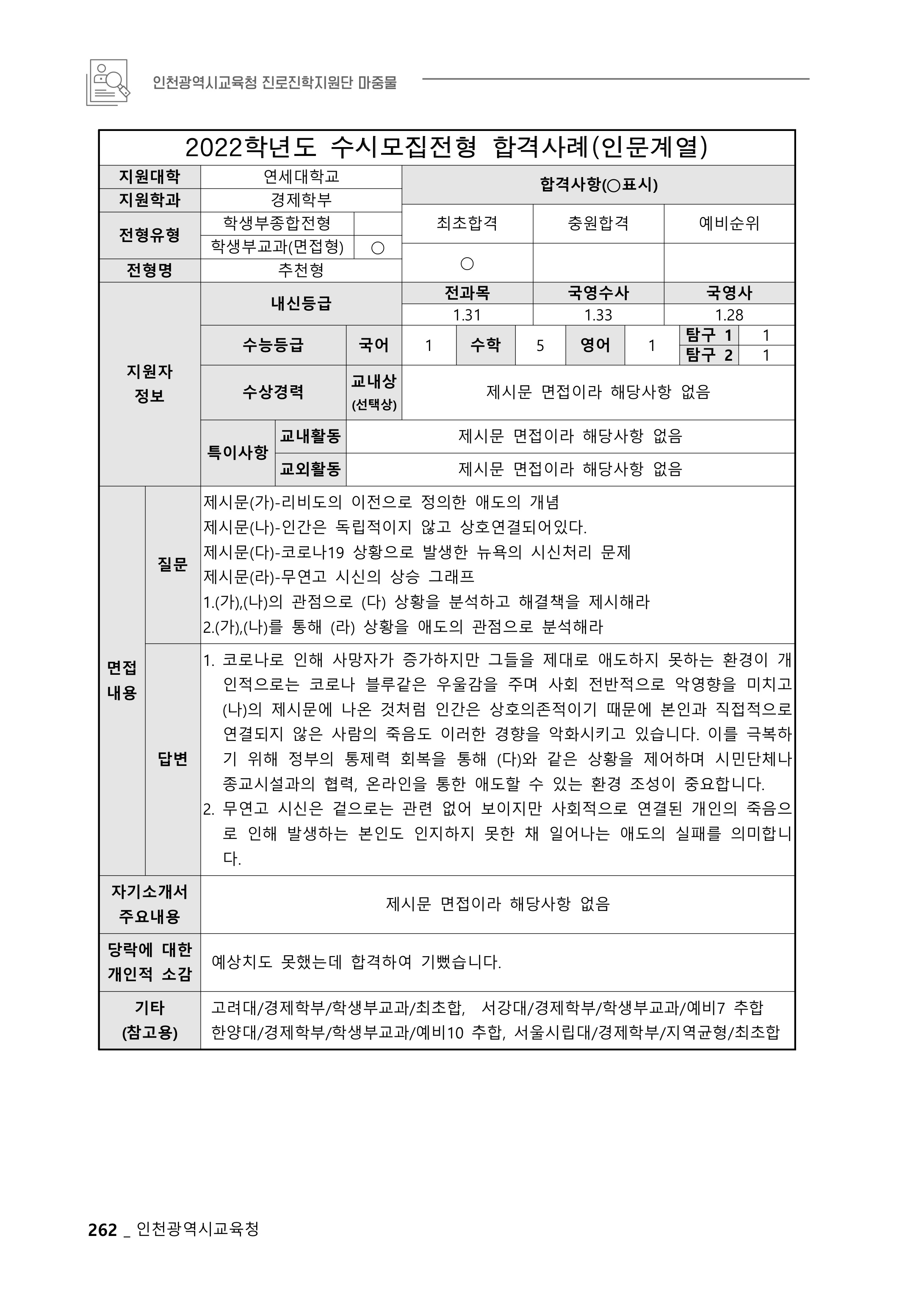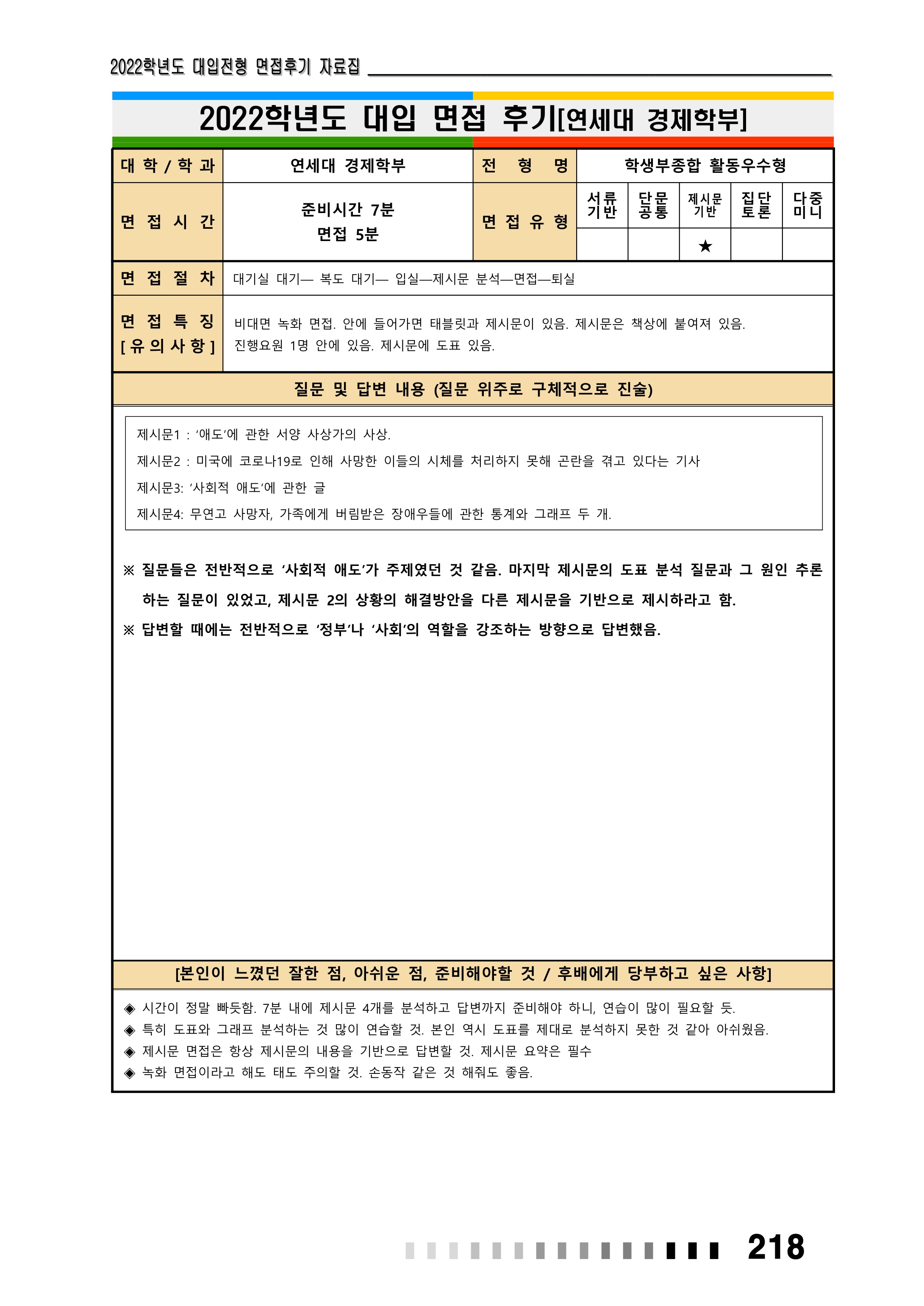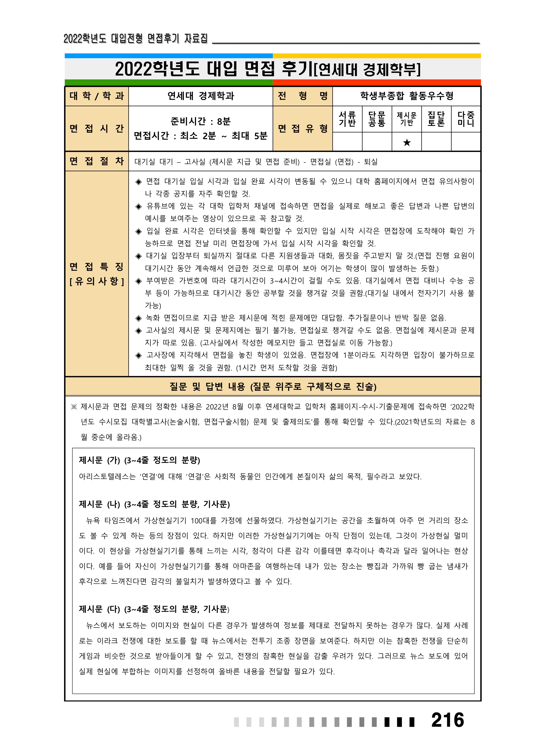 2022학년도 연세대학교 면접 후기8 - 경제학부
