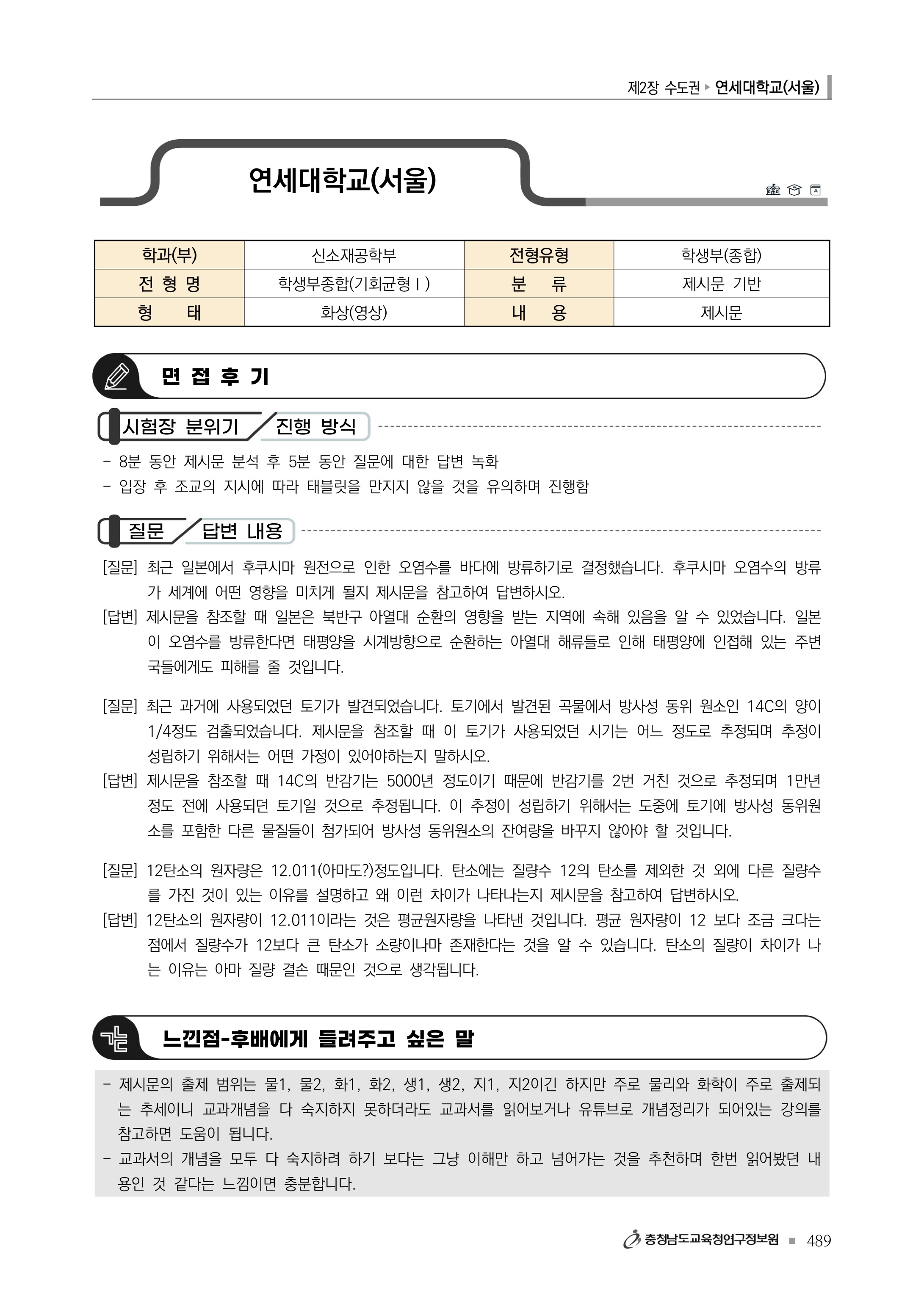 2022학년도 연세대학교 면접 후기34 - 생활디자인학과 2022학년도 연세대학교 면접 후기35 - 신소재공학부