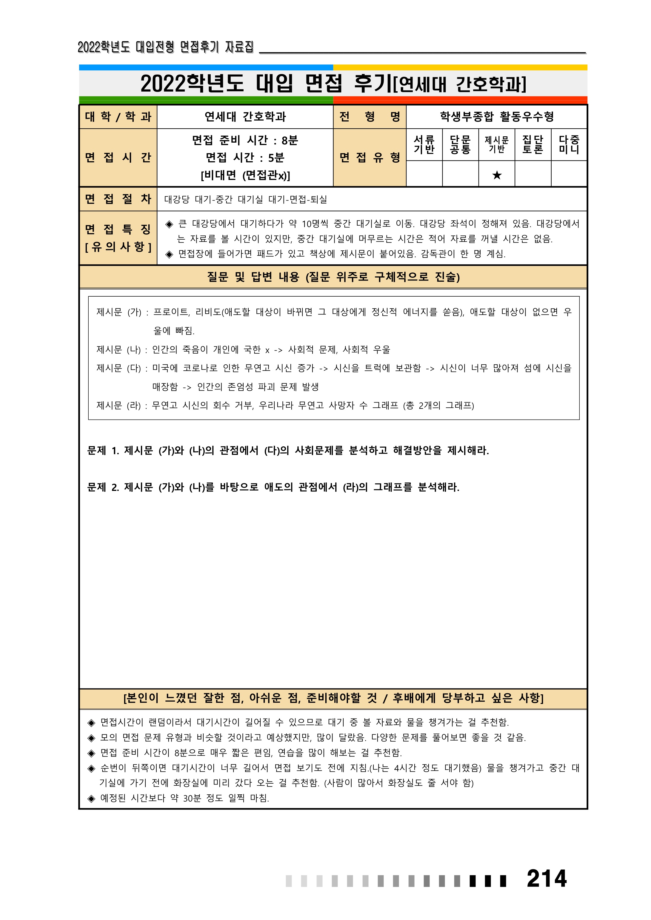 2022학년도 연세대학교 면접 후기1 - 간호학과 2022학년도 연세대학교 면접 후기2 - 간호학과