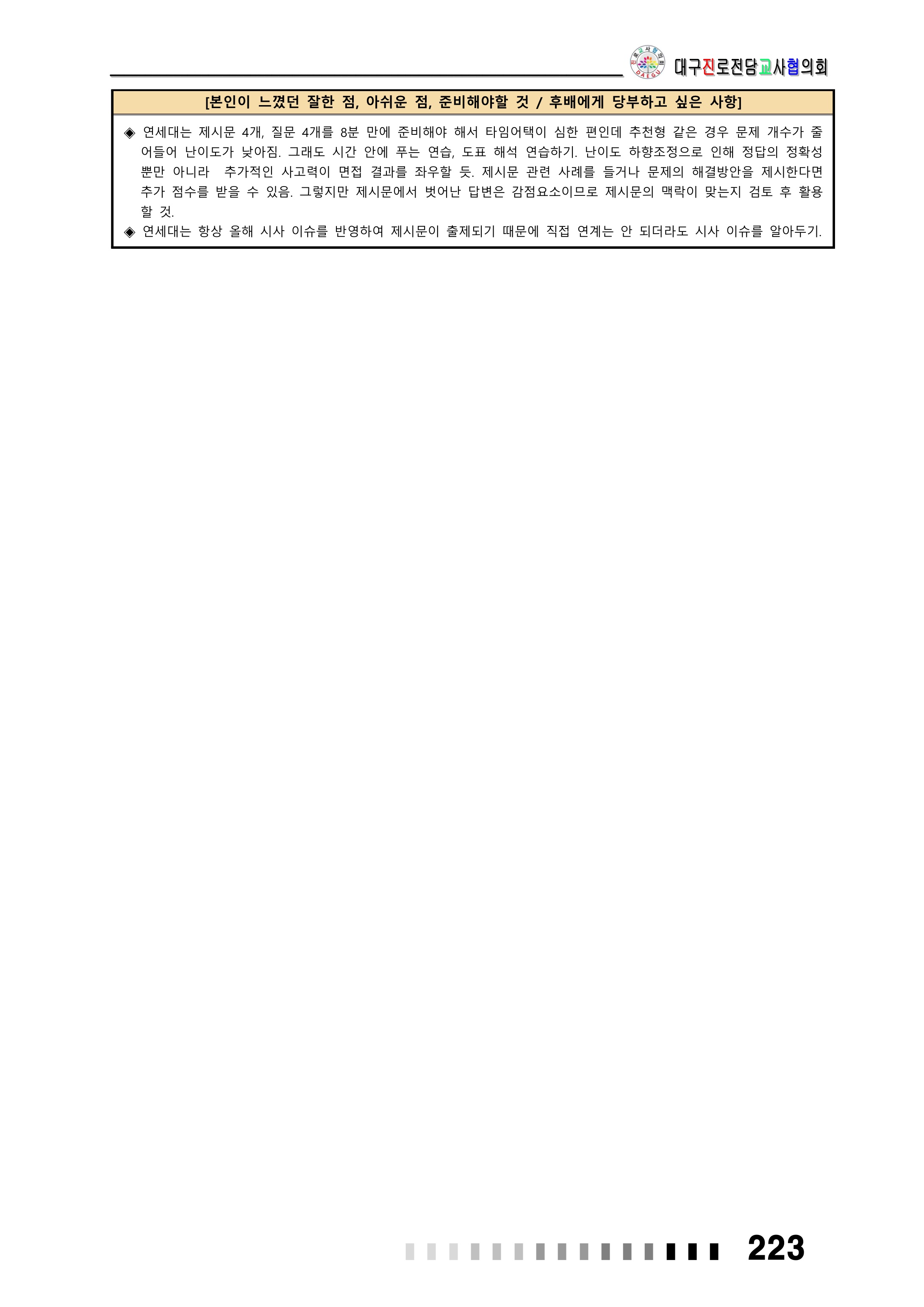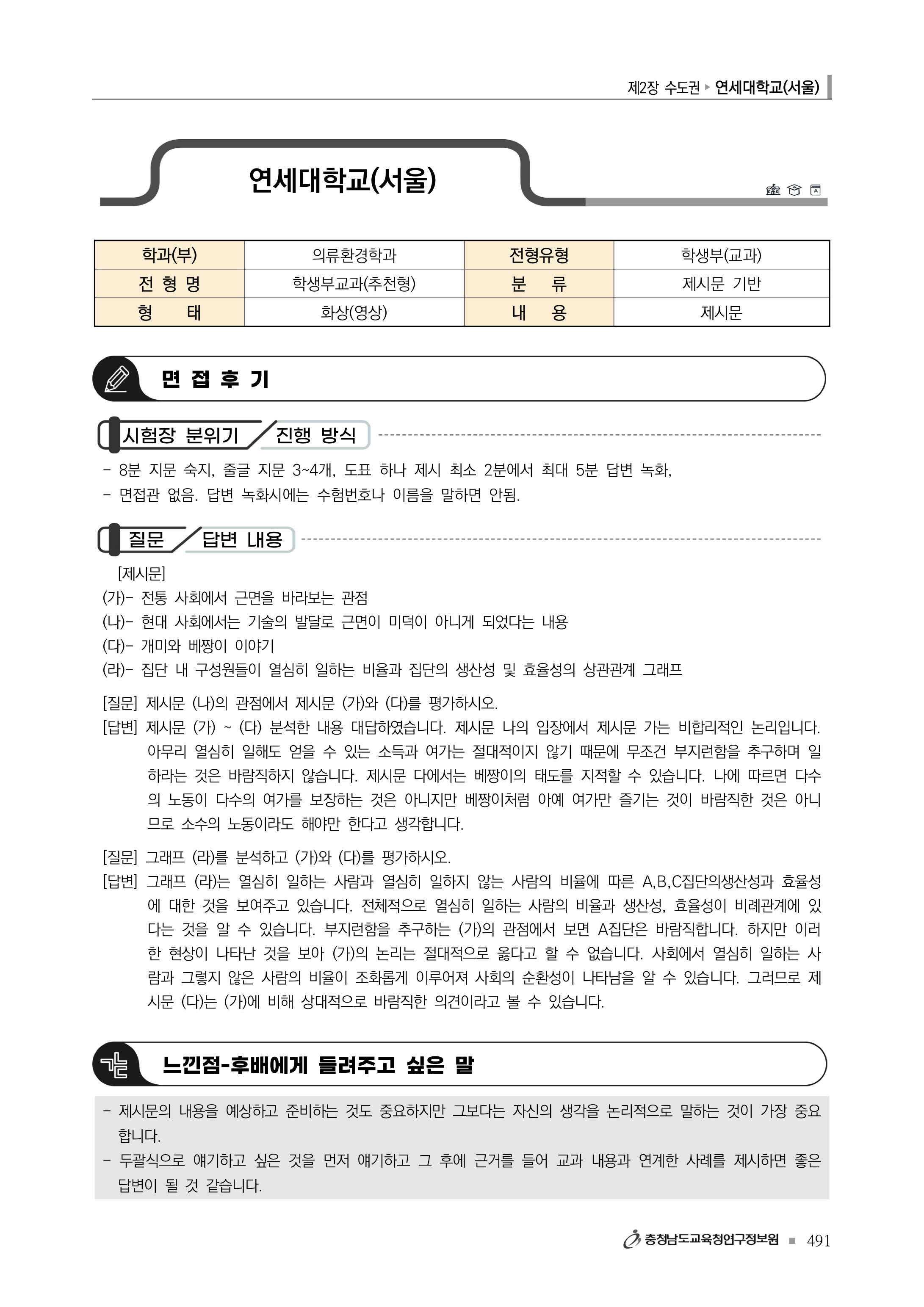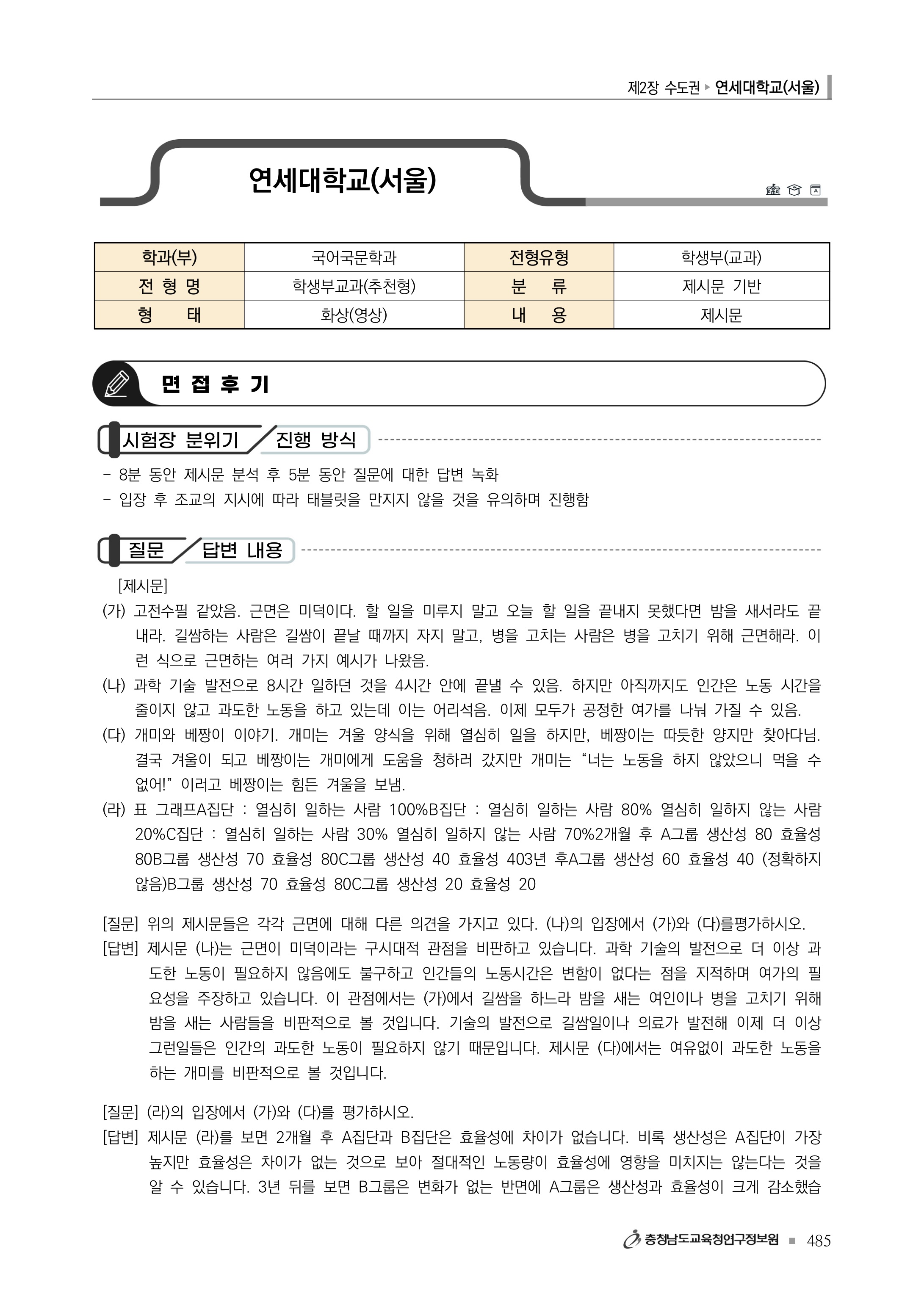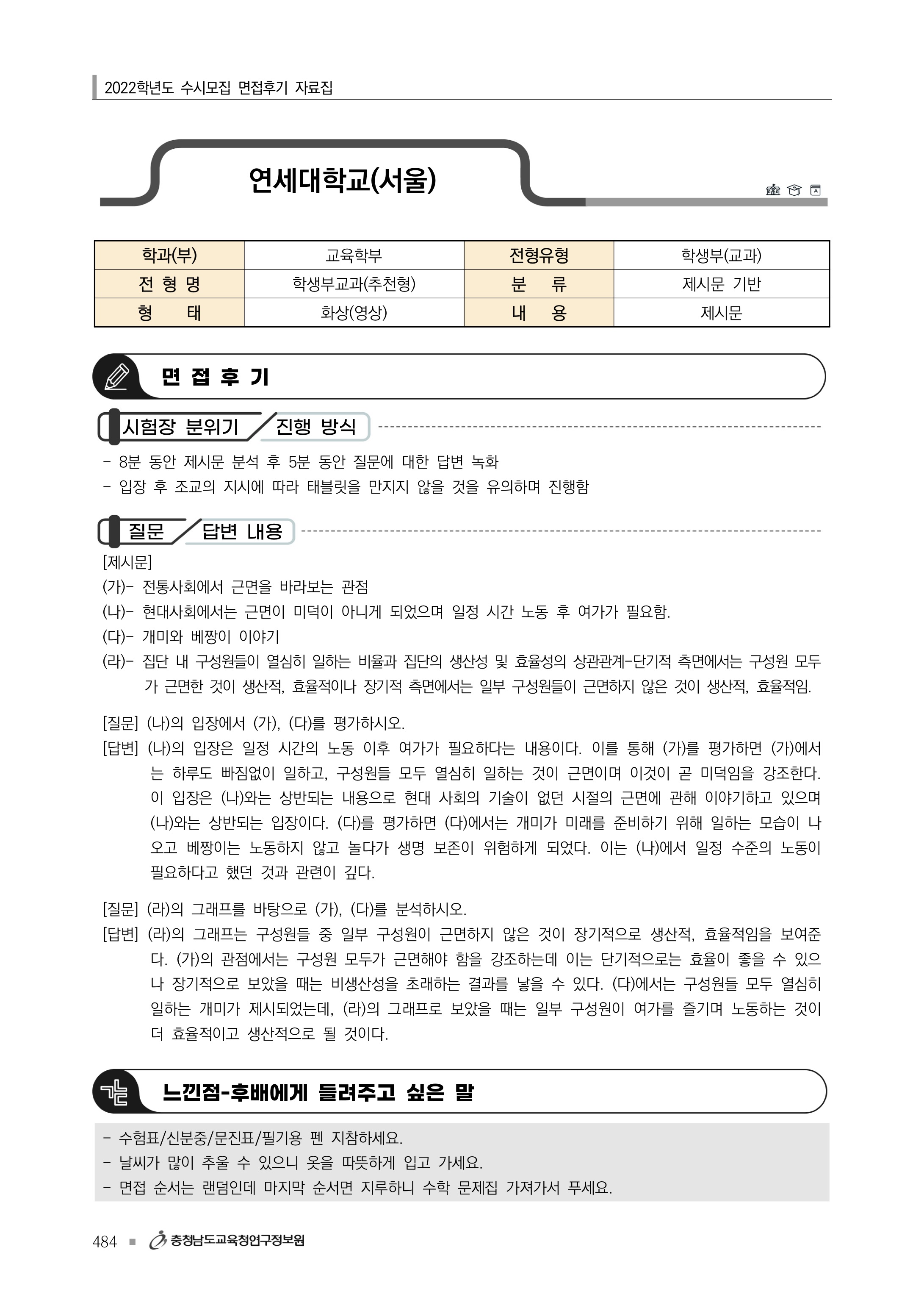 2022학년도 연세대학교 면접구술시험 문제 및 해설