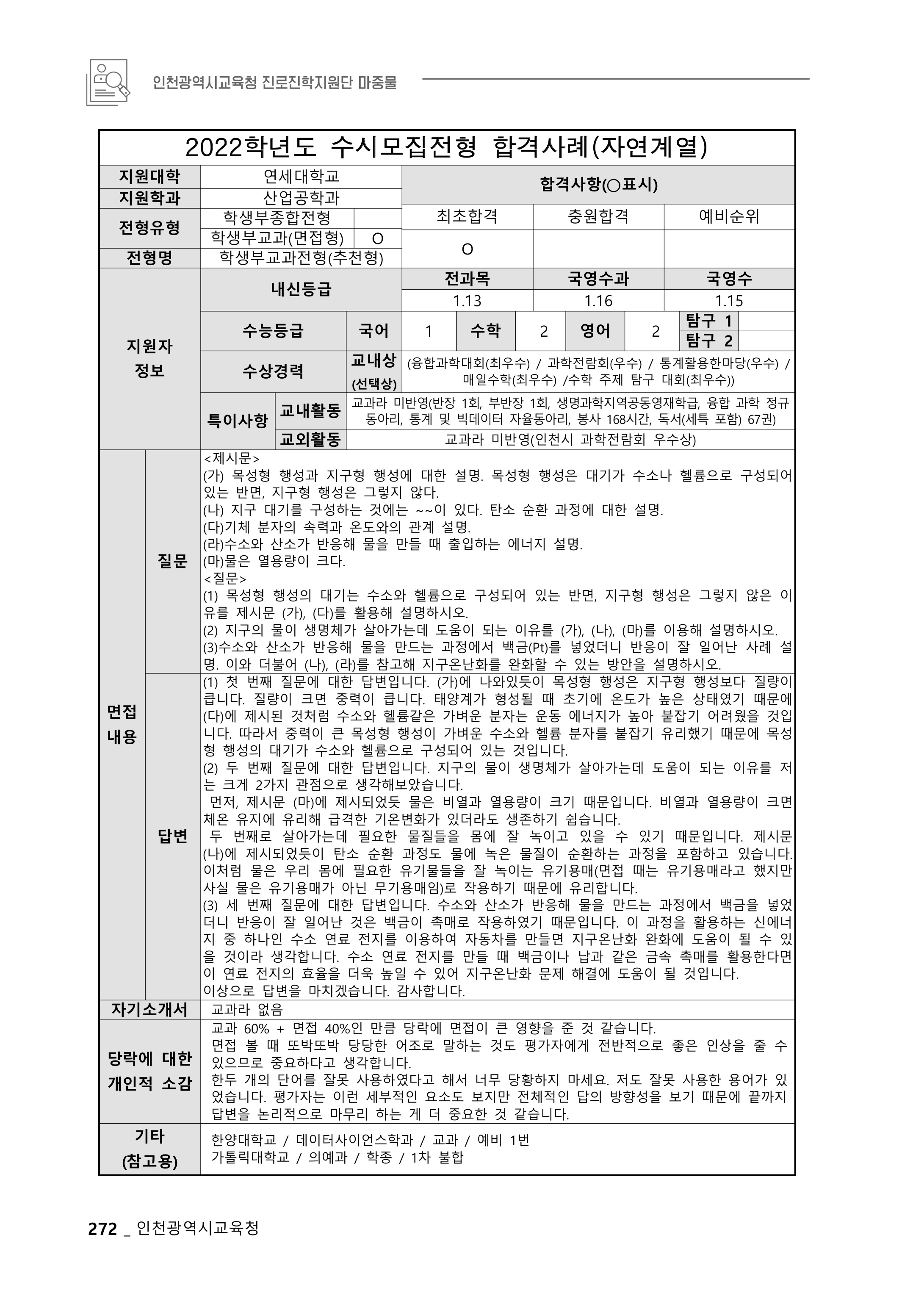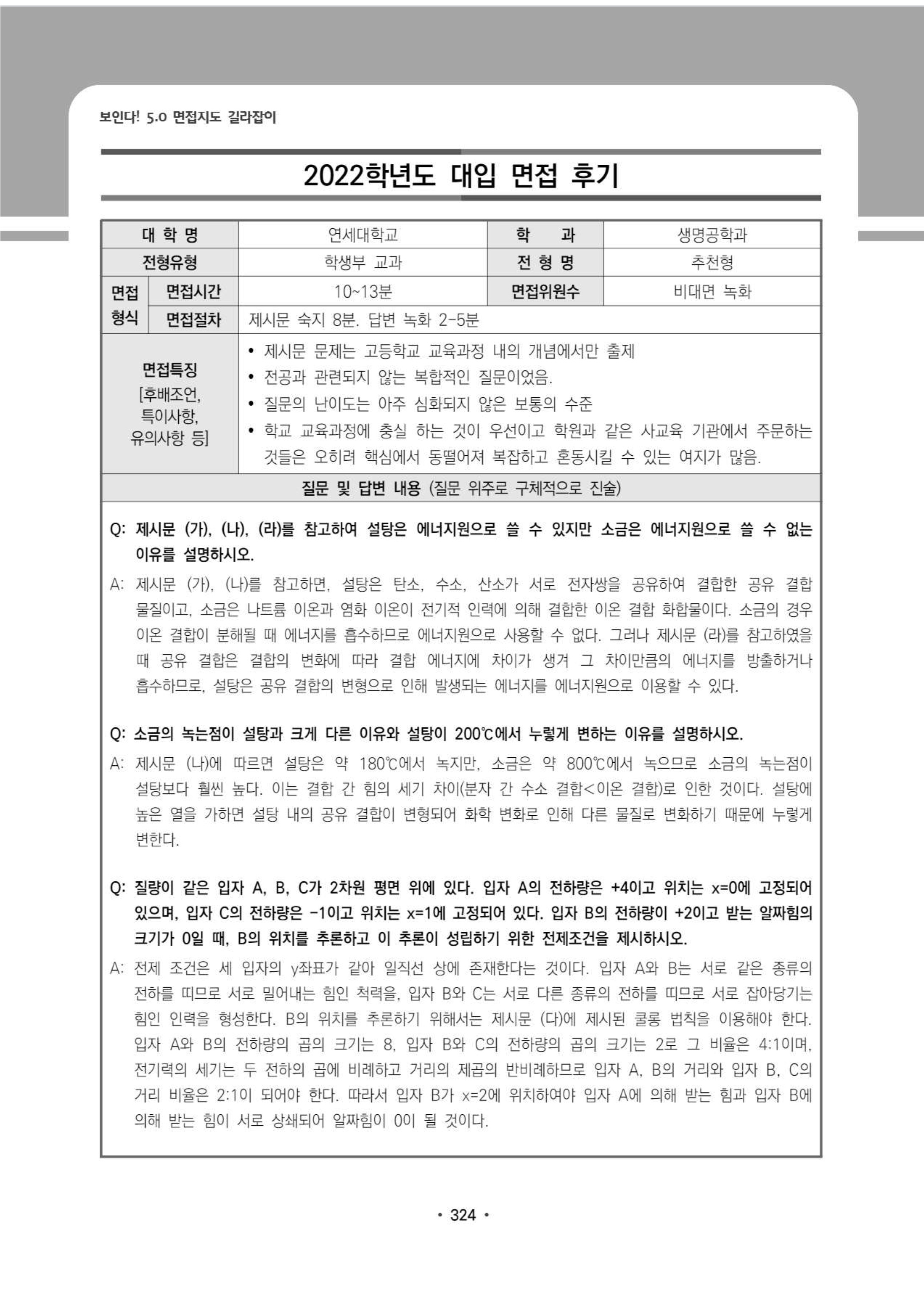 2022학년도 연세대학교 면접 후기29 - 산업공학과 2022학년도 연세대학교 면접 후기30 - 생명공학과