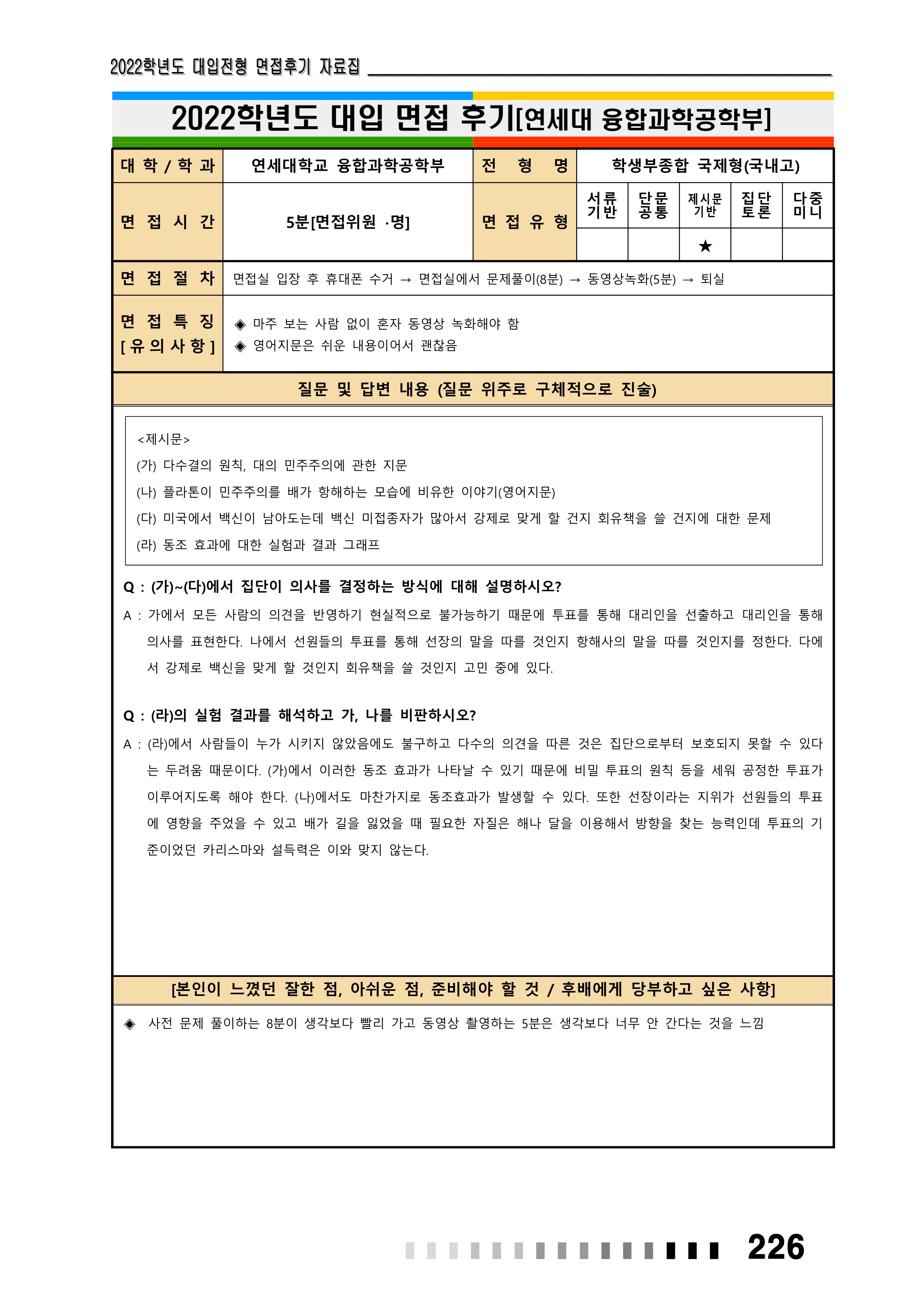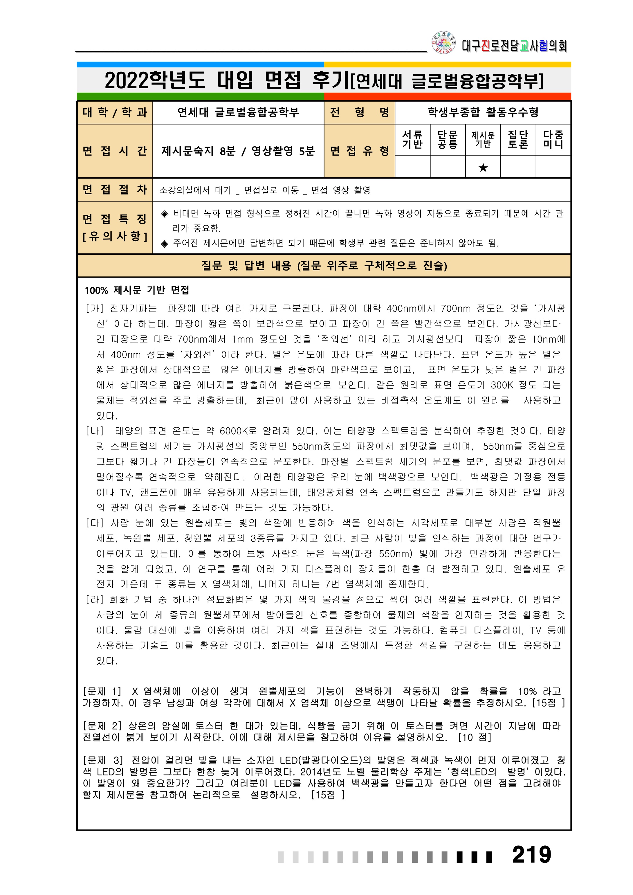 2022학년도 연세대학교 면접 후기15 - 글로벌융합공학부