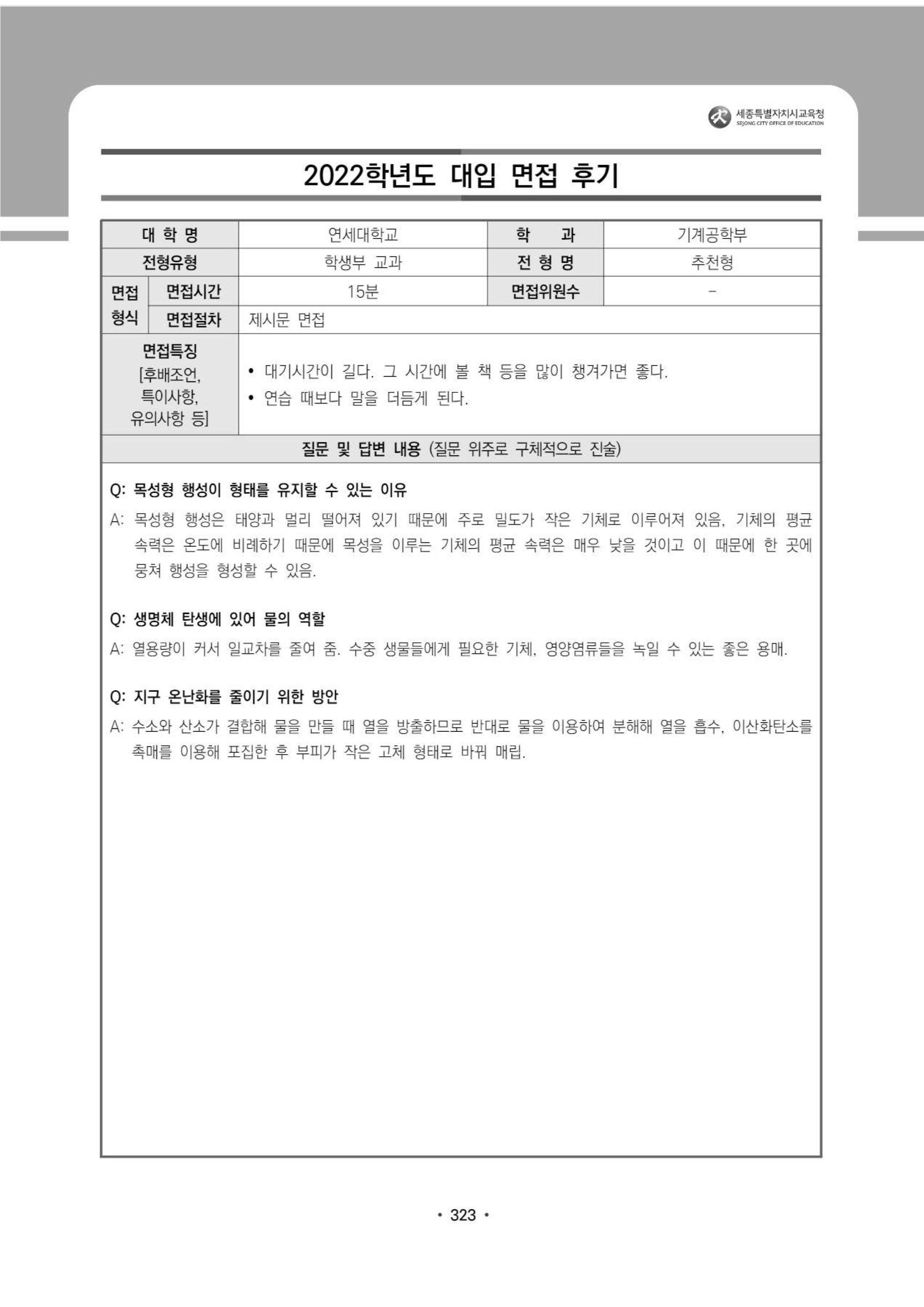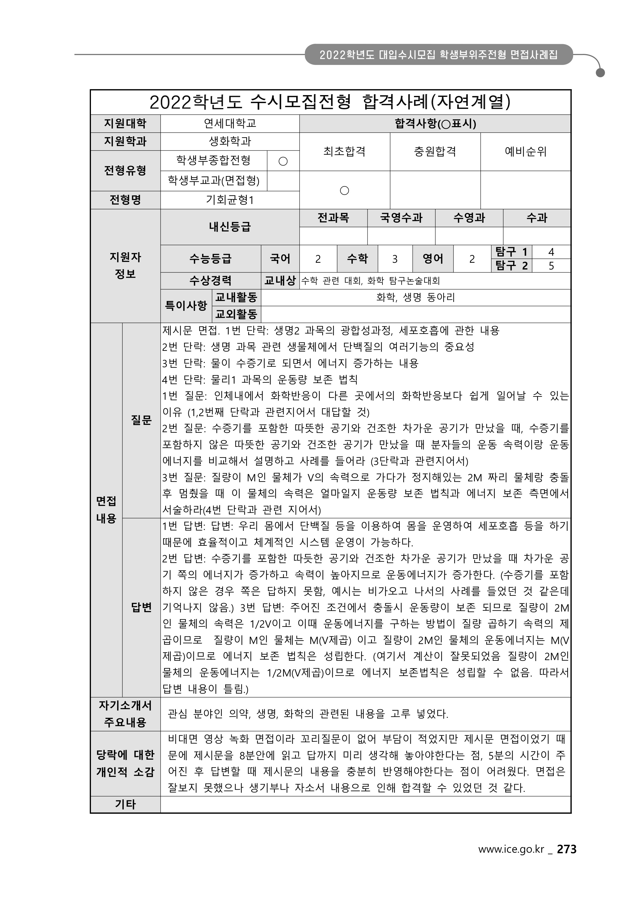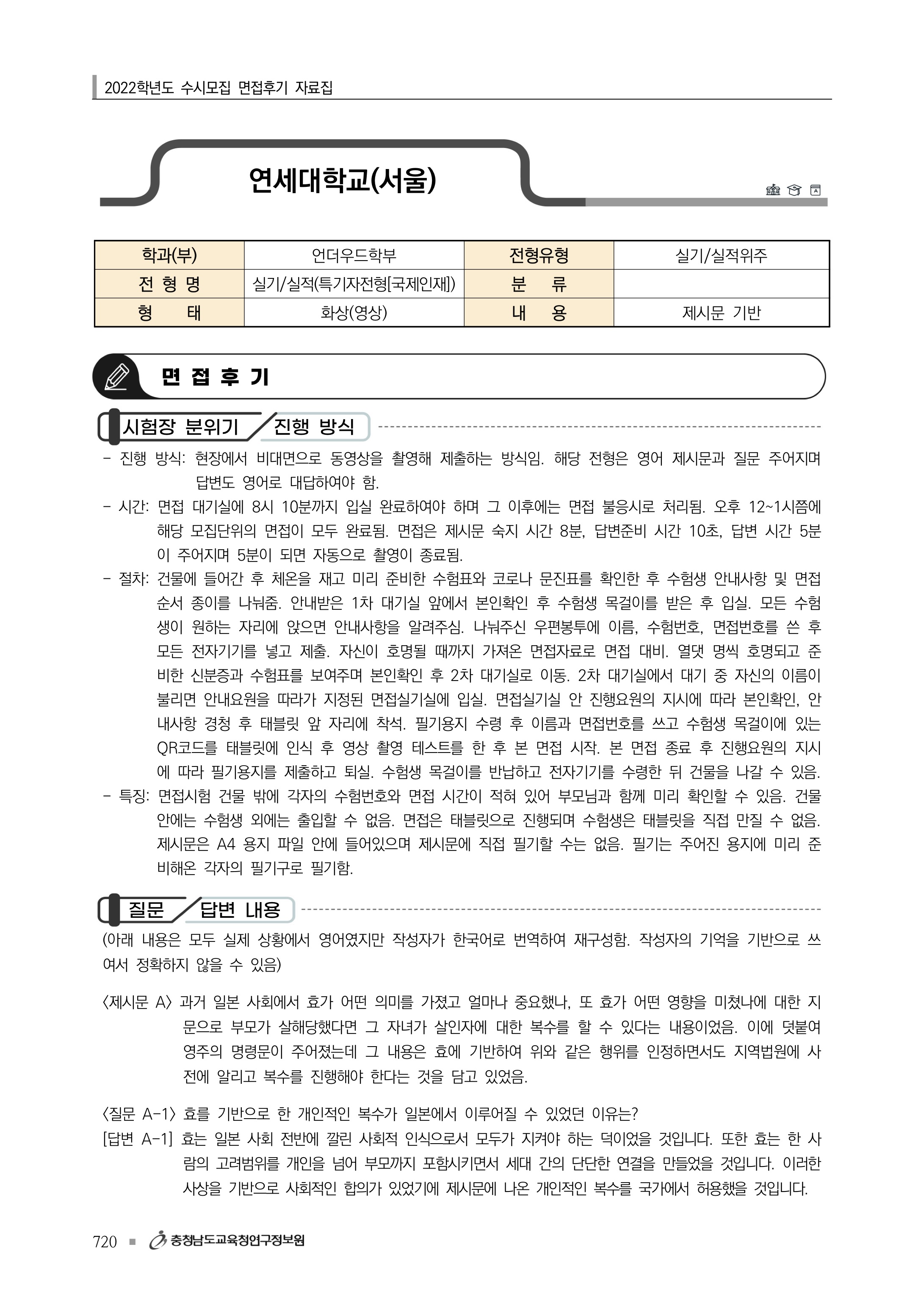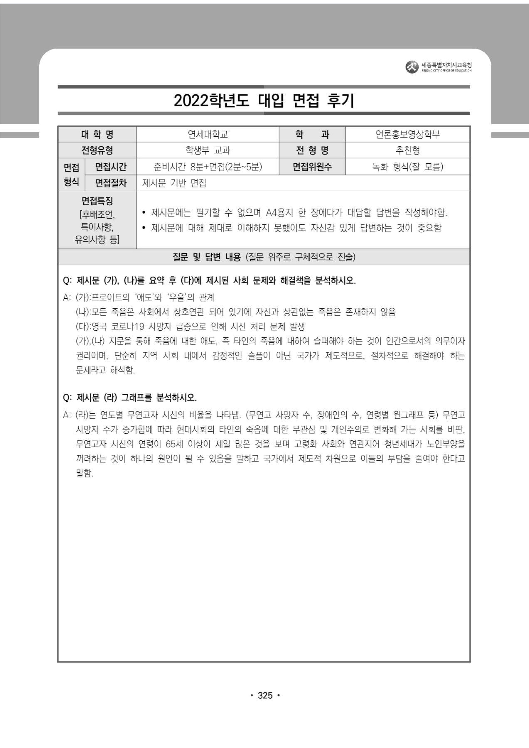 2022학년도 연세대학교 면접 질문입시 정보/면접 2022. 9. 26. 13:56