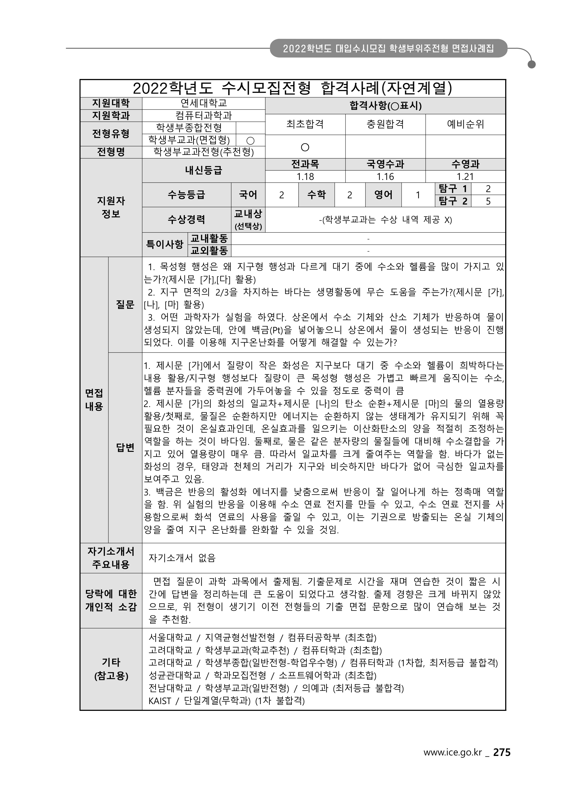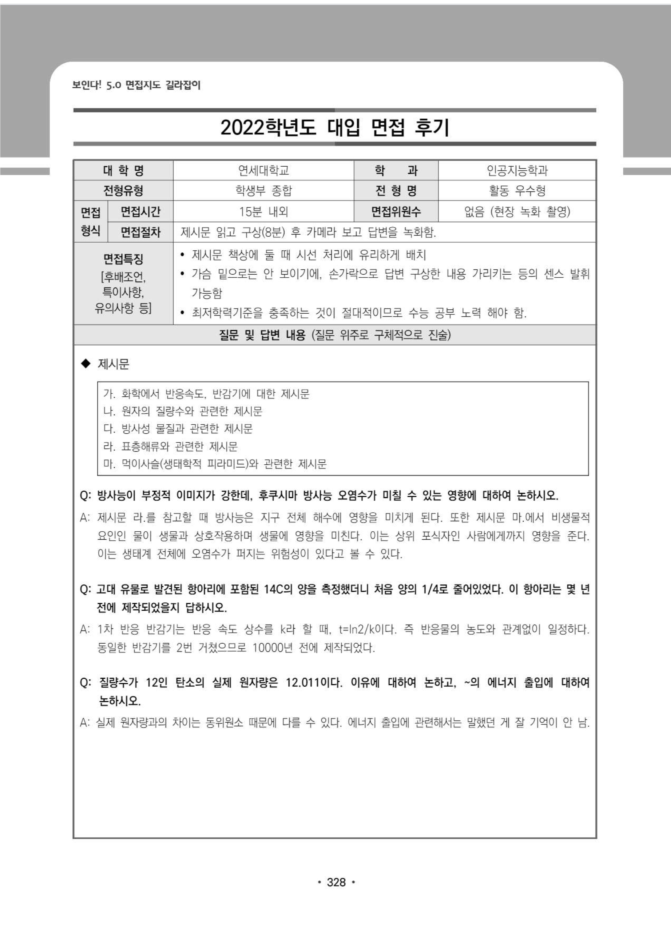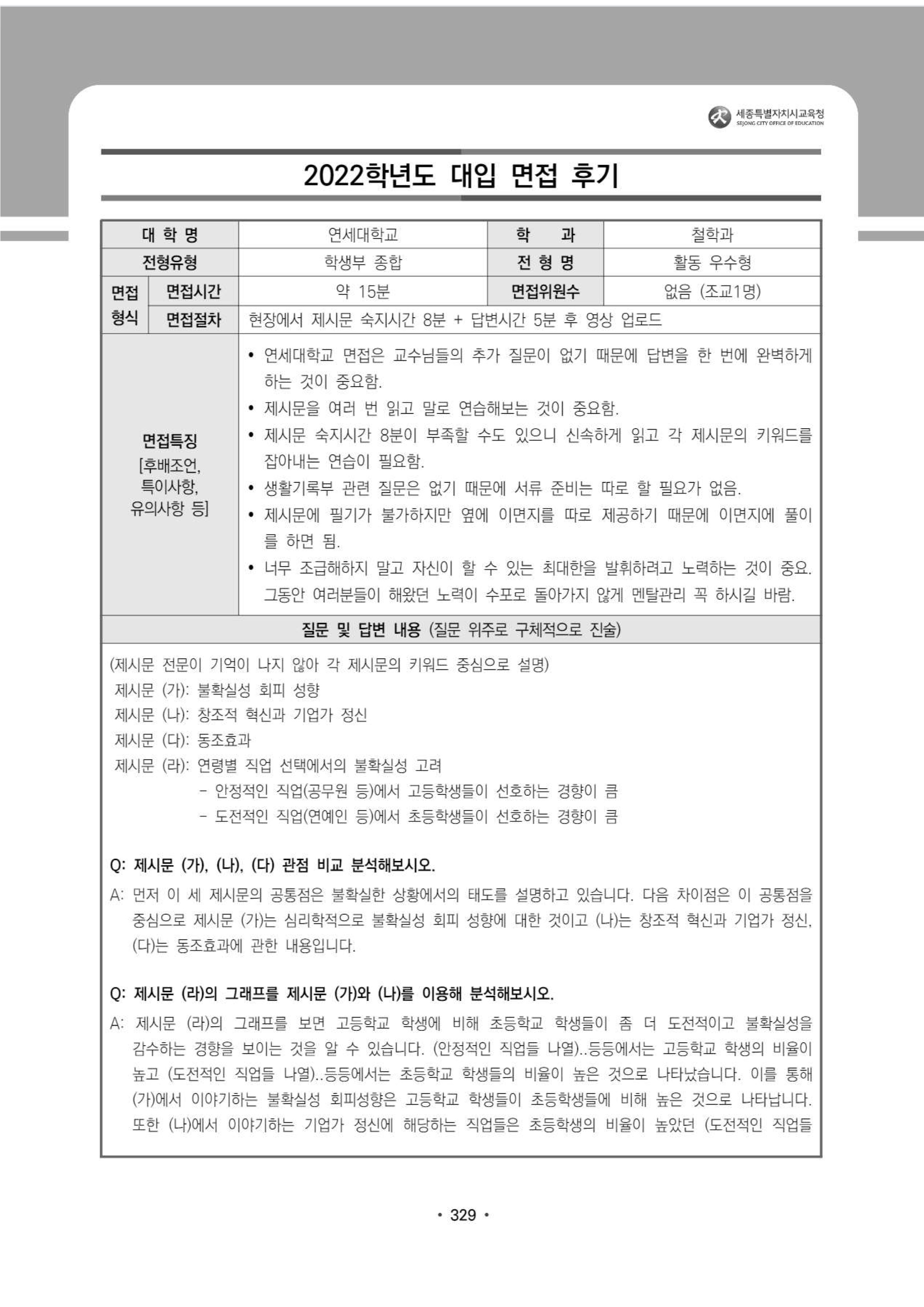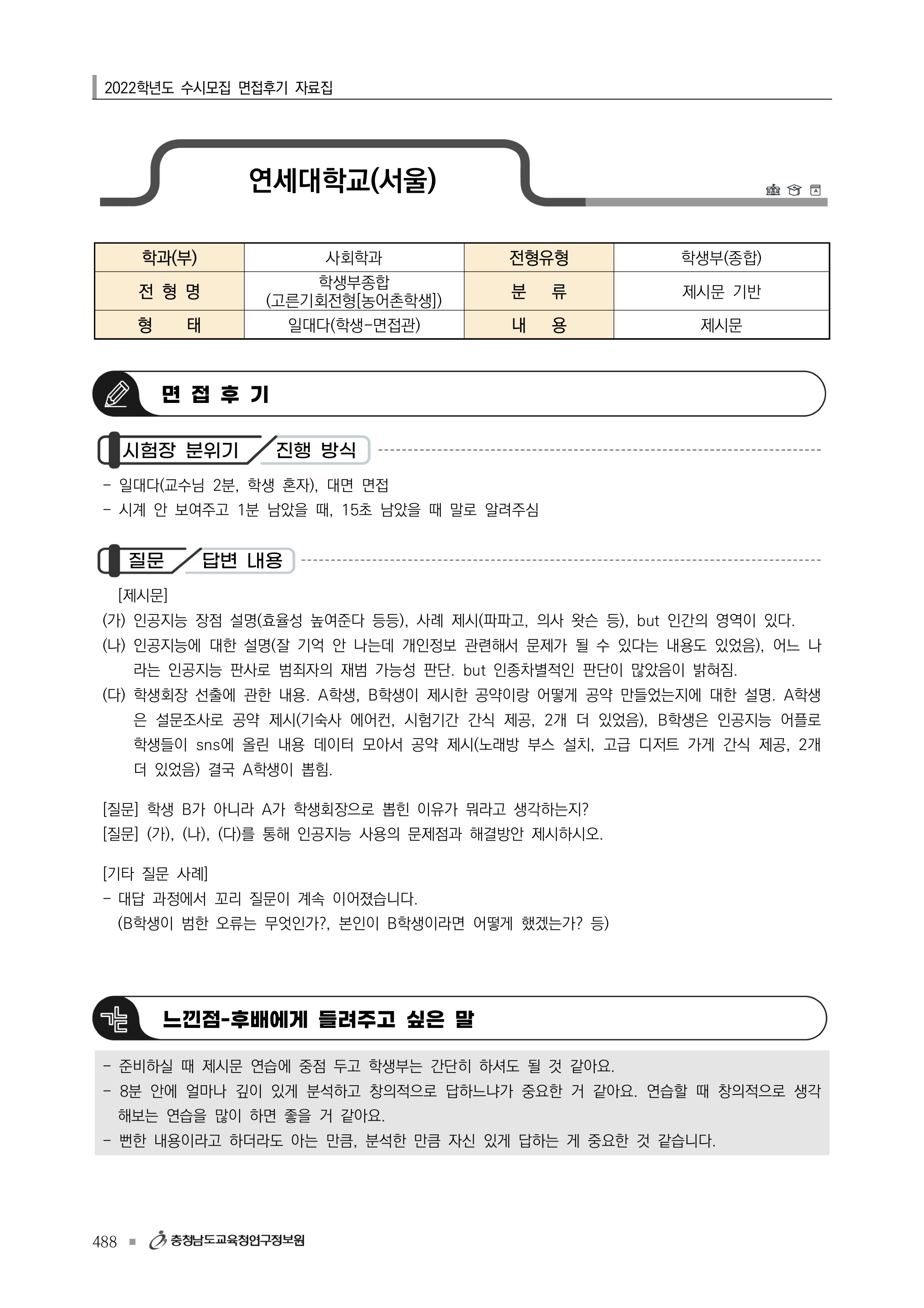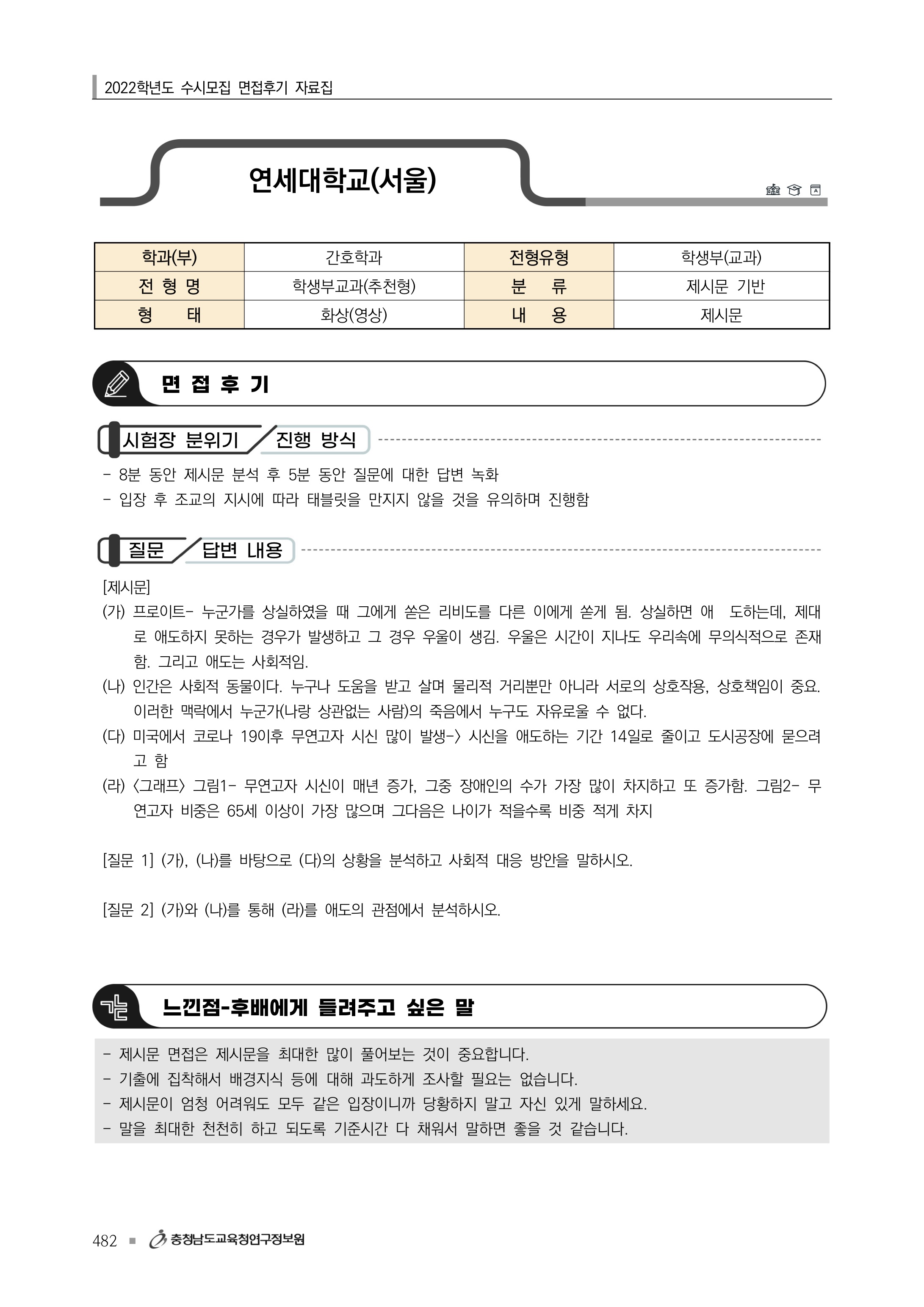 2022학년도 연세대학교 면접 질문입시 정보/면접 2022. 9. 26. 13:56