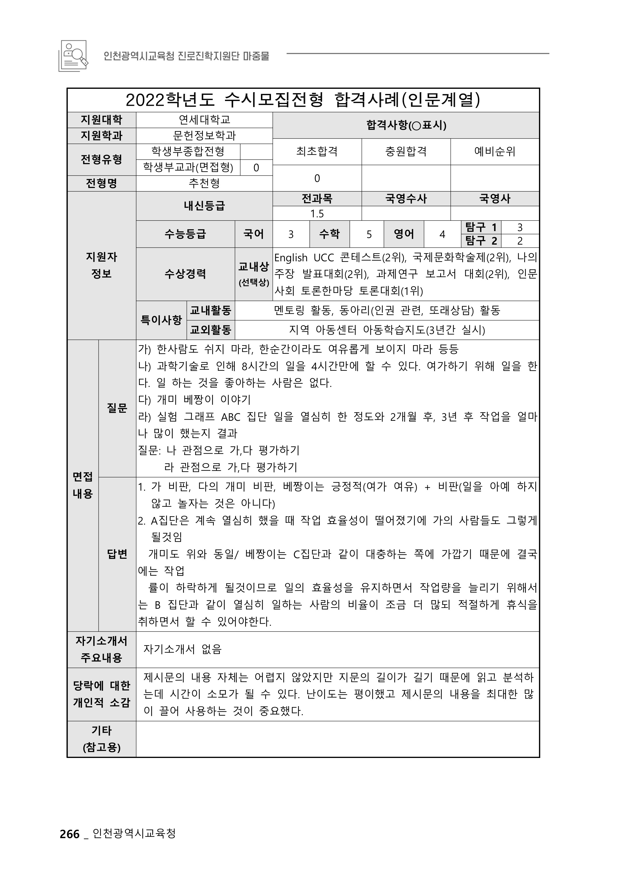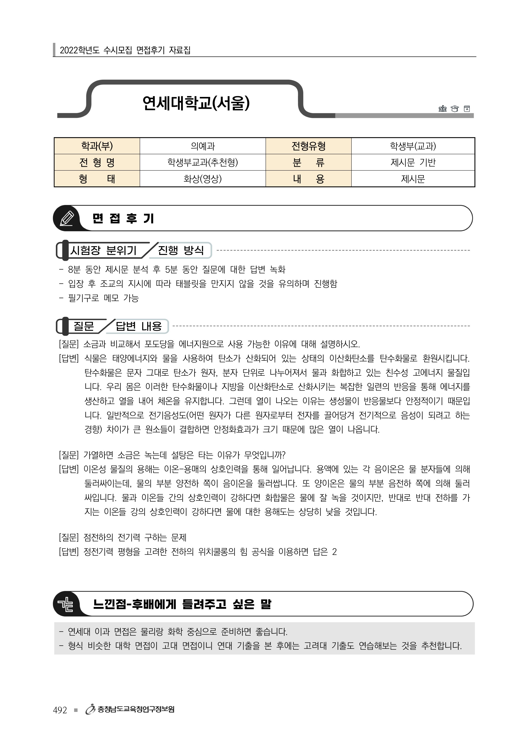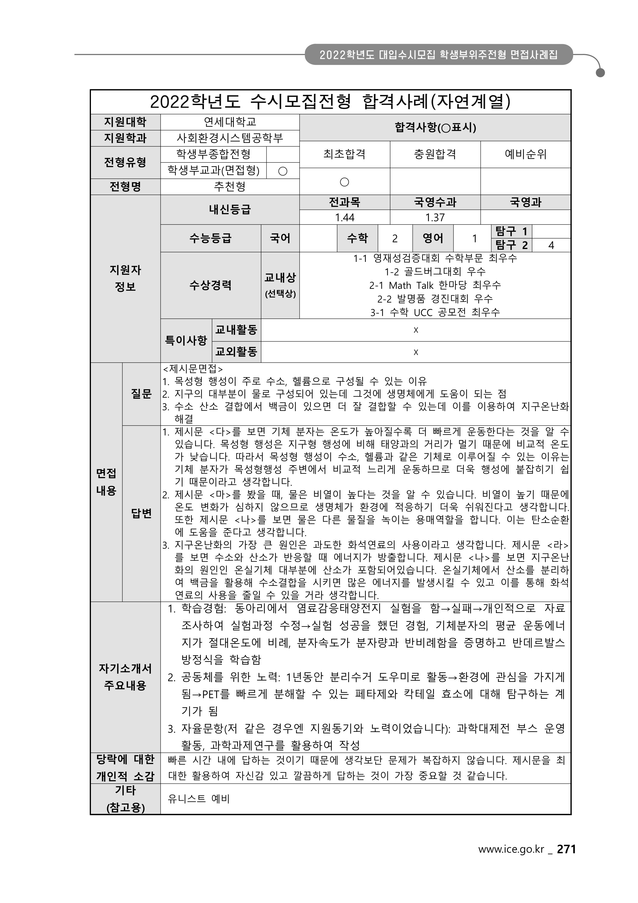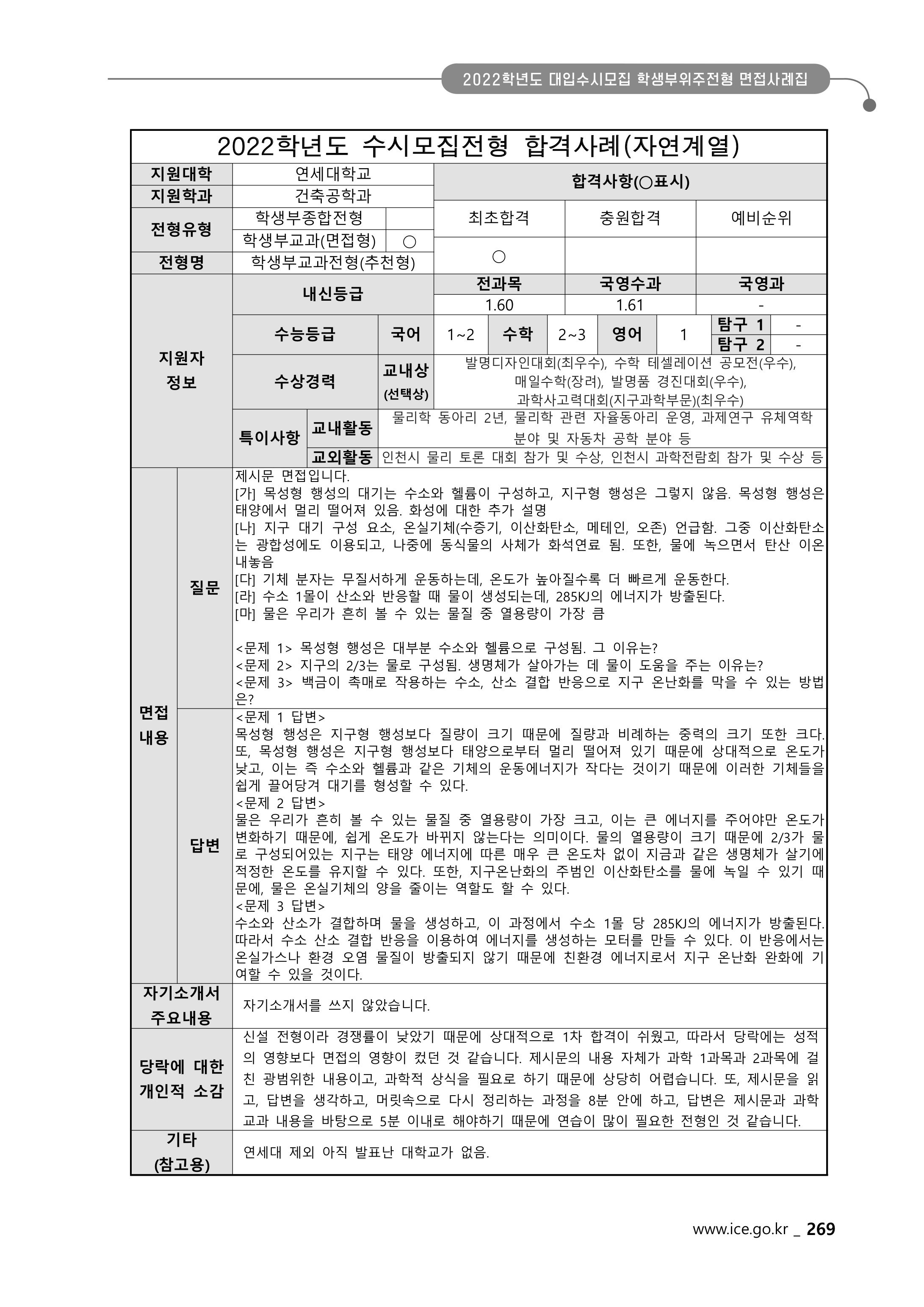 2022학년도 연세대학교 면접 질문입시 정보/면접 2022. 9. 26. 13:56