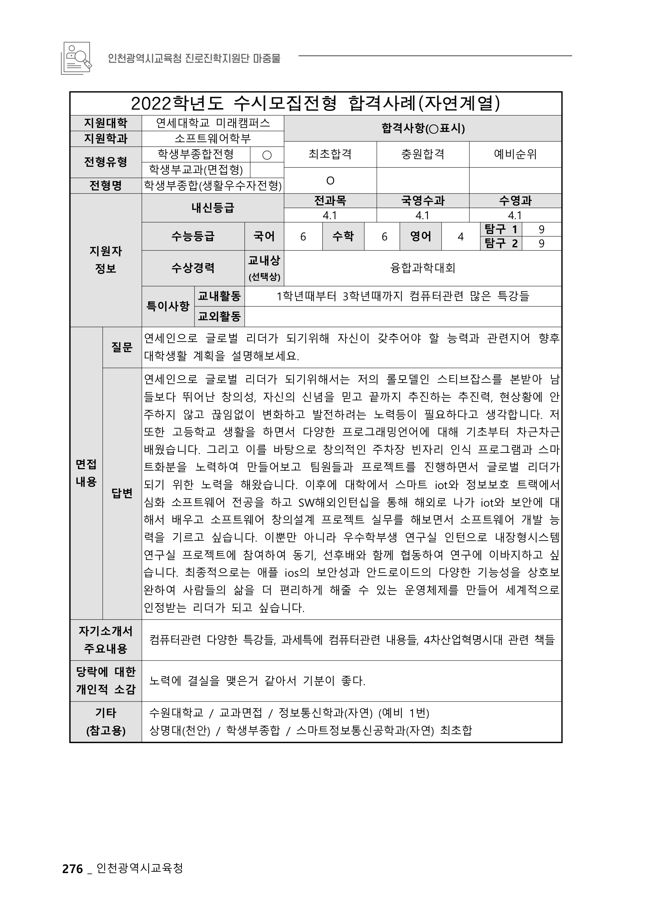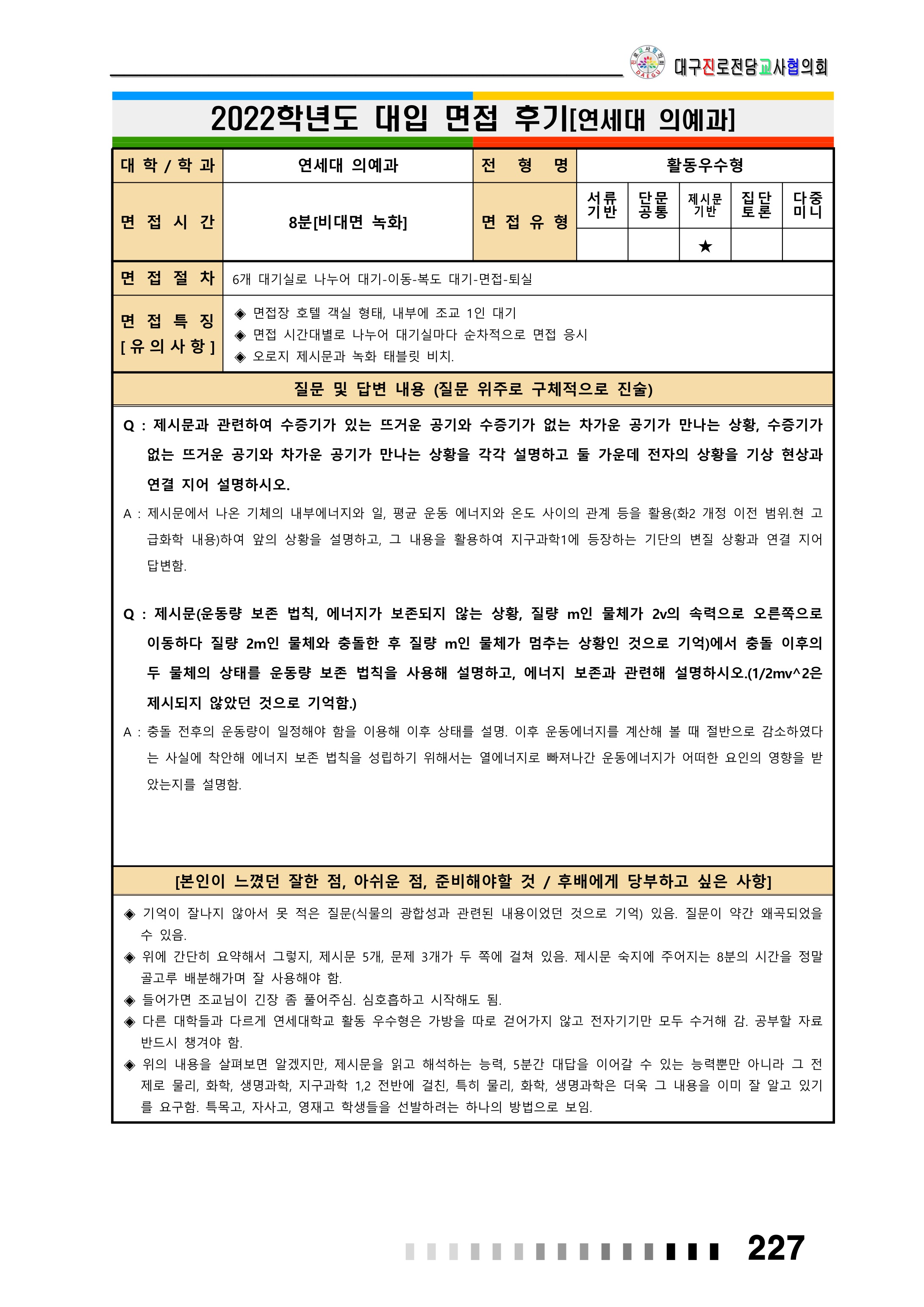 2022학년도 연세대학교 면접 후기46 - 의예과 2022학년도 연세대학교 면접 후기47 - 인공지능학과
