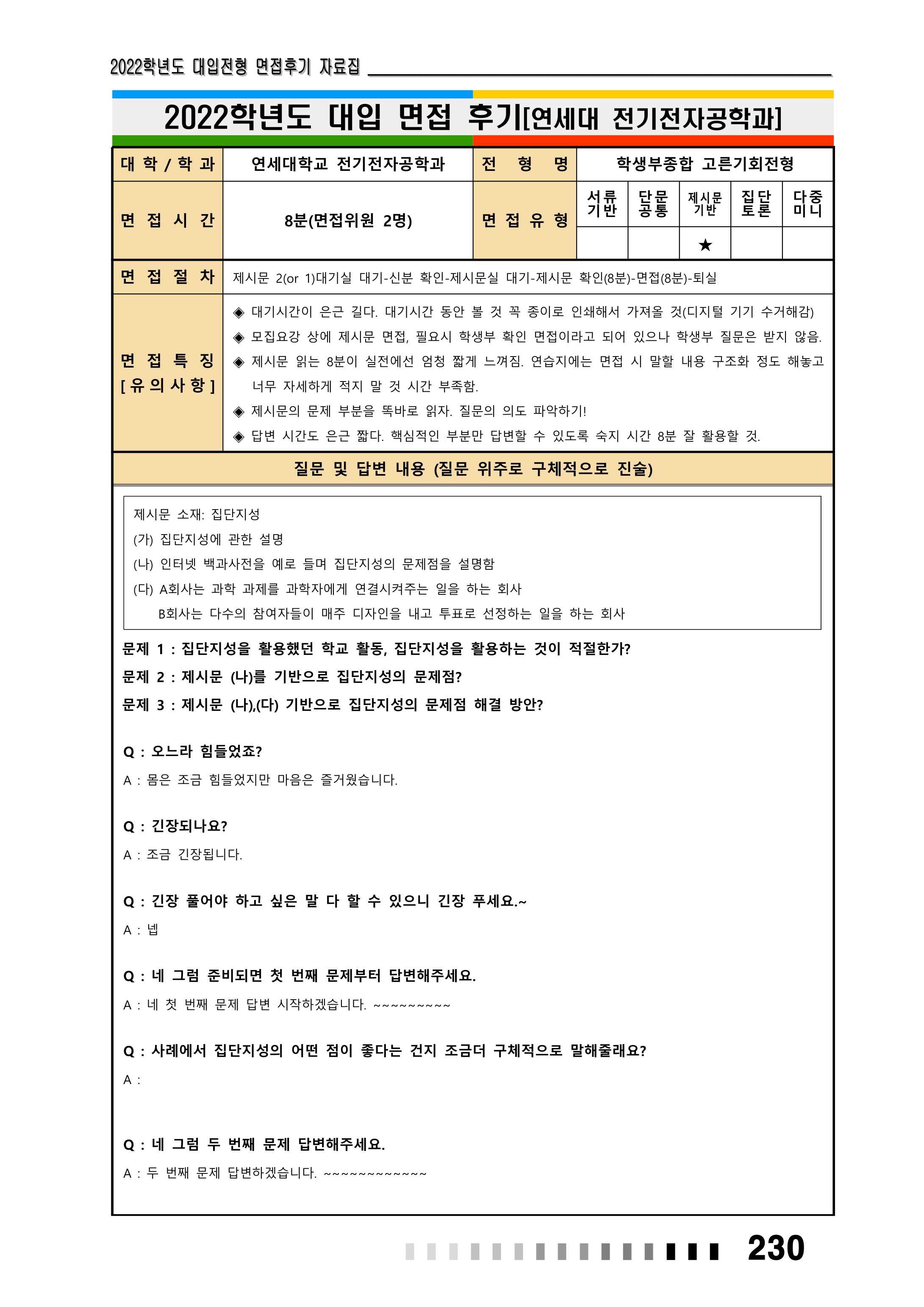 2022학년도 연세대학교 면접 후기48 - 전기전자공학과