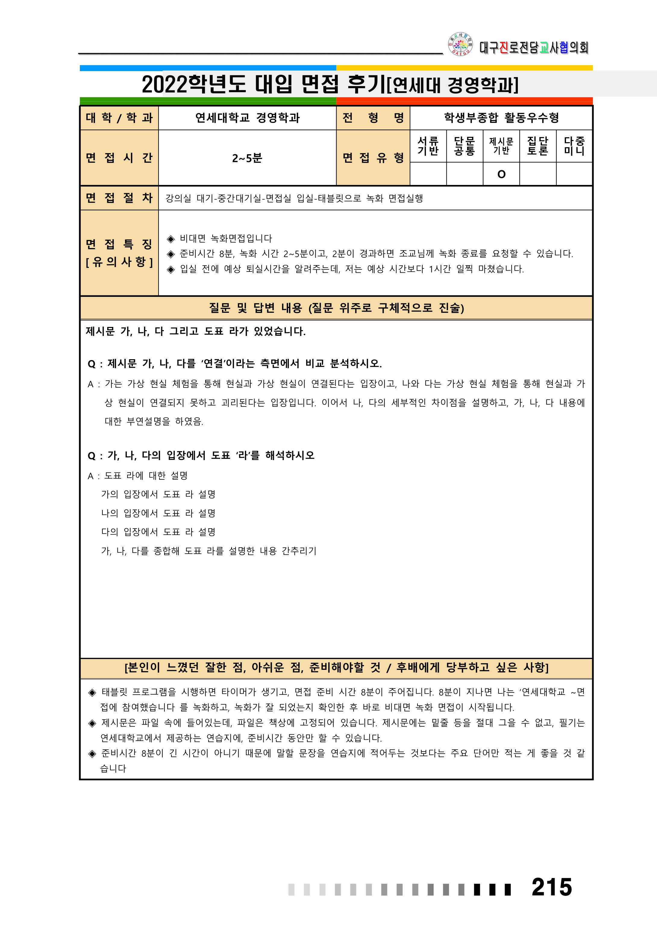 2022학년도 연세대학교 면접 후기6 - 경영학과