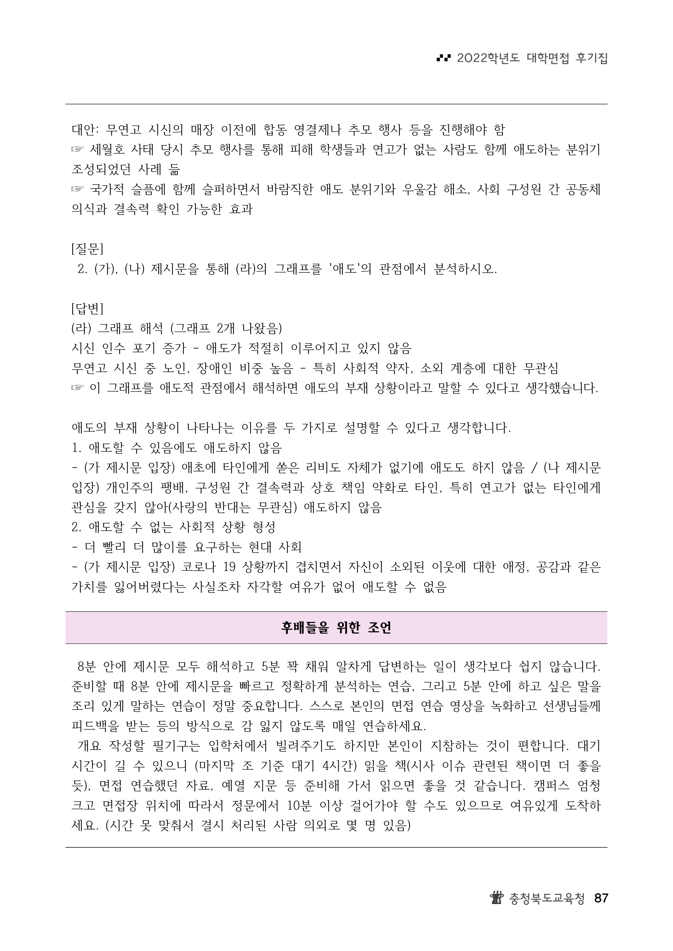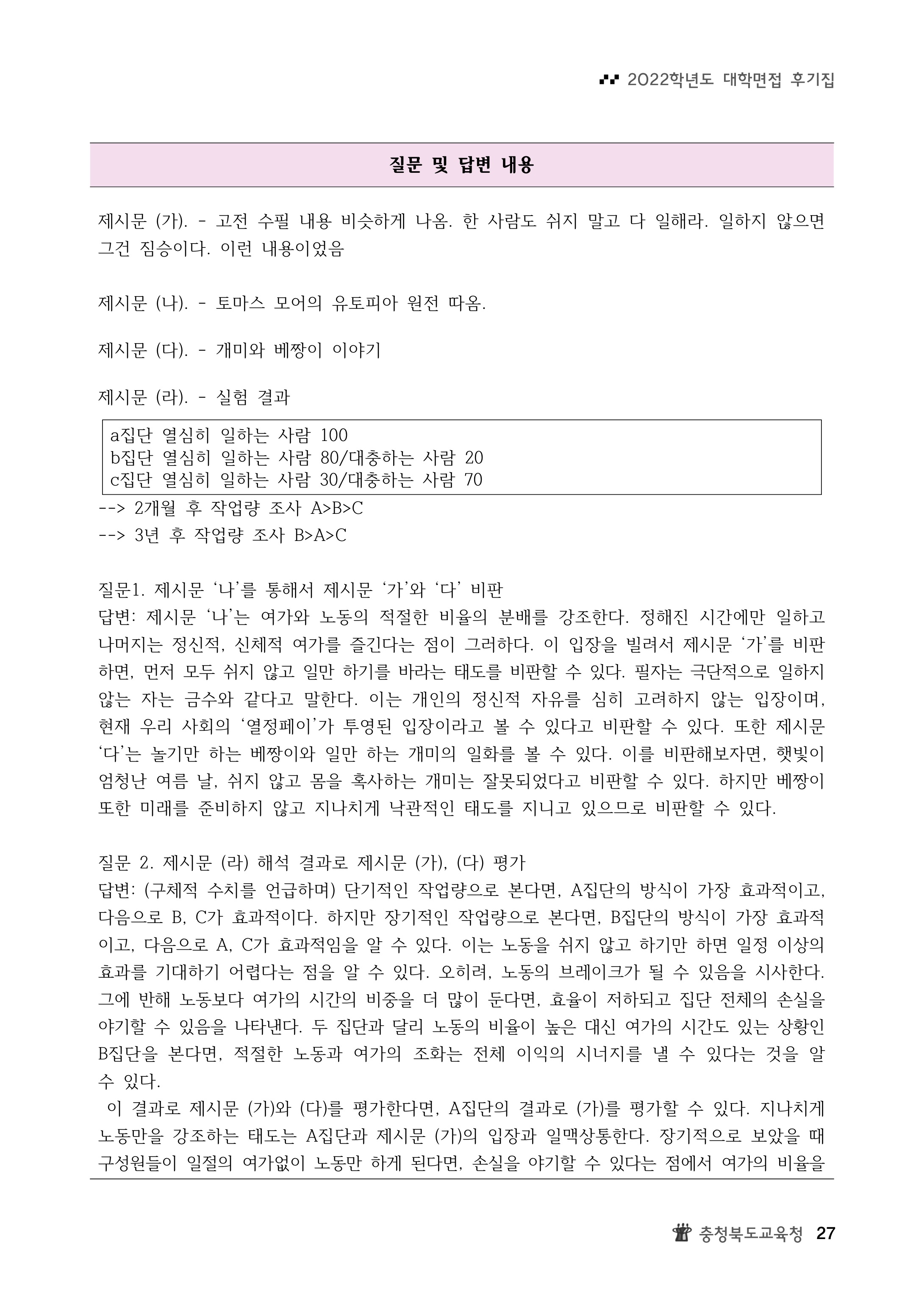 2022학년도 숭실대학교 면접 질문 (0) 2022.09.28 2022학년도 가천대학교 면접 질문 (0) 2022.09.27 2022학년도 고려대학교 면접구술시험 문제 및 해설 (1) 2022.09.24 2022학년도 연세대학교 면접구술시험 문제 및 해설 (0) 2022.09.23 2023학년도 건국대학교 면접 질문 (1) 2022.09.21