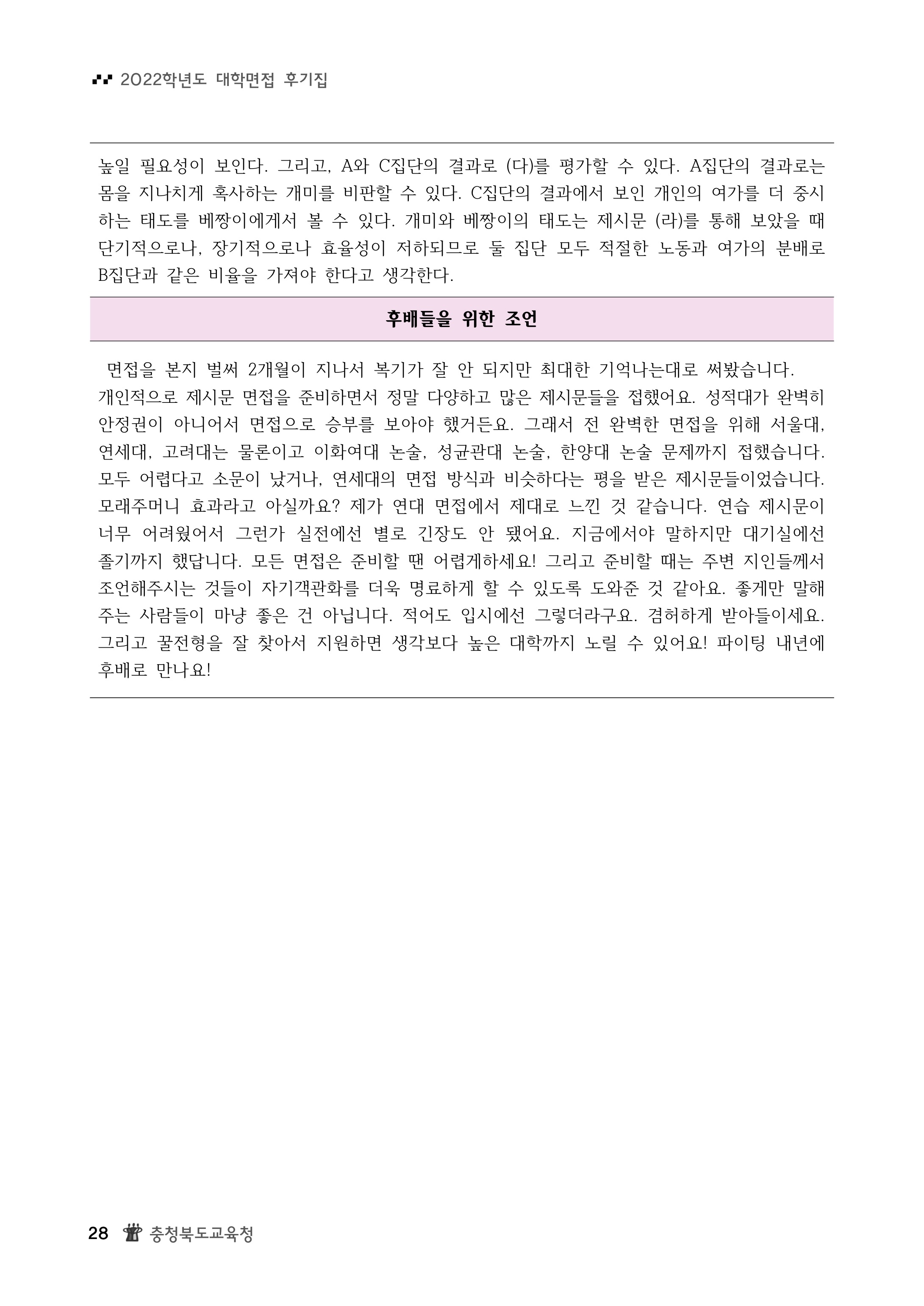 2022학년도 연세대학교 면접 후기14 - 국어국문학과 2022학년도 연세대학교 면접 후기15 - 글로벌융합공학부