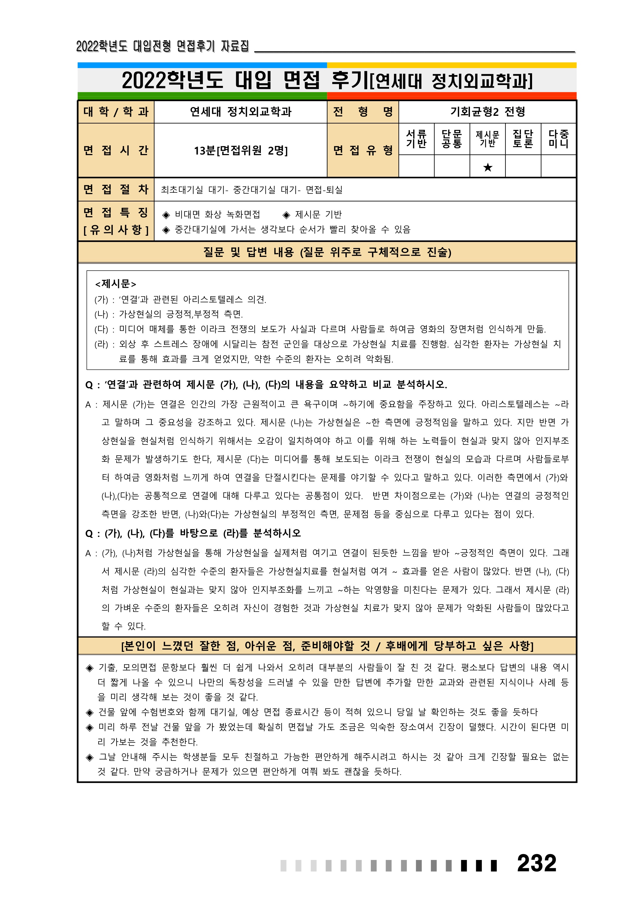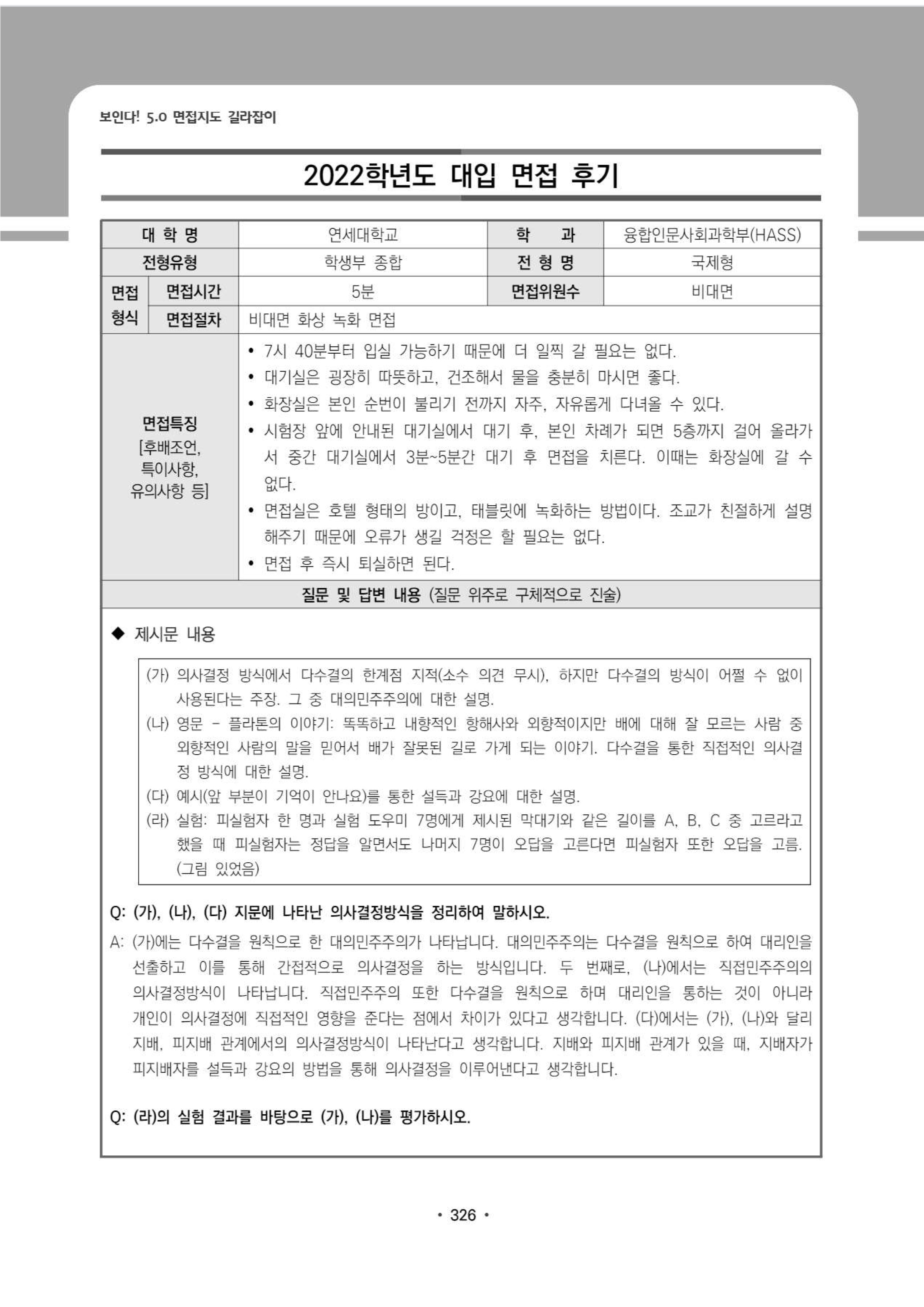 2022학년도 연세대학교 면접 후기42 - 융합인문사회과학부