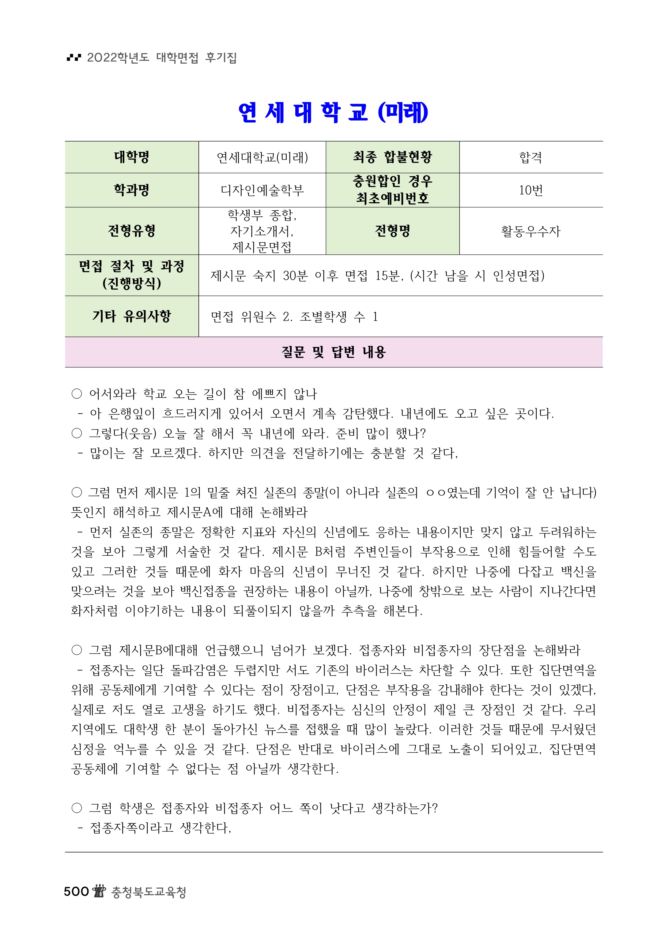2022학년도 연세대학교 면접 후기33 - 생활디자인학과 2022학년도 연세대학교 면접 후기34 - 생활디자인학과
