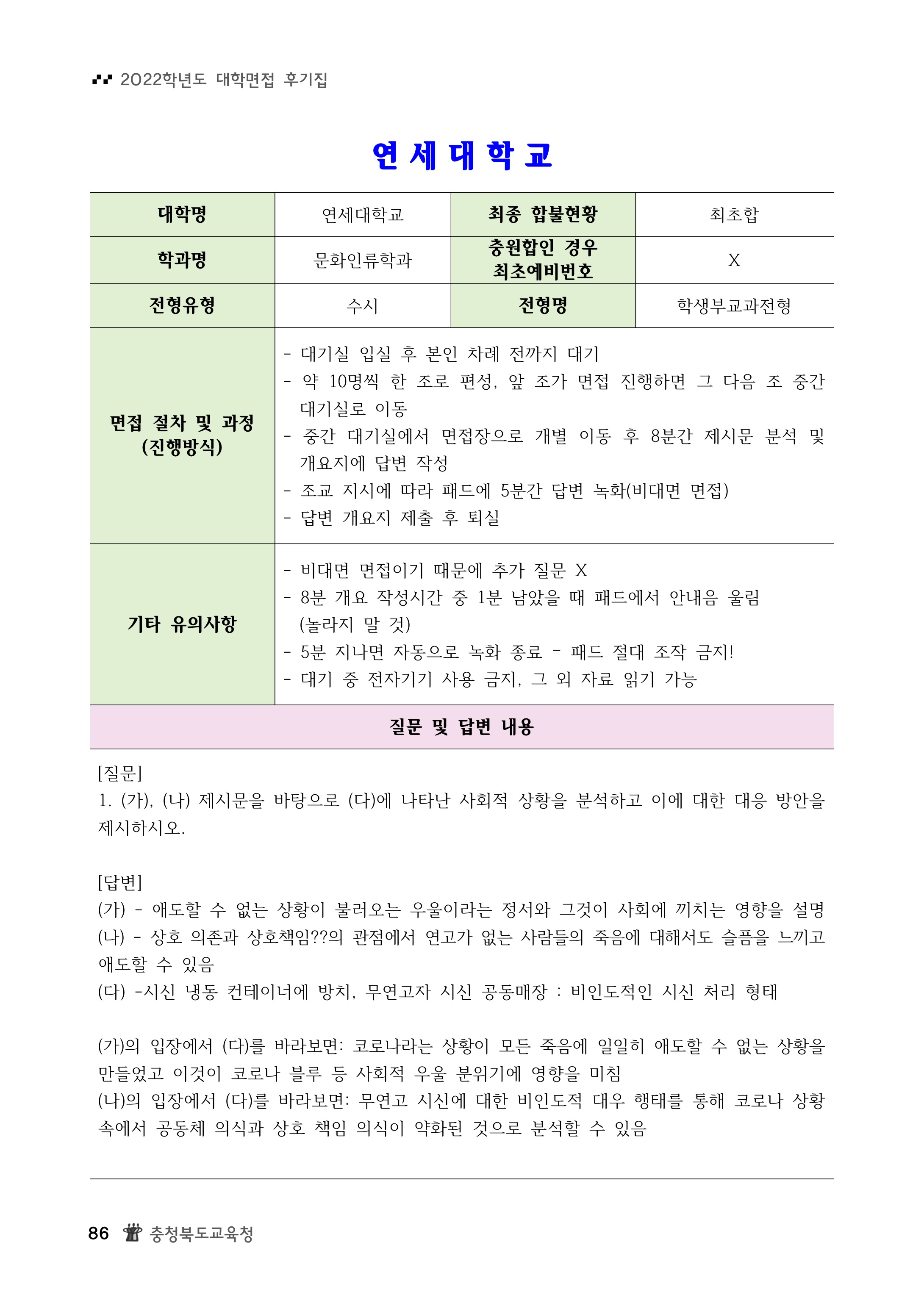 2022학년도 연세대학교 면접 후기20 - 문헌정보학과 2022학년도 연세대학교 면접 후기21 - 문화인류학과