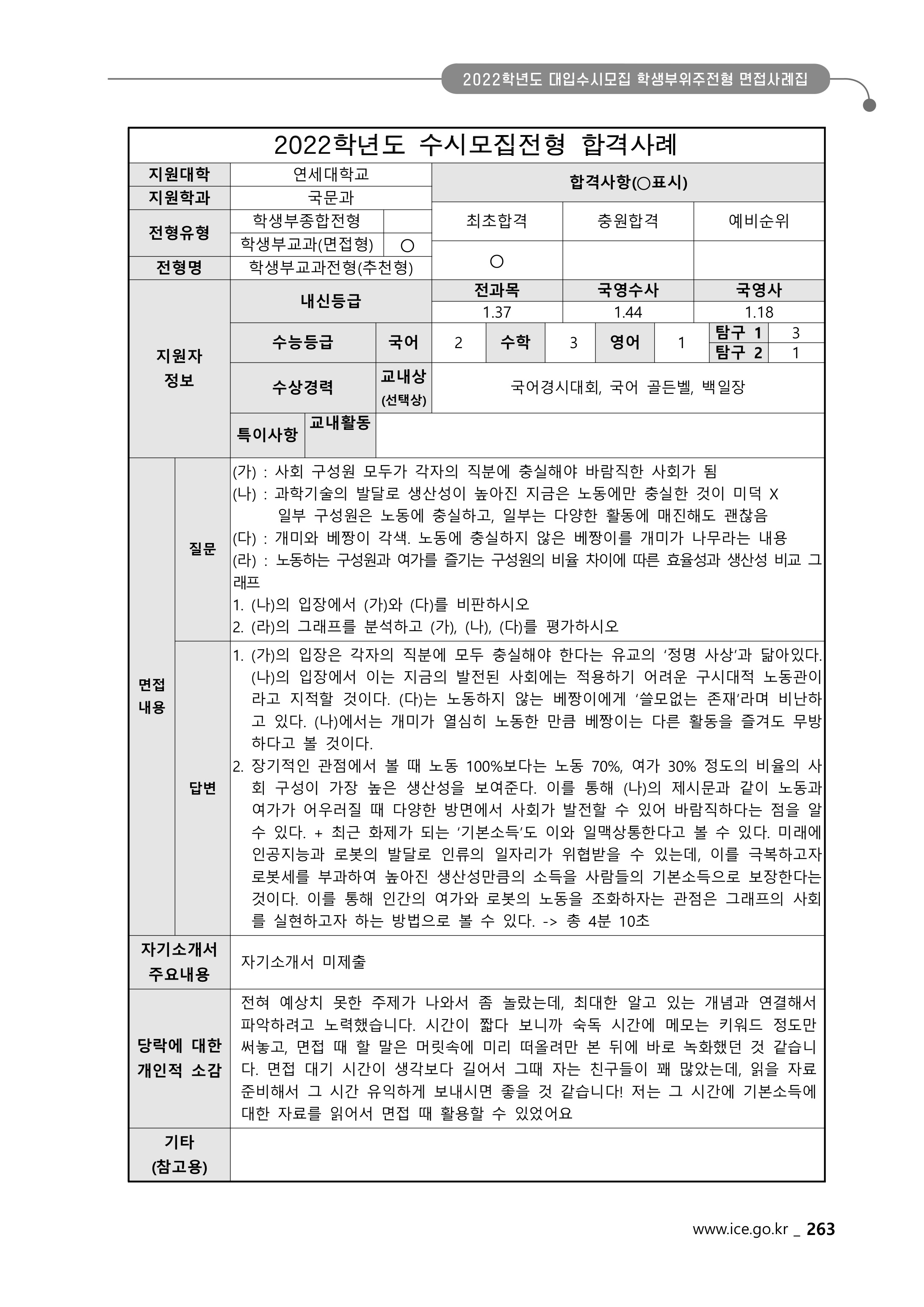 2022학년도 연세대학교 면접 후기14 - 국어국문학과