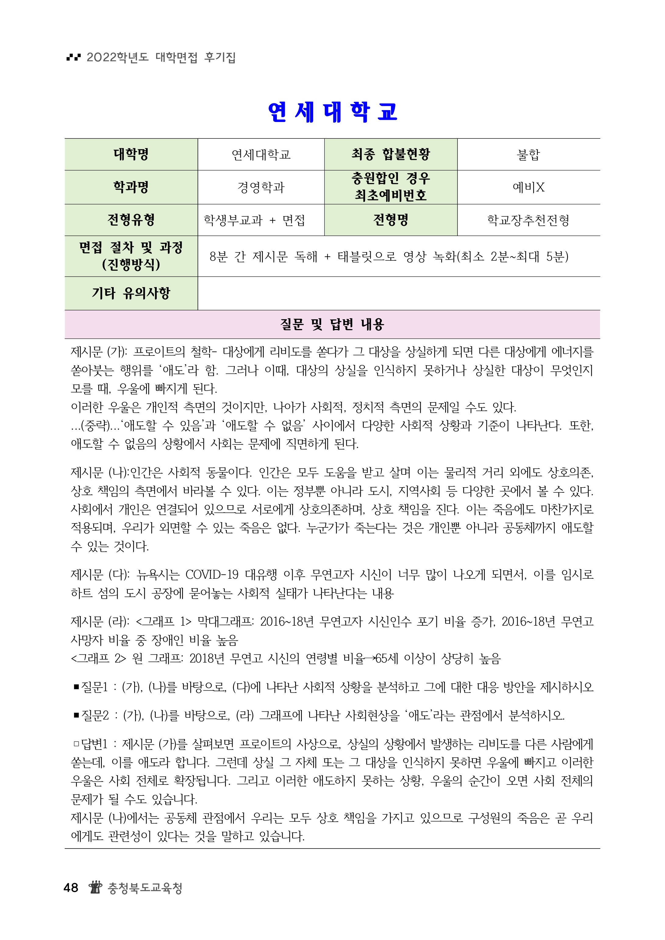 2022학년도 연세대학교 면접 후기7 - 경영학과 2022학년도 연세대학교 면접 후기8 - 경제학부