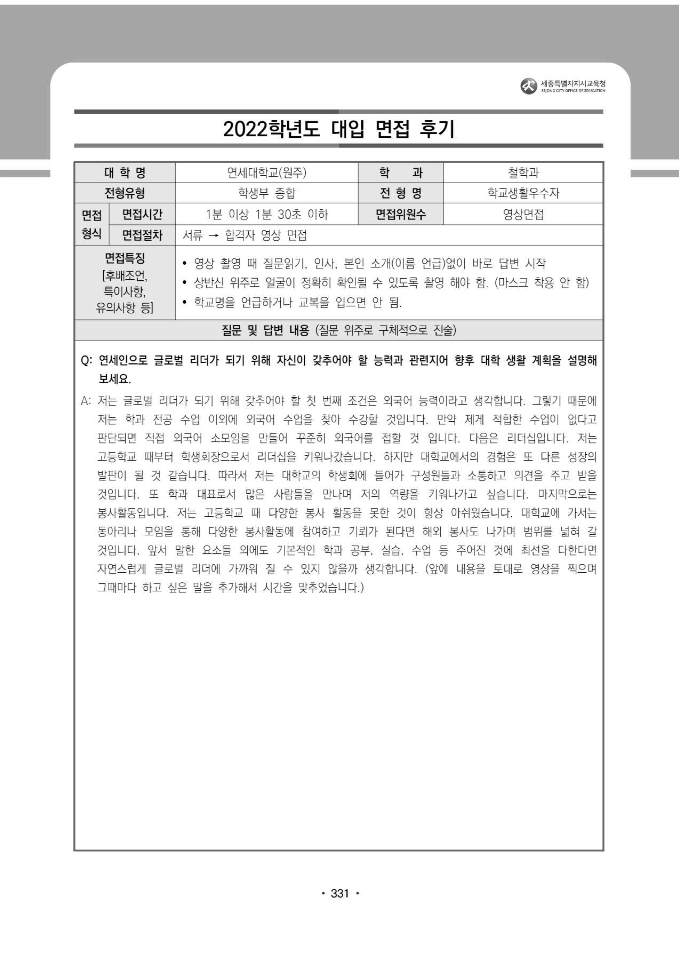 2022학년도 연세대학교 면접 후기49 - 정치외교학과 2022학년도 연세대학교 면접 후기50 - 철학과