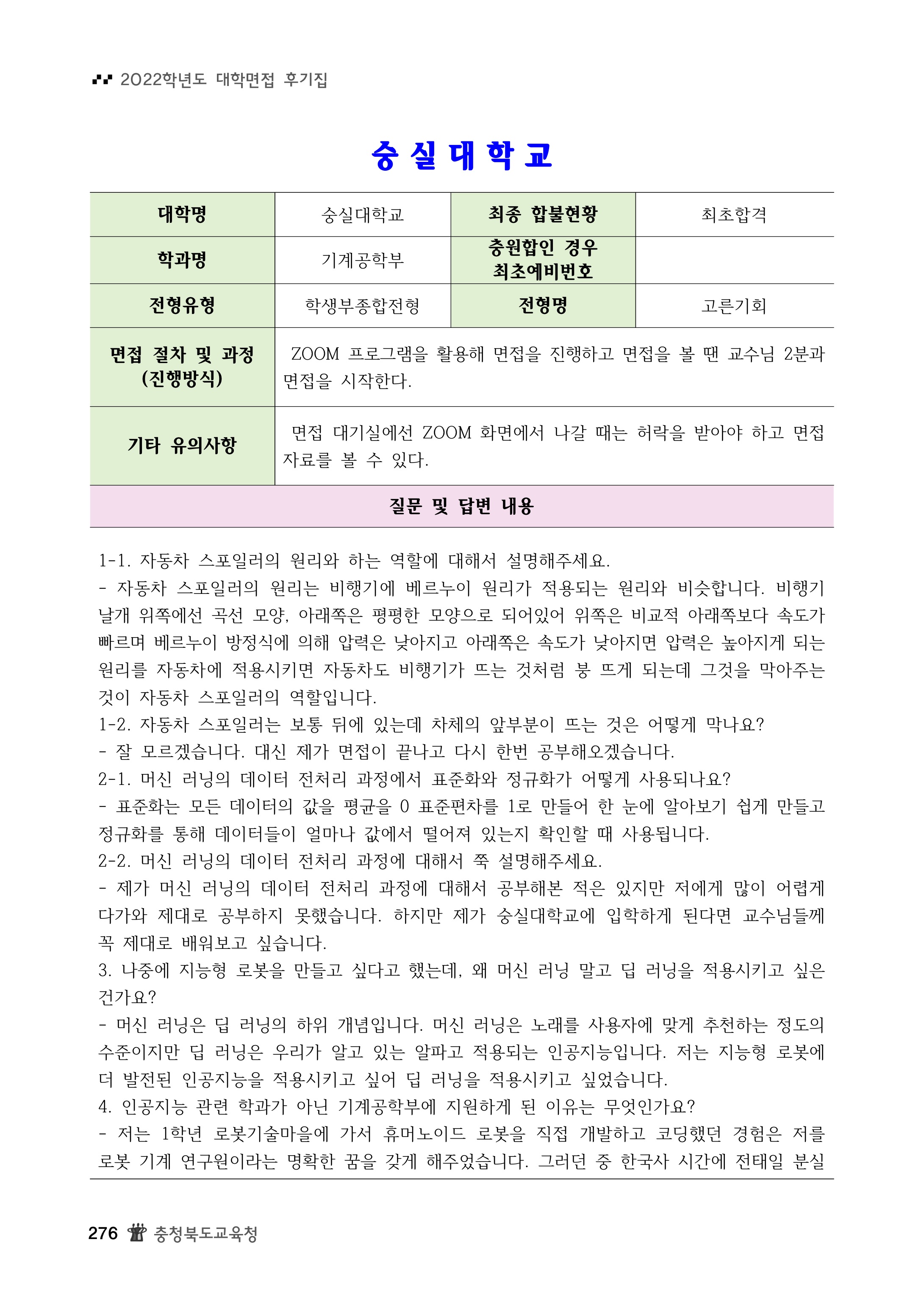 2022학년도 숭실대학교 면접 후기10 - 기계공학부