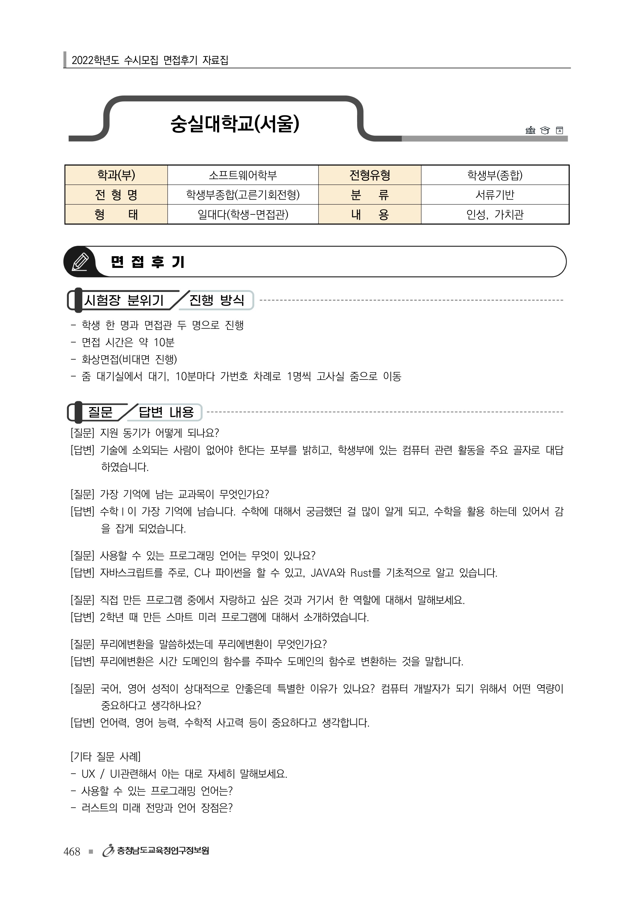 2022학년도 숭실대학교 면접 후기13 - 소프트웨어학부