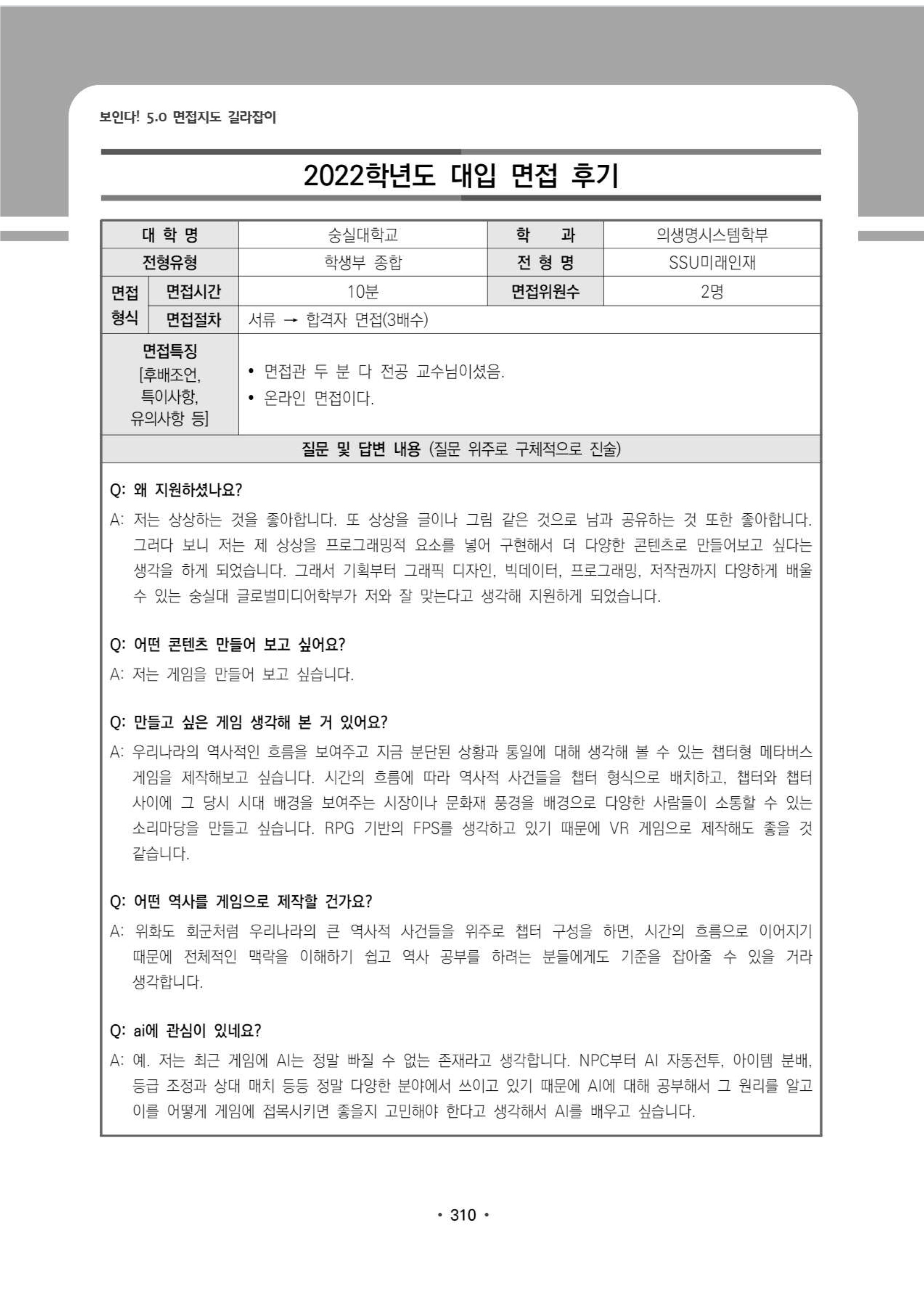 2022학년도 숭실대학교 면접 후기29 - AI융합학과 2023학년도와 2021학년도 숭실대학교 면접질문도 확인해 보세영!🥳