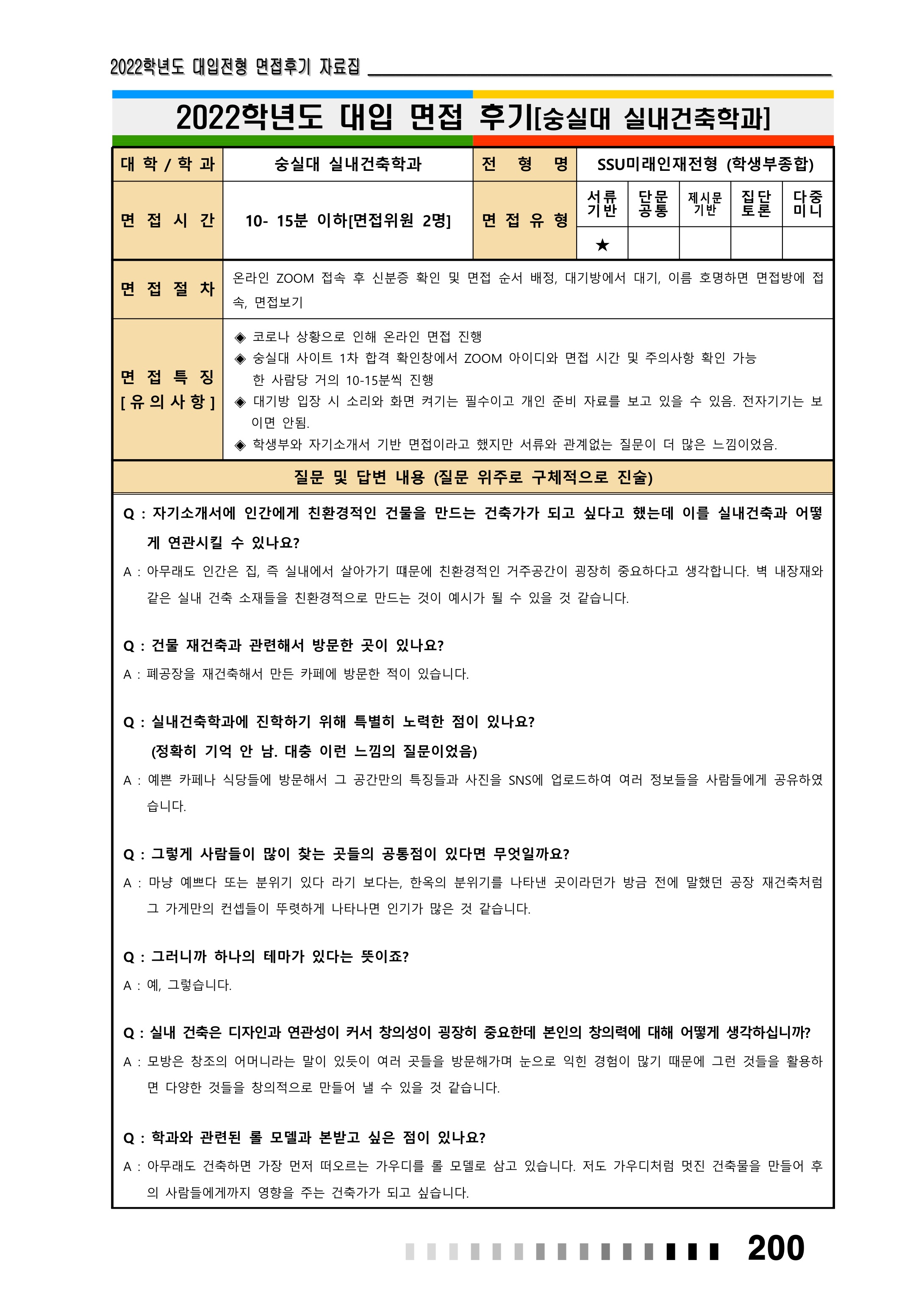 2022학년도 숭실대학교 면접 후기16 - 실내건축학과
