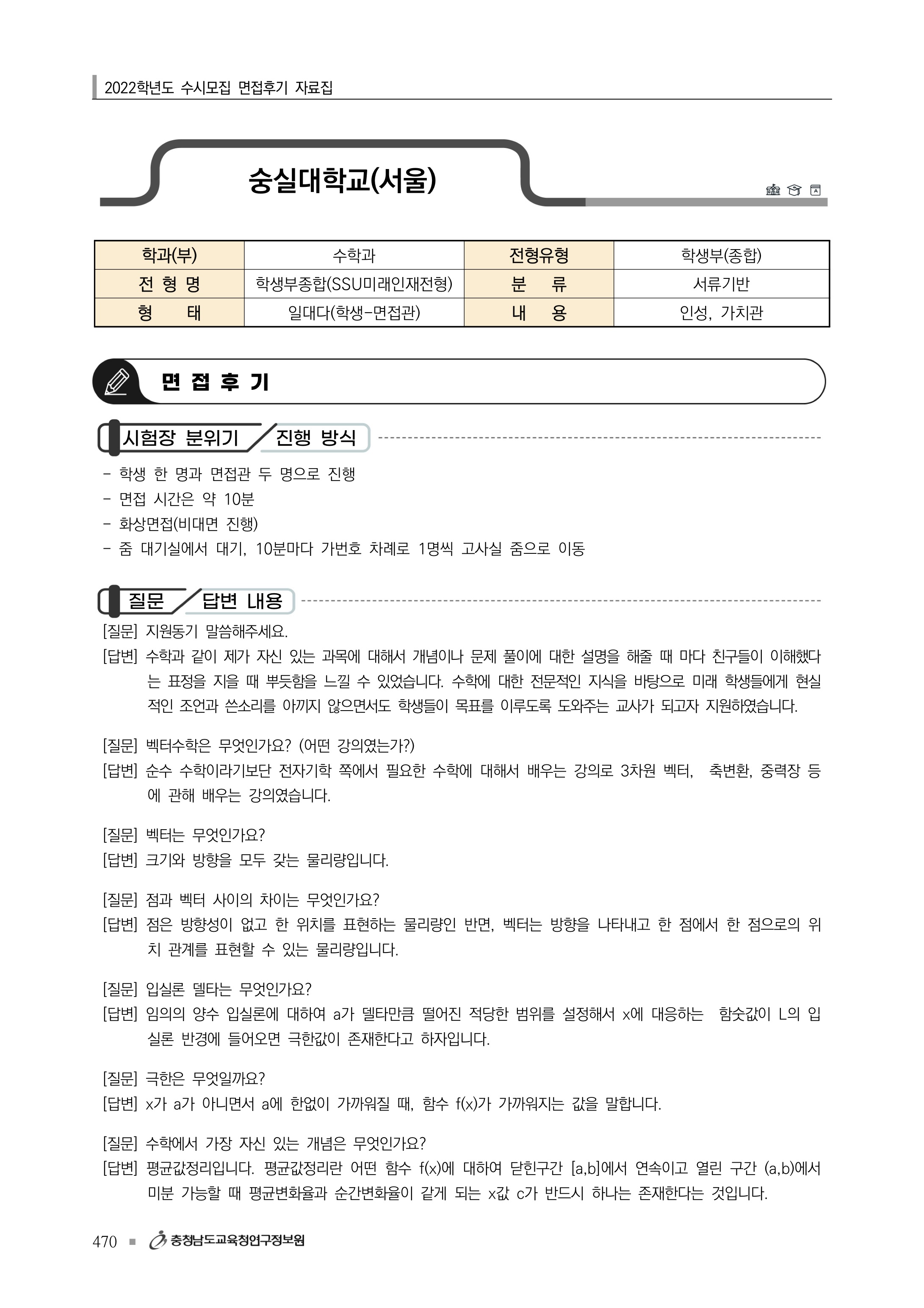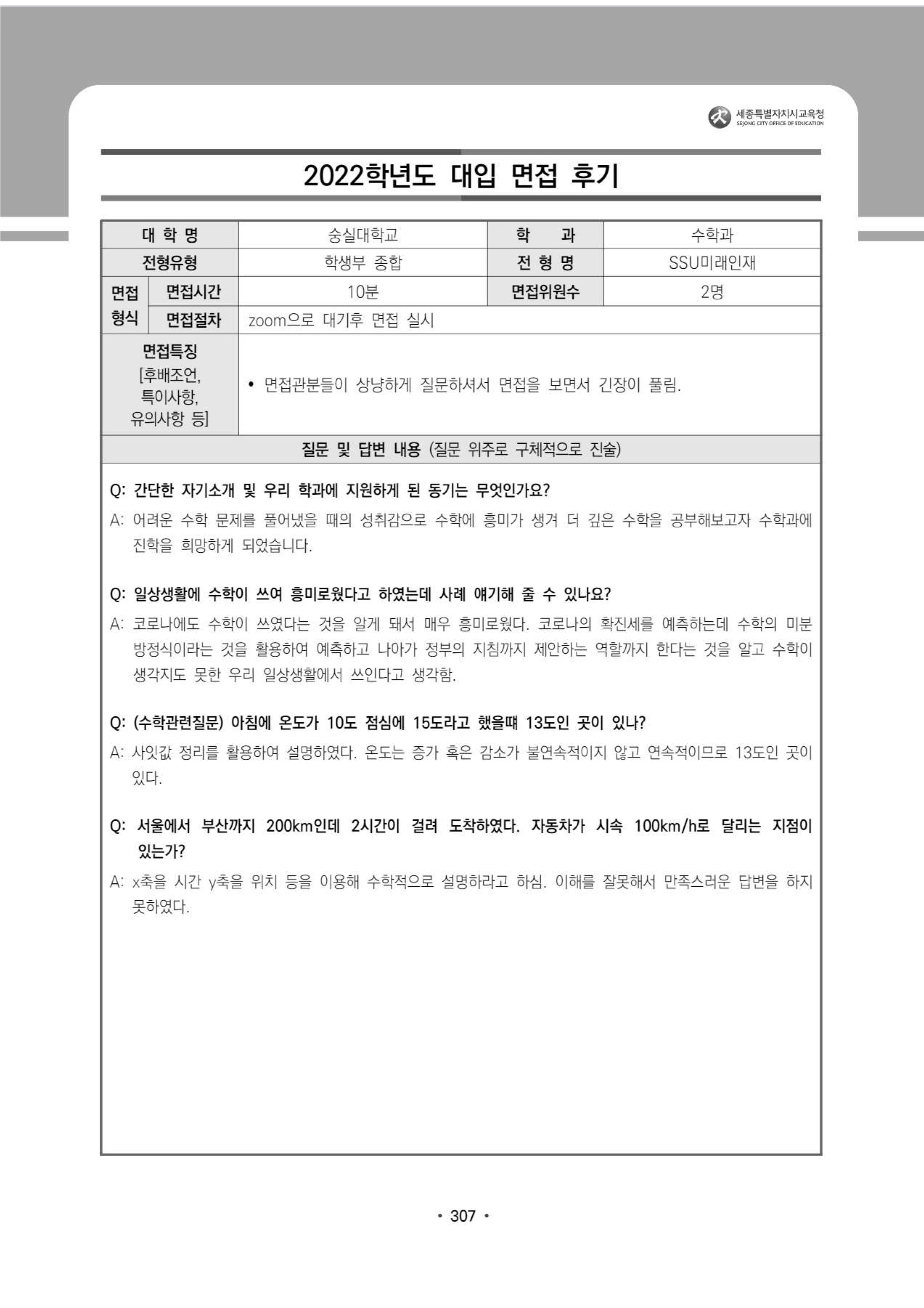 2022학년도 숭실대학교 면접 후기15 - 수학과