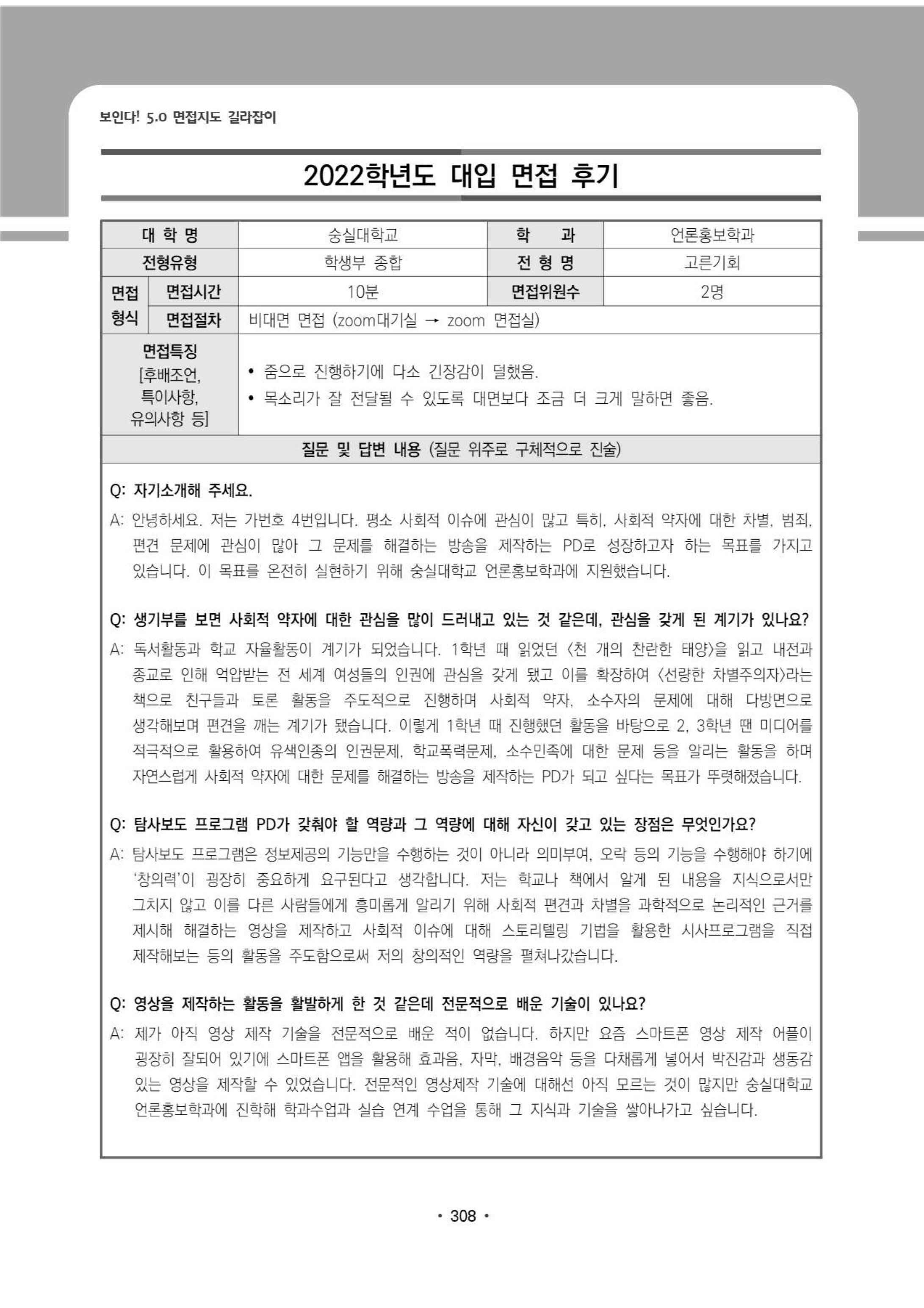 2022학년도 숭실대학교 면접 후기17 - 언론홍보학과
