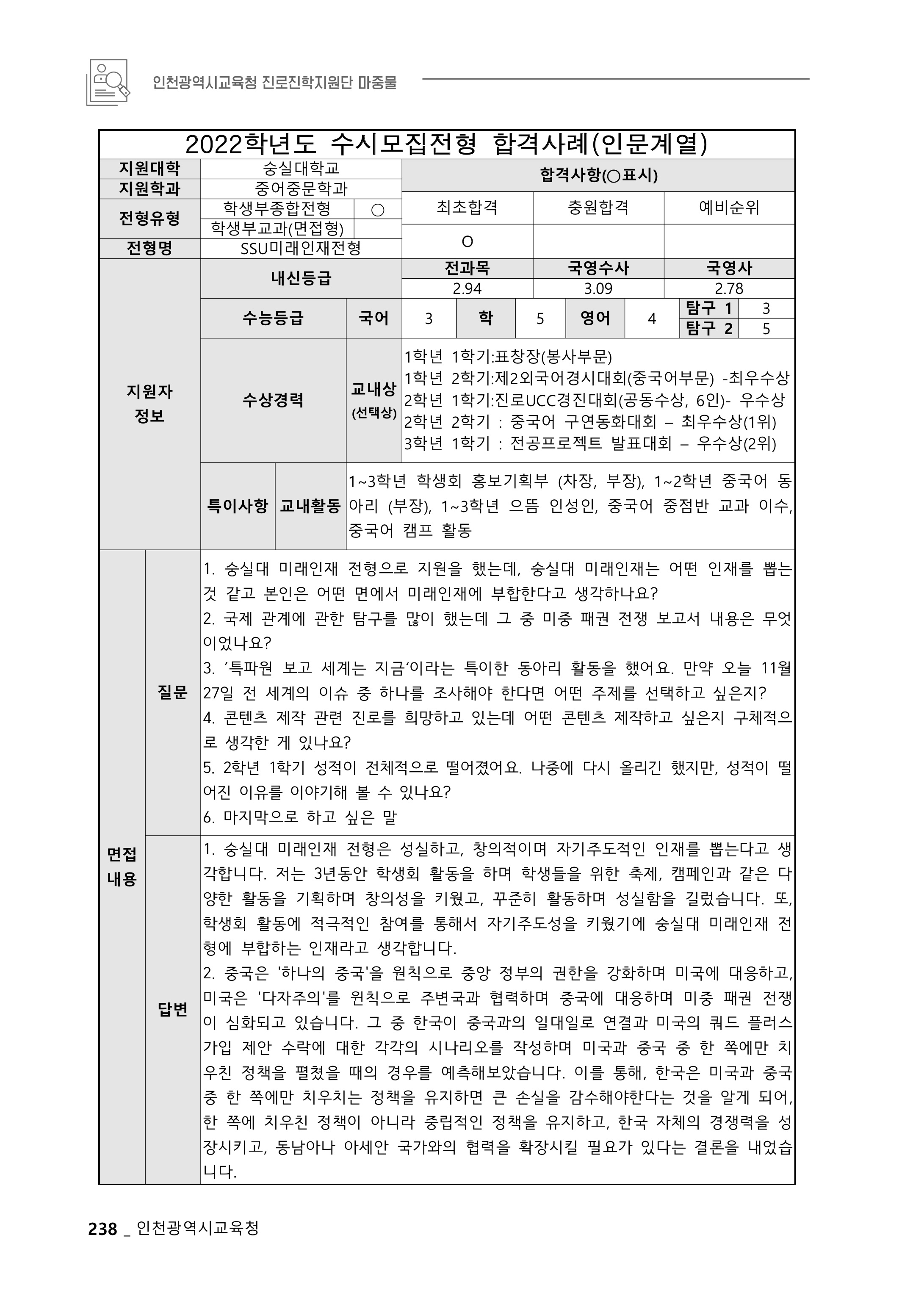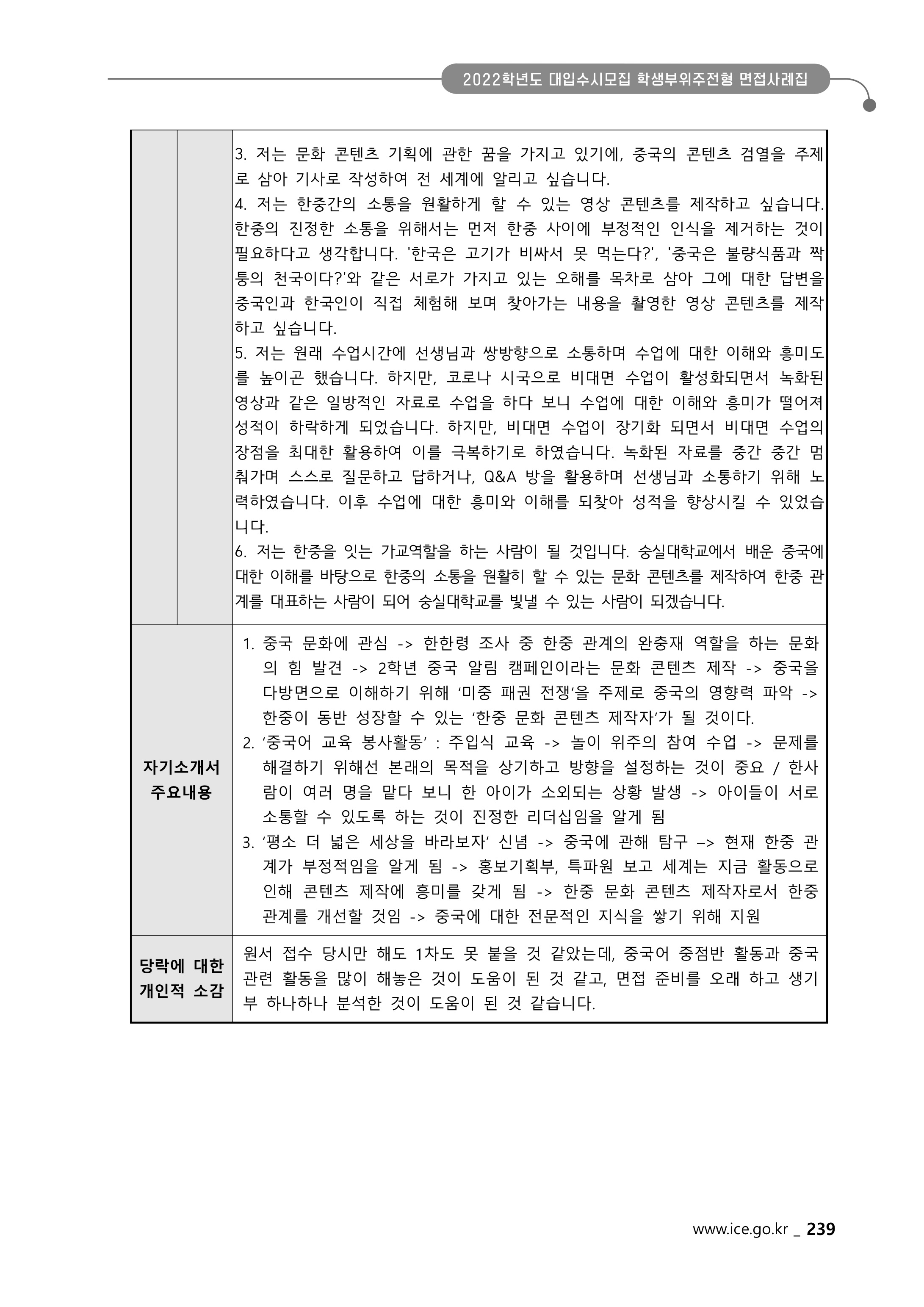 2022학년도 숭실대학교 면접 후기23 - 중어중문학과