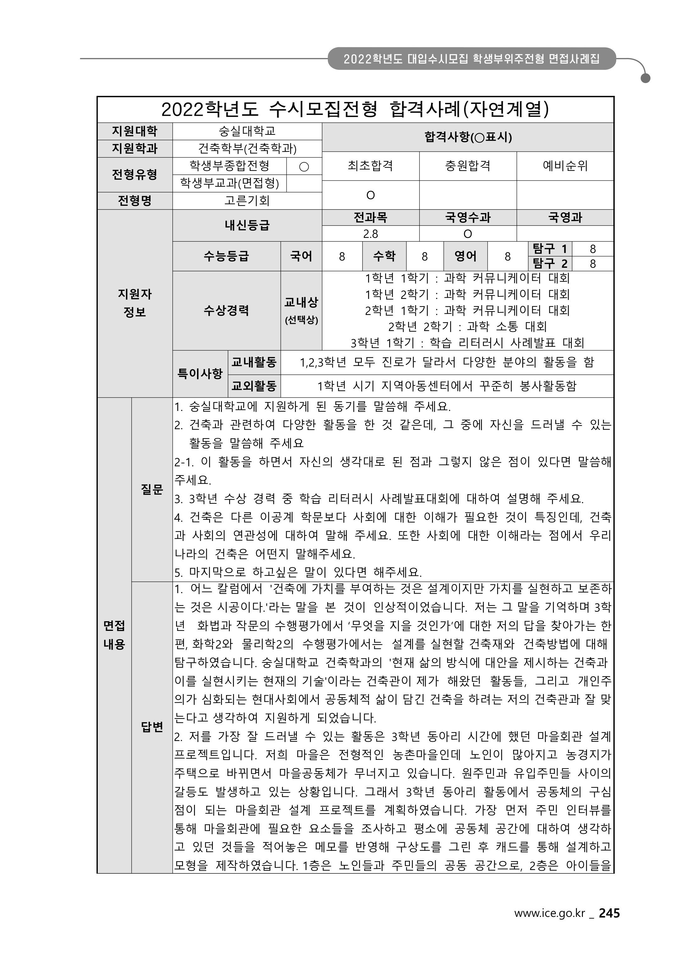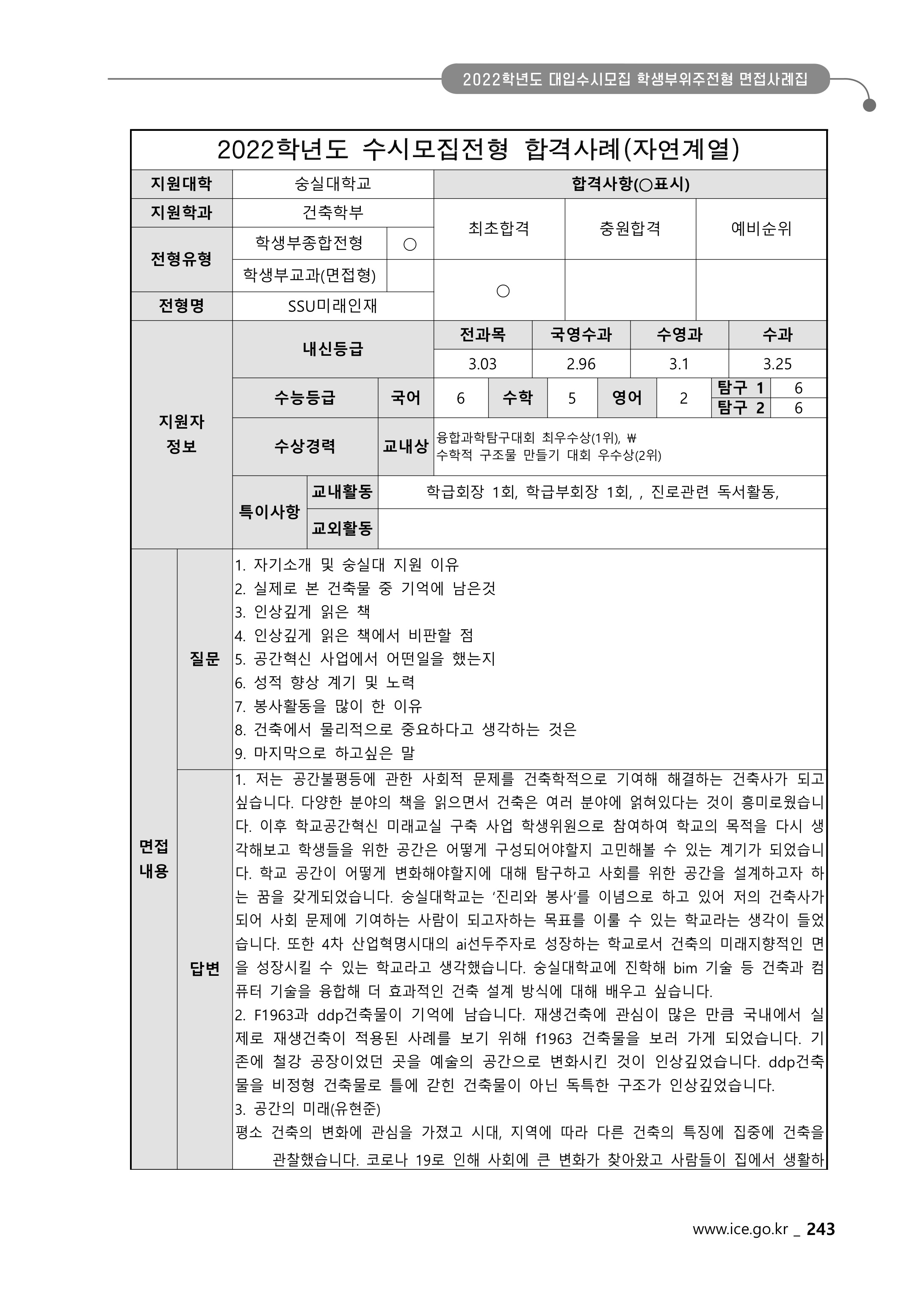 2022학년도 숭실대학교 면접 후기3 - 건축학부