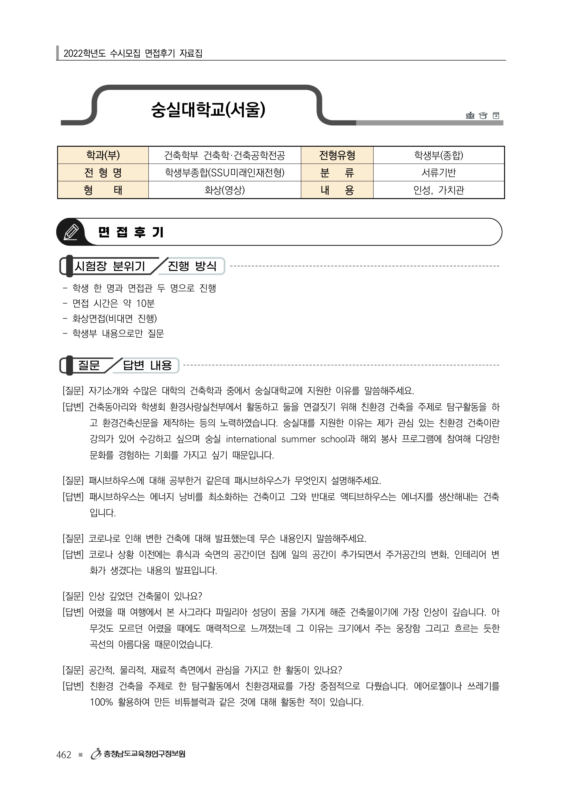 2022학년도 숭실대학교 면접 후기4 - 건축학부
