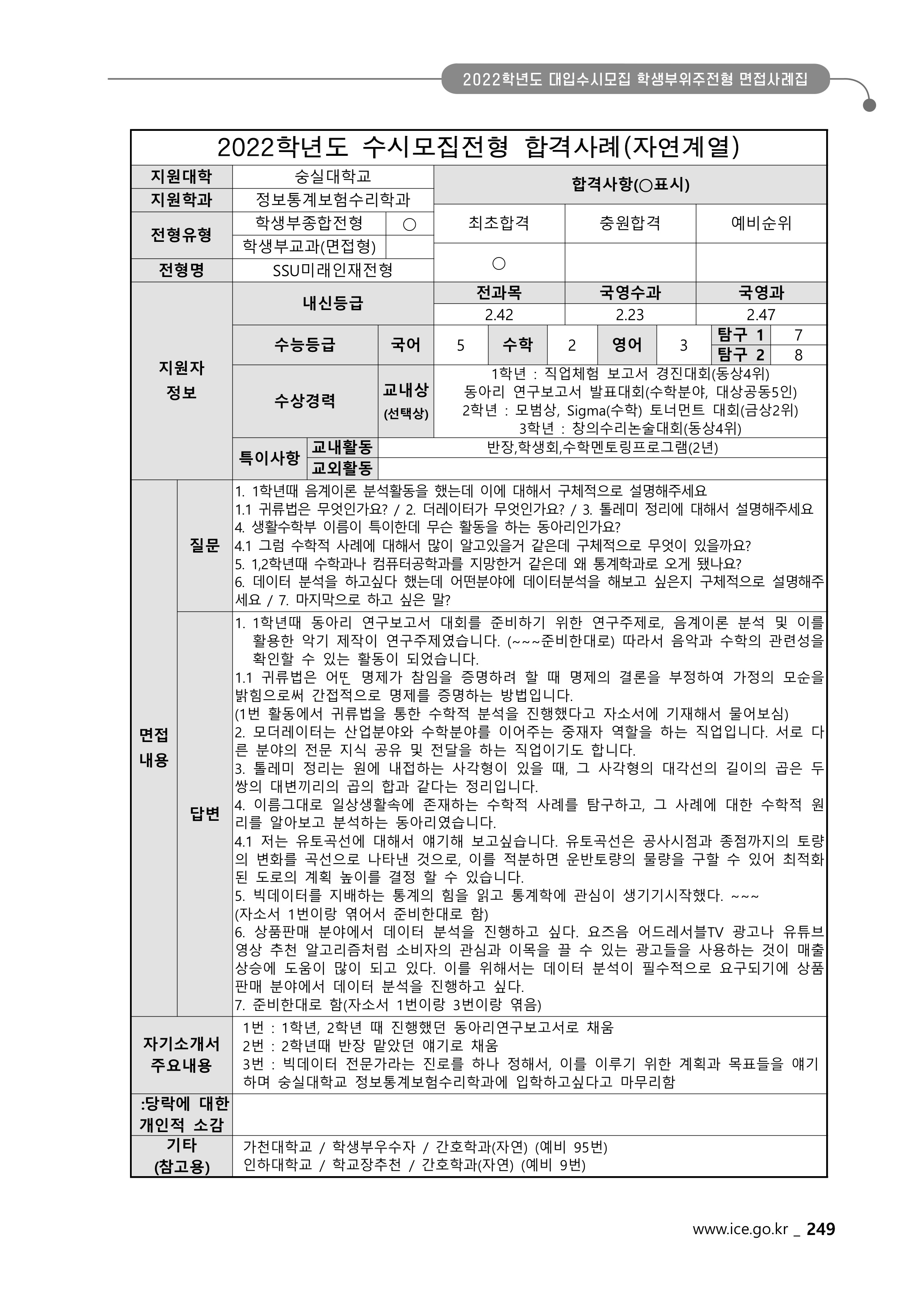 2022학년도 숭실대학교 면접 후기20 - 전자정보공학부 2022학년도 숭실대학교 면접 후기21 - 정보통계보험수리학과