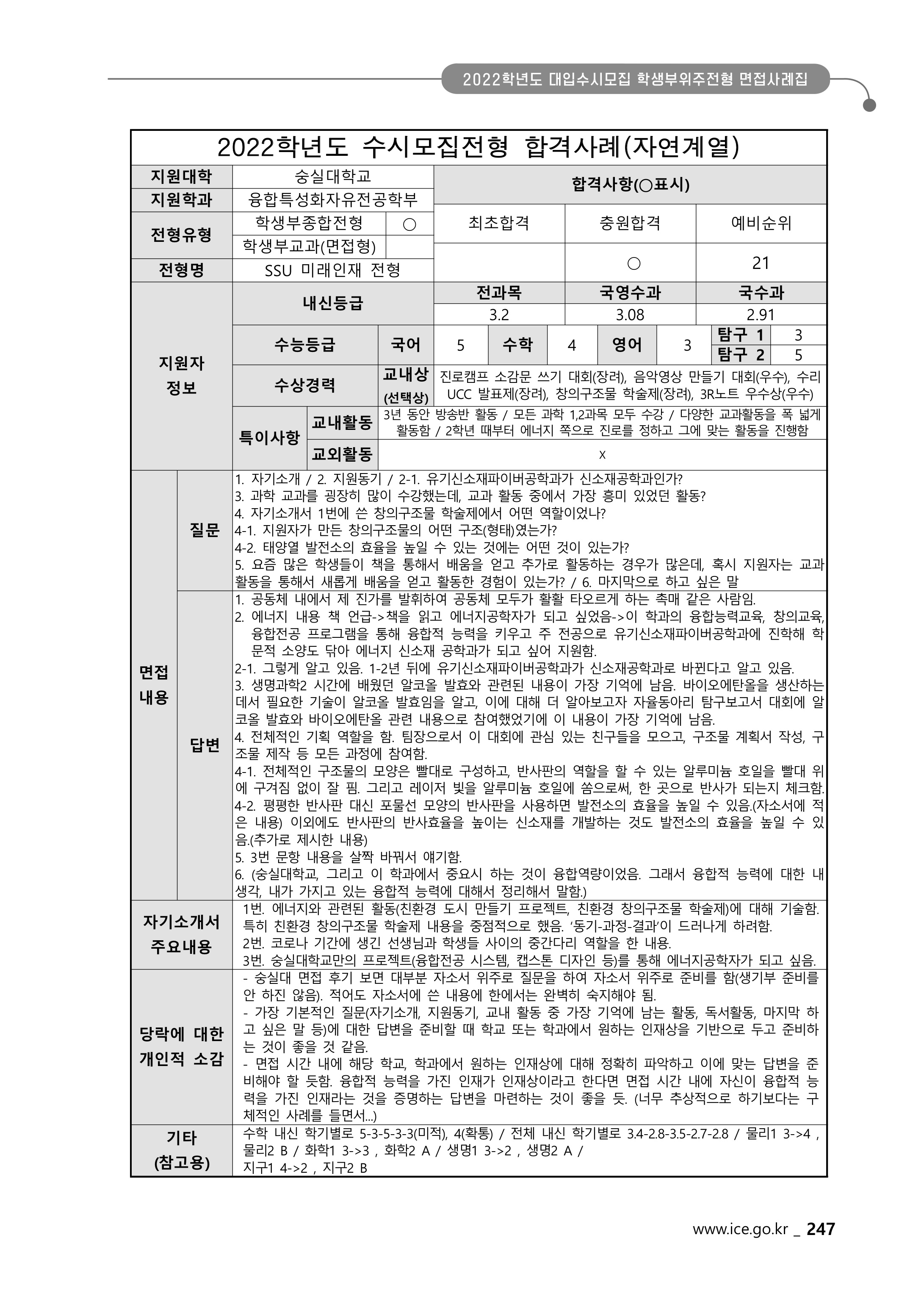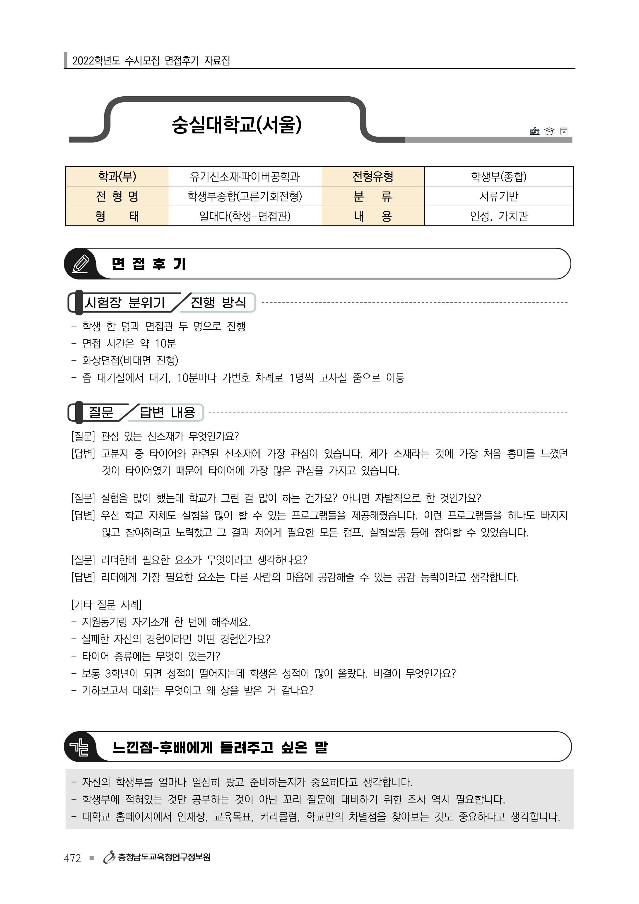 2022학년도 숭실대학교 면접 후기27 - 행정학부 2022학년도 숭실대학교 면접 후기28 - 화학공학과