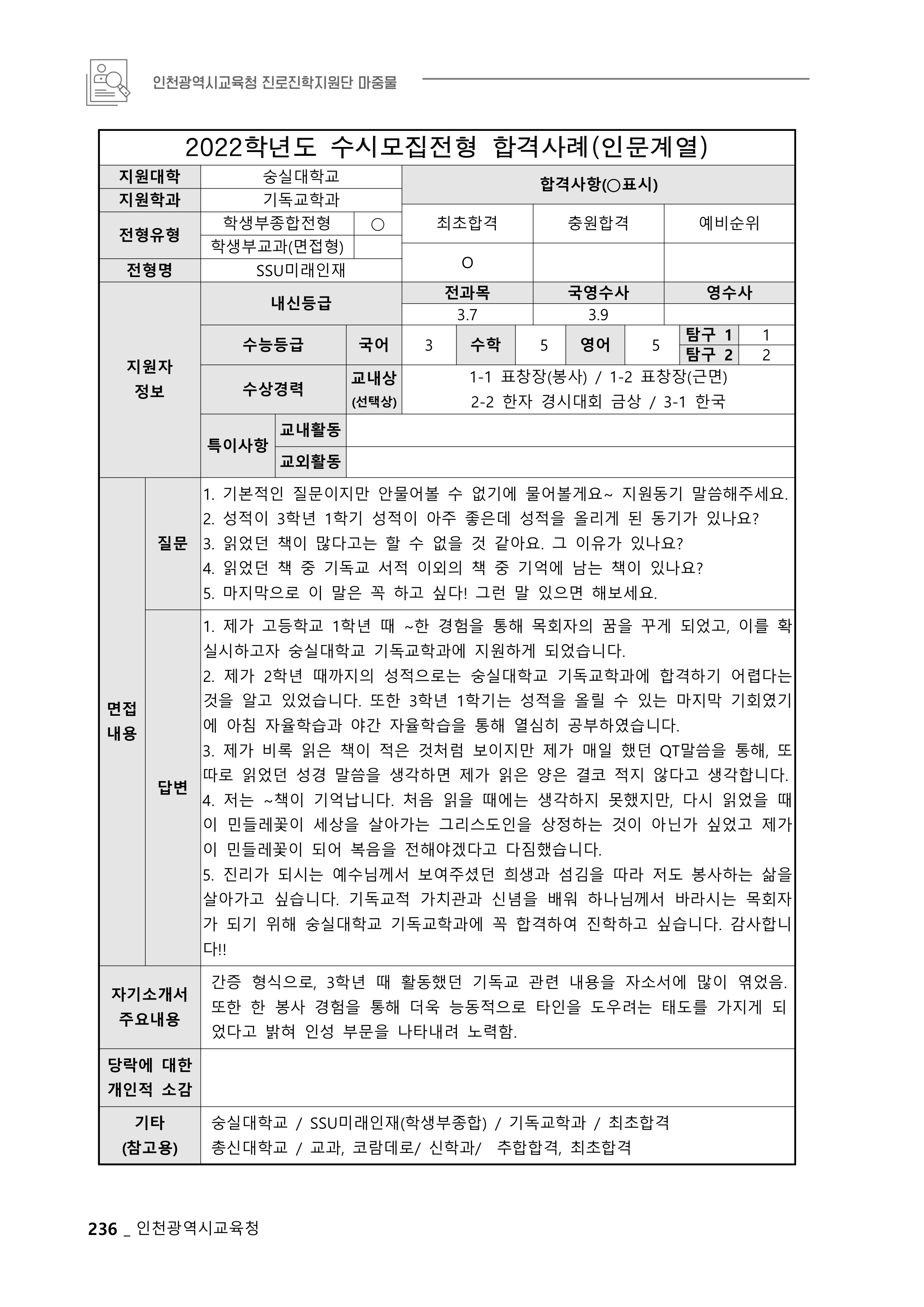 2022학년도 숭실대학교 면접 후기10 - 기계공학부 2022학년도 숭실대학교 면접 후기11 - 기독교학과