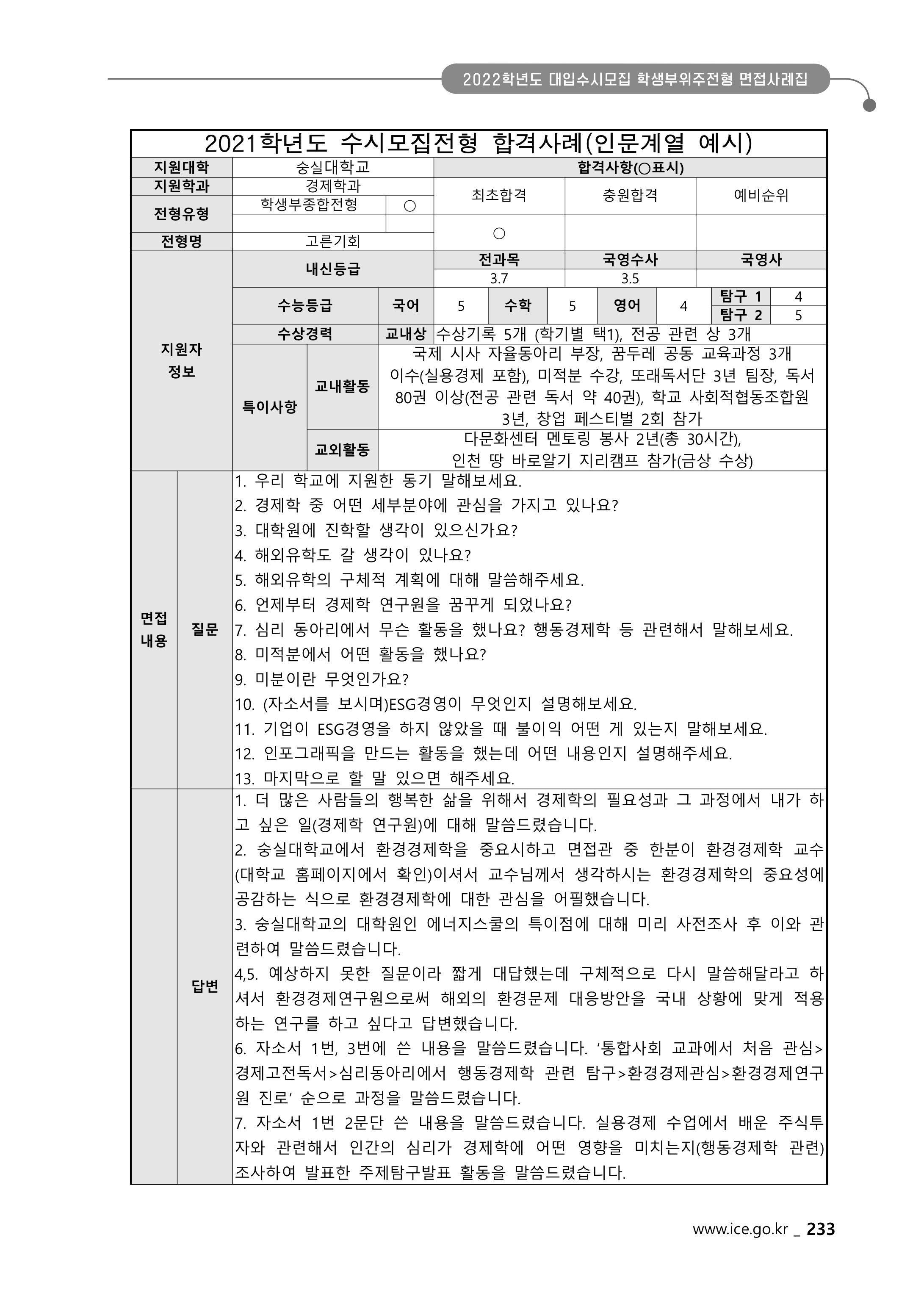 2022학년도 숭실대학교 면접 후기7 - 경제학과
