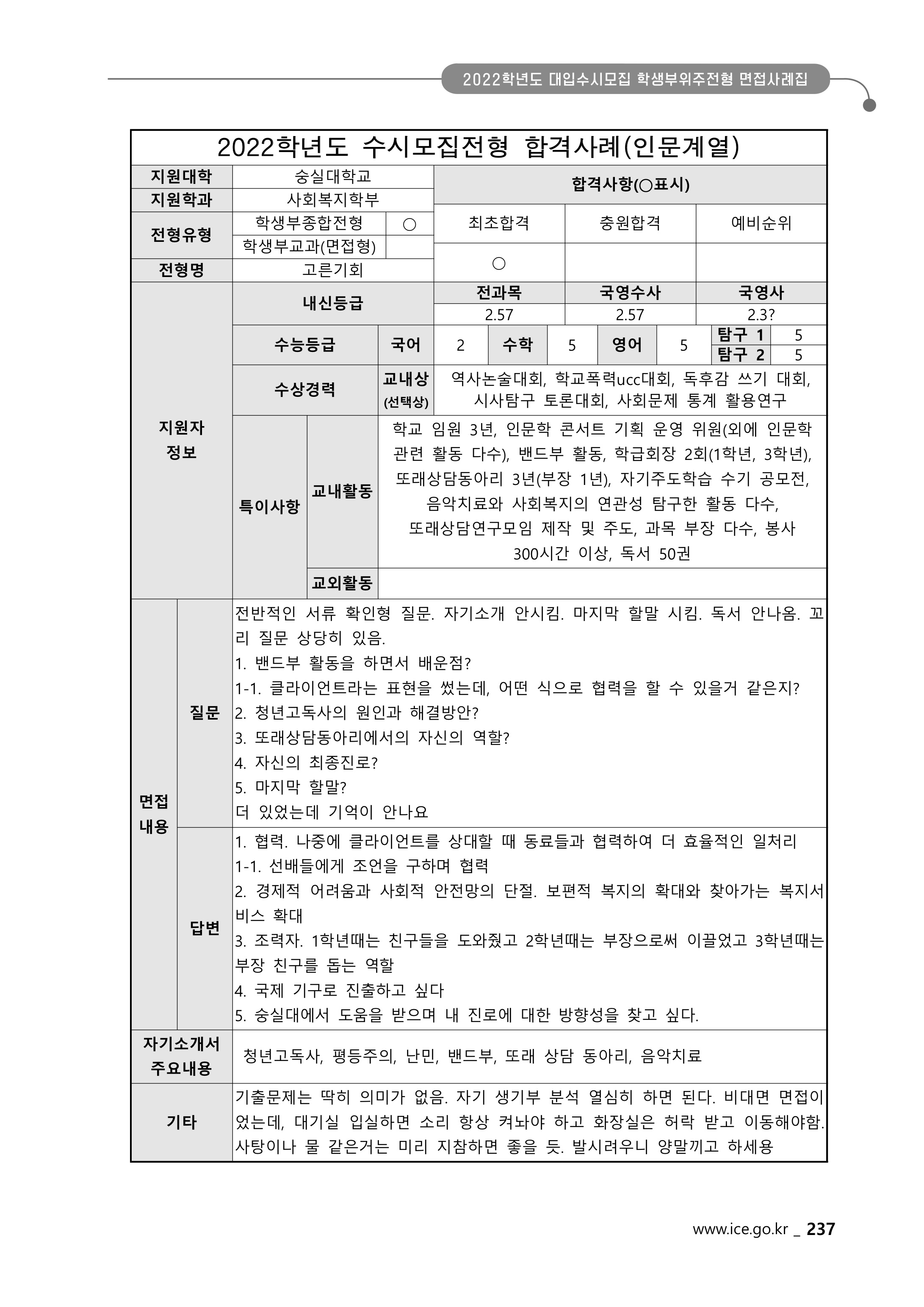 2022학년도 숭실대학교 면접 질문입시 정보/면접 2022. 9. 28. 13:21