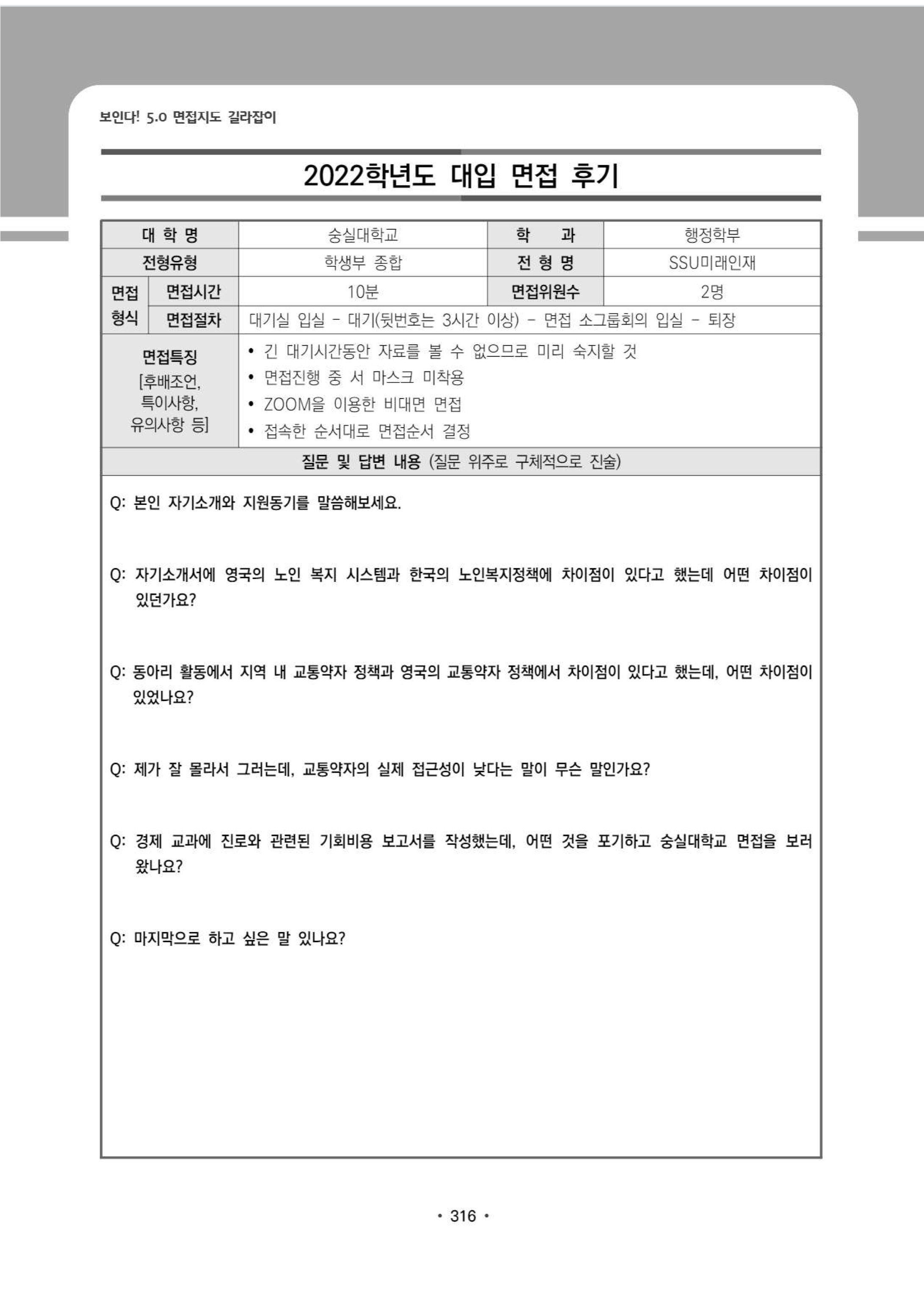 2022학년도 숭실대학교 면접 후기26 - 행정학부 2022학년도 숭실대학교 면접 후기27 - 행정학부