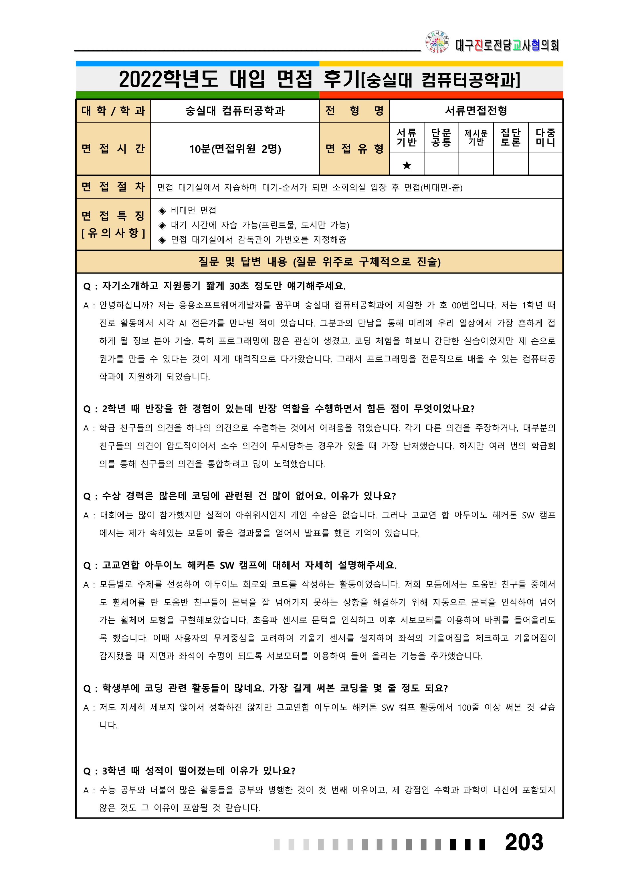 2022학년도 숭실대학교 면접 후기24 - 컴퓨터학과 2022학년도 숭실대학교 면접 후기25 - 컴퓨터학과