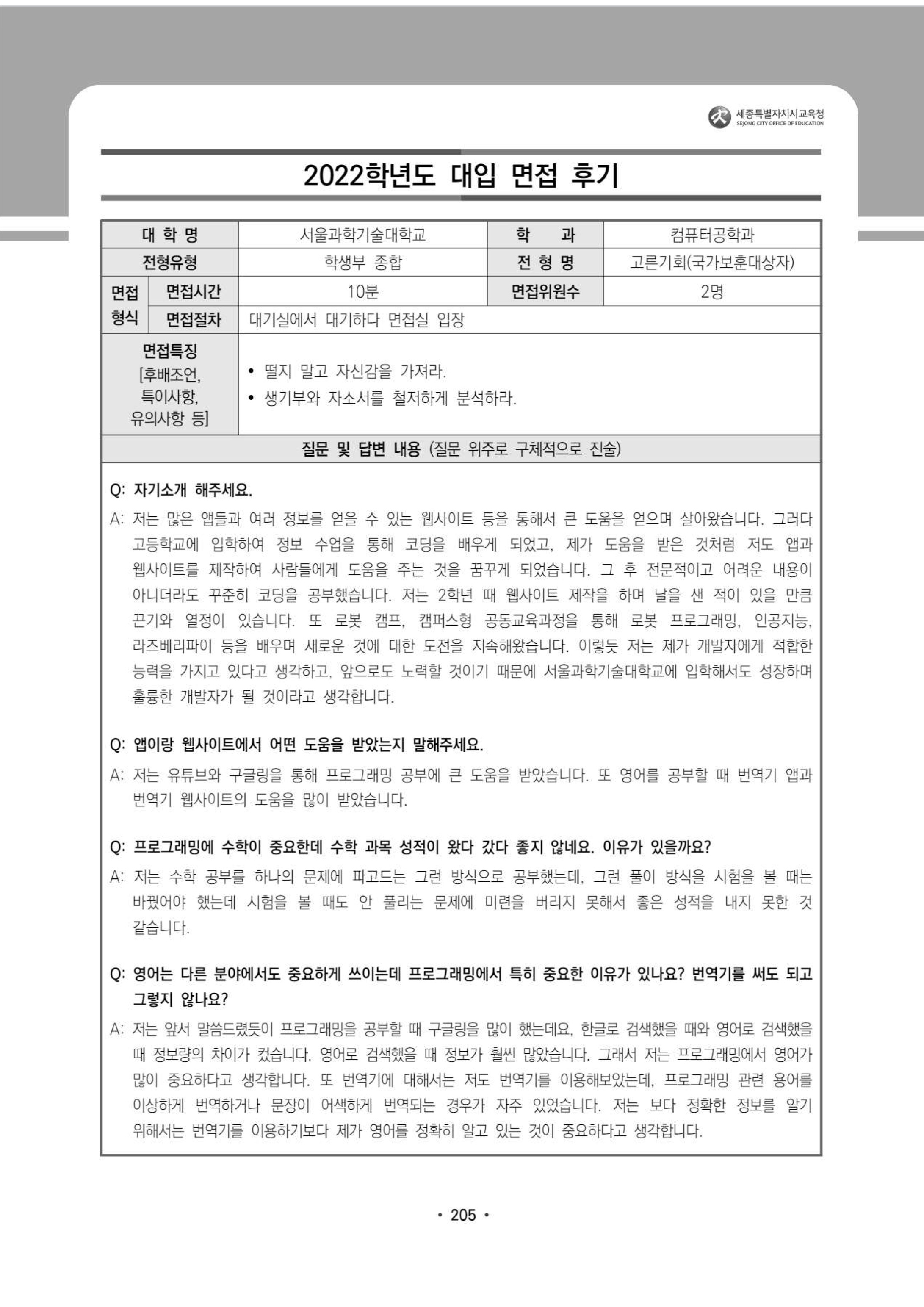 2022학년도 서울과학기술대학교 면접 후기16 - 컴퓨터공학과