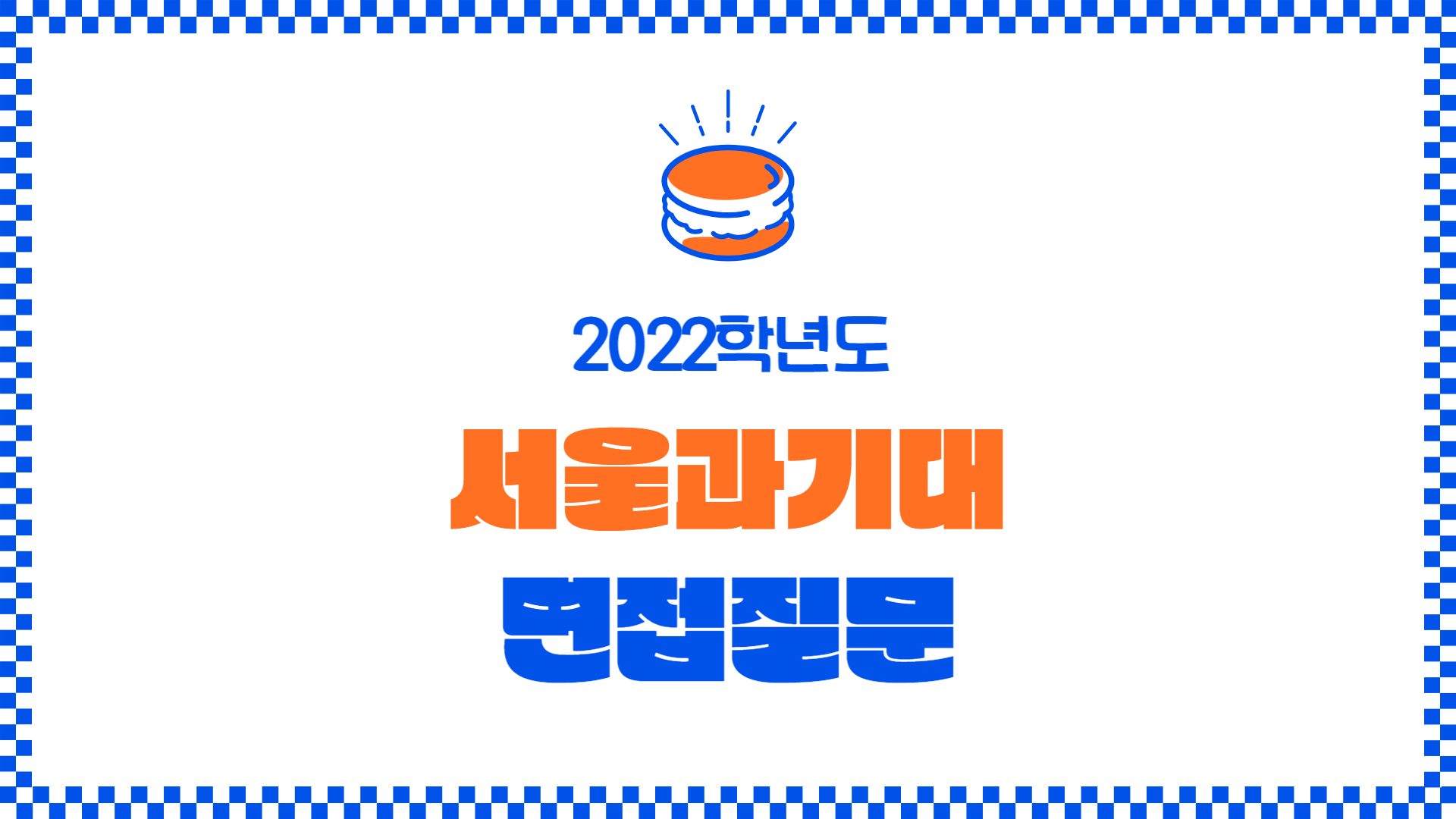 2022학년도 서울과학기술대학교 면접 질문 횐님들 안녕하세영! 오늘은 2022학년도 서울과학기술대학교 수시면접에 출제된 질문들에 대해서 알아보려고 해영. 서울과기대 학생부종합전형 2단계에는 면접이 있는데영, 제출서류를 토대로 인성 및 의사소통능력, 논리적 사고력, 전공적합성, 발전가능성을 평가하게 돼영. 아래 후기에는 서울과기대 면접에서 나온 질문과 면접 진행 과정, 합격한 선배들의 스펙이 나와 있으니 자신이 지원한 과의 후기를 꼼꼼히 살펴보시길 바라영. 맨 아래에는 2023학년도 서울과학기술대학교 면접 질문도 링크해 두었어영.😎