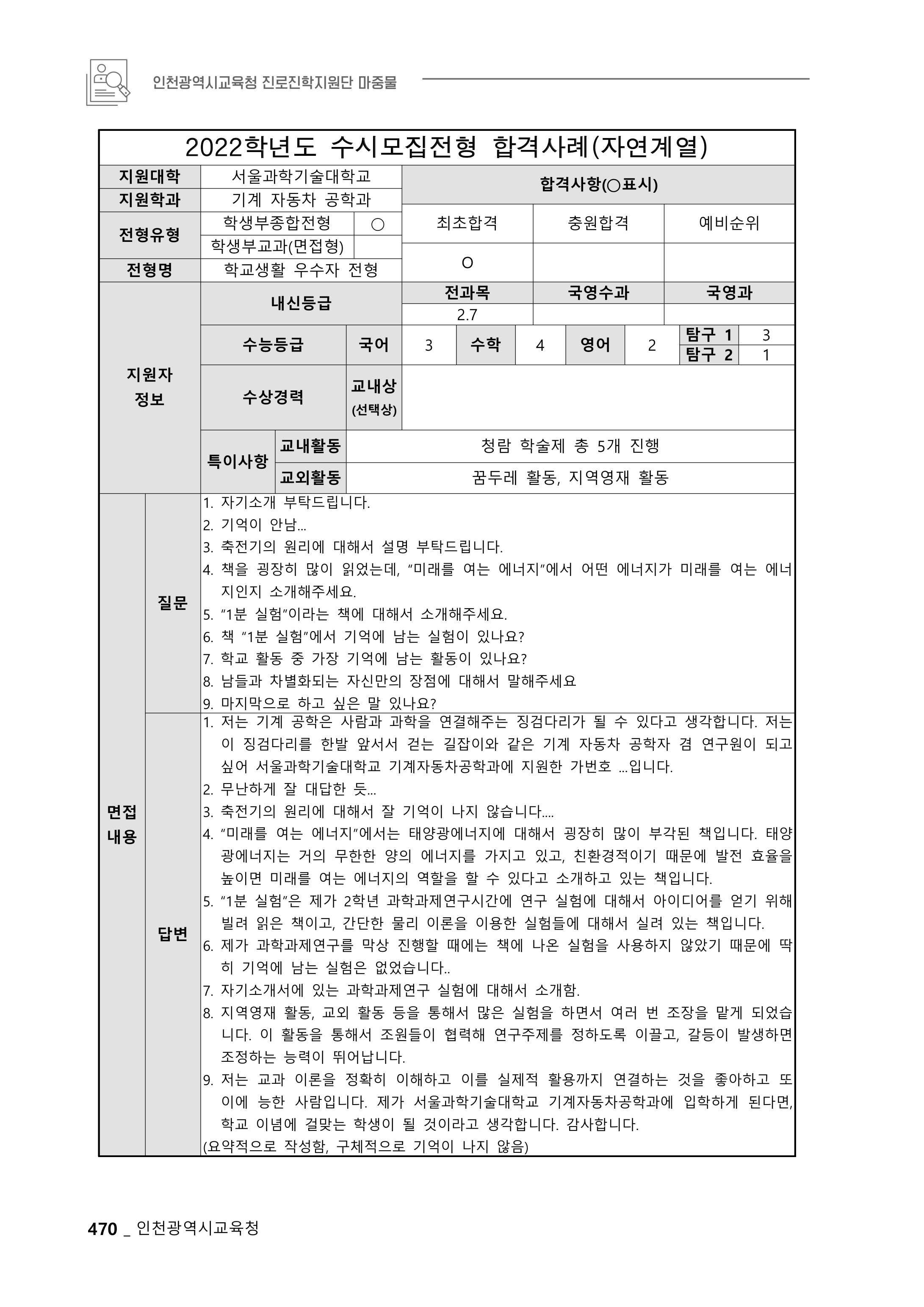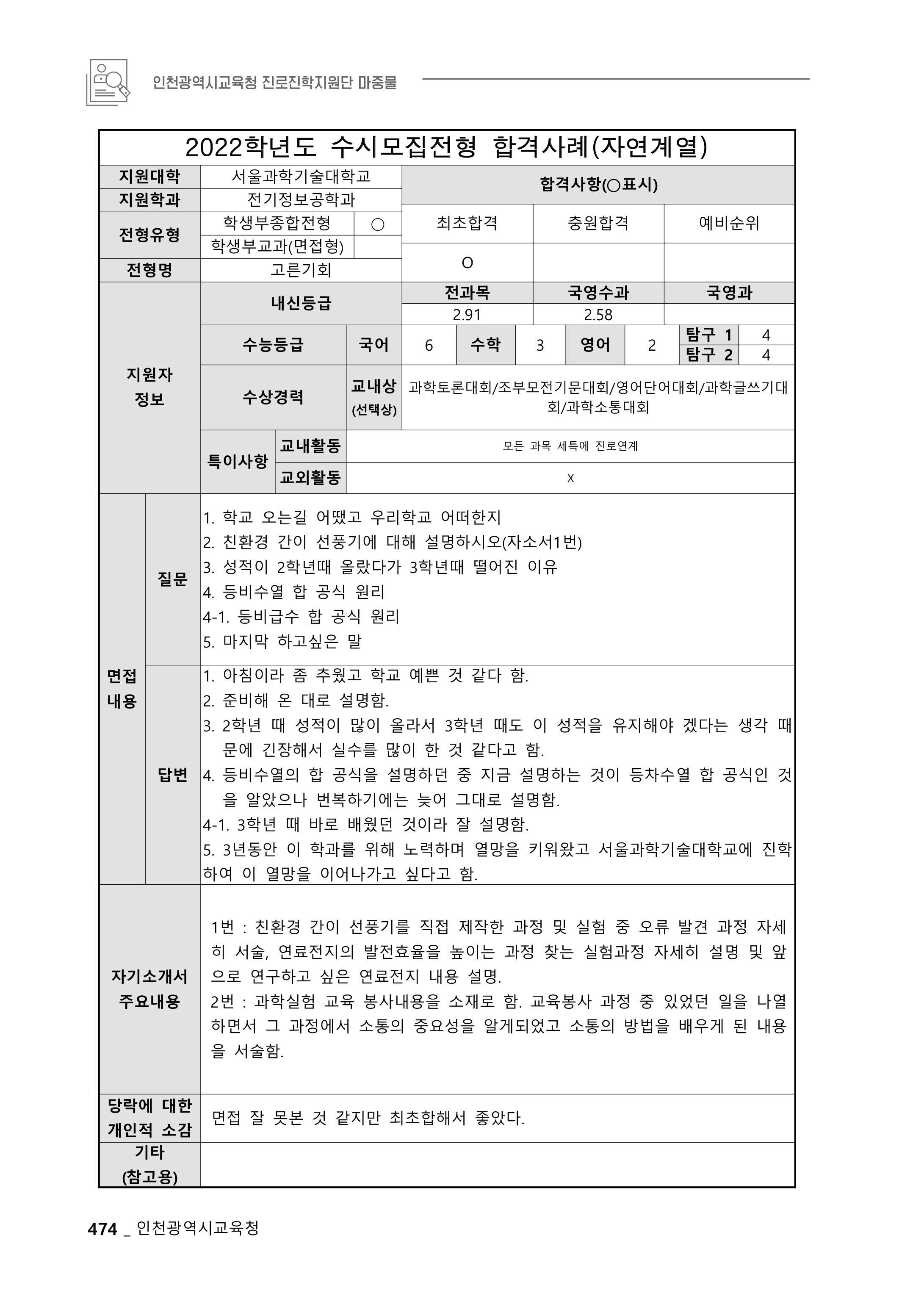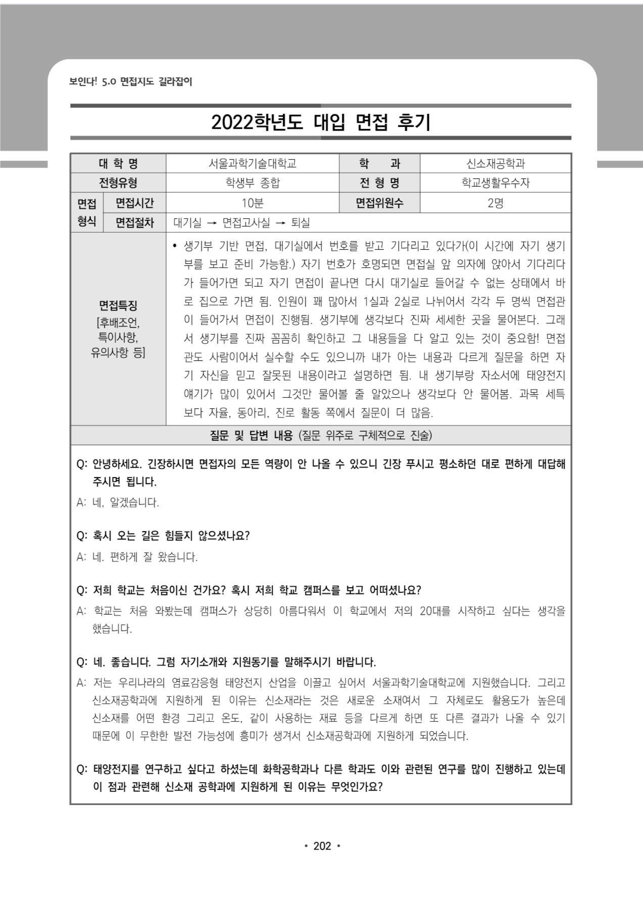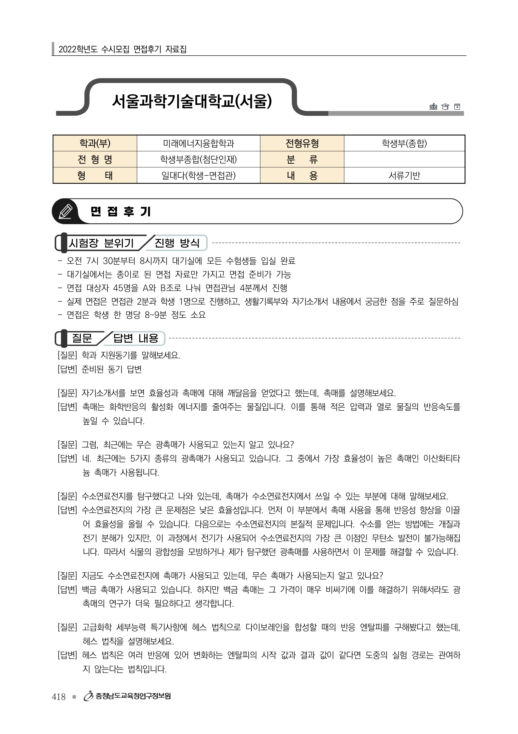 2022학년도 서울과학기술대학교 면접 후기7 - 미래에너지융합학과